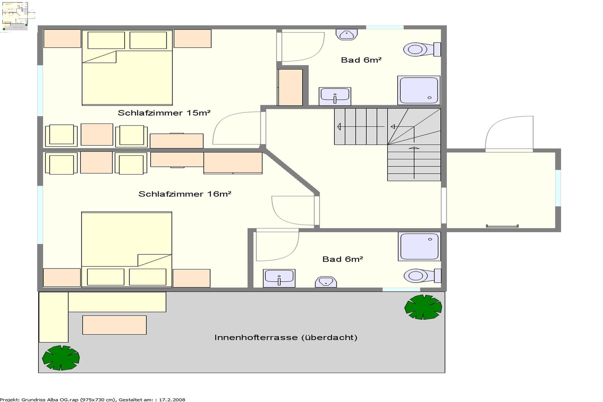 Parterre: (Schlafzimmer mit Badezimmer(Doppelbett, Dusche, Toilette, Bidet), Schlafzimmer mit Badezimmer(Doppelbett, Dusche, Toilette, Bidet), Terrasse(alleinige Nutzung, überdacht), Grill) In der 1. Etage: (offene Küche(Backofen, Mikrowelle, Spülmaschine, Tiefkühlschrank), Wohn/Esszimmer(TV(Satellit)), Schlafzimmer mit Badezimmer(Doppelbett, Dusche, Toilette, Bidet), Balkon) Heizung, Garten, Gartenmöbel, Parkplatz, Pool(Gemeinschaftliche Nutzung mit anderen Gästen, 10 x 4 m., geöffnet von Mai bis einschließlich Okt)