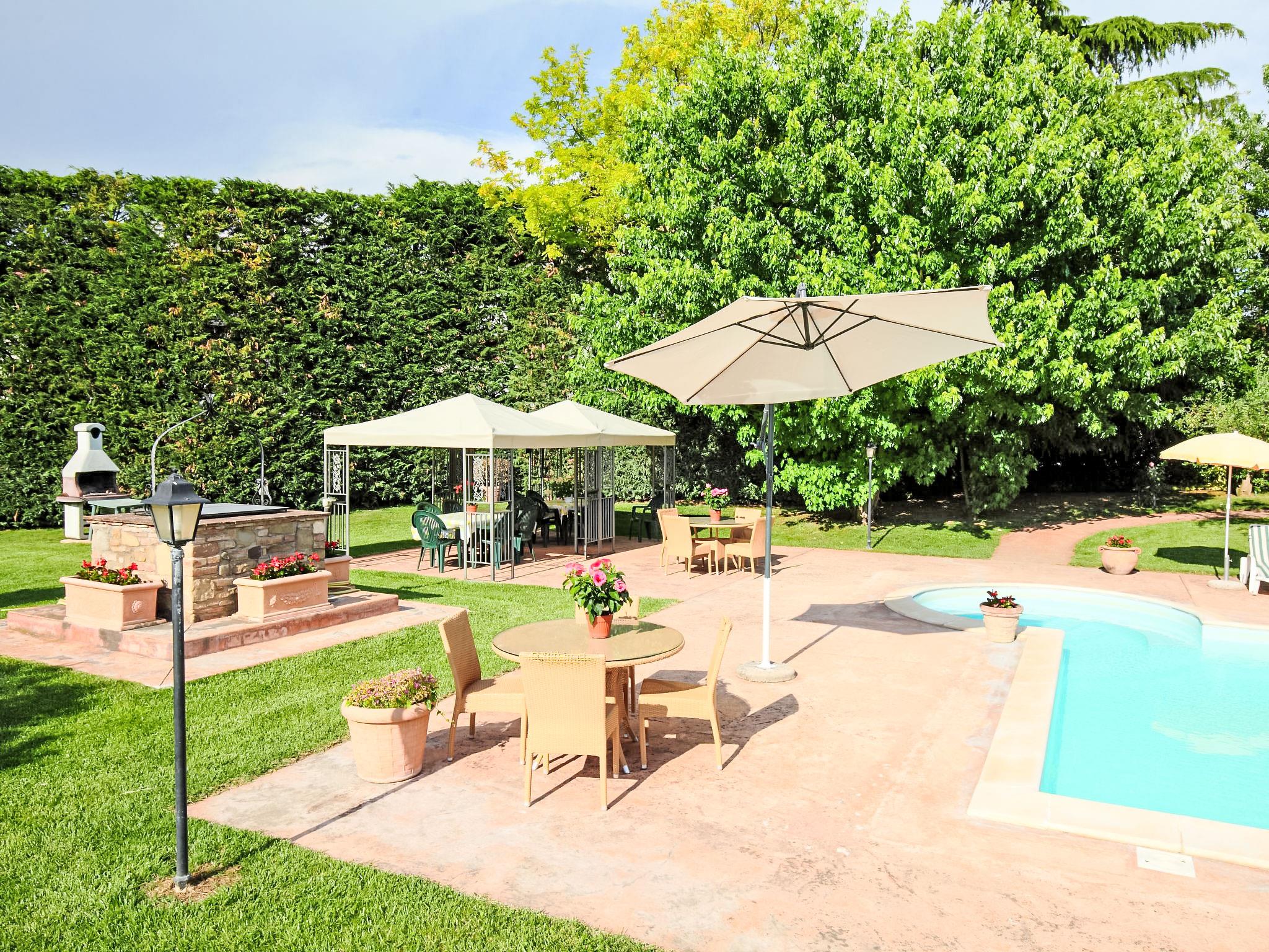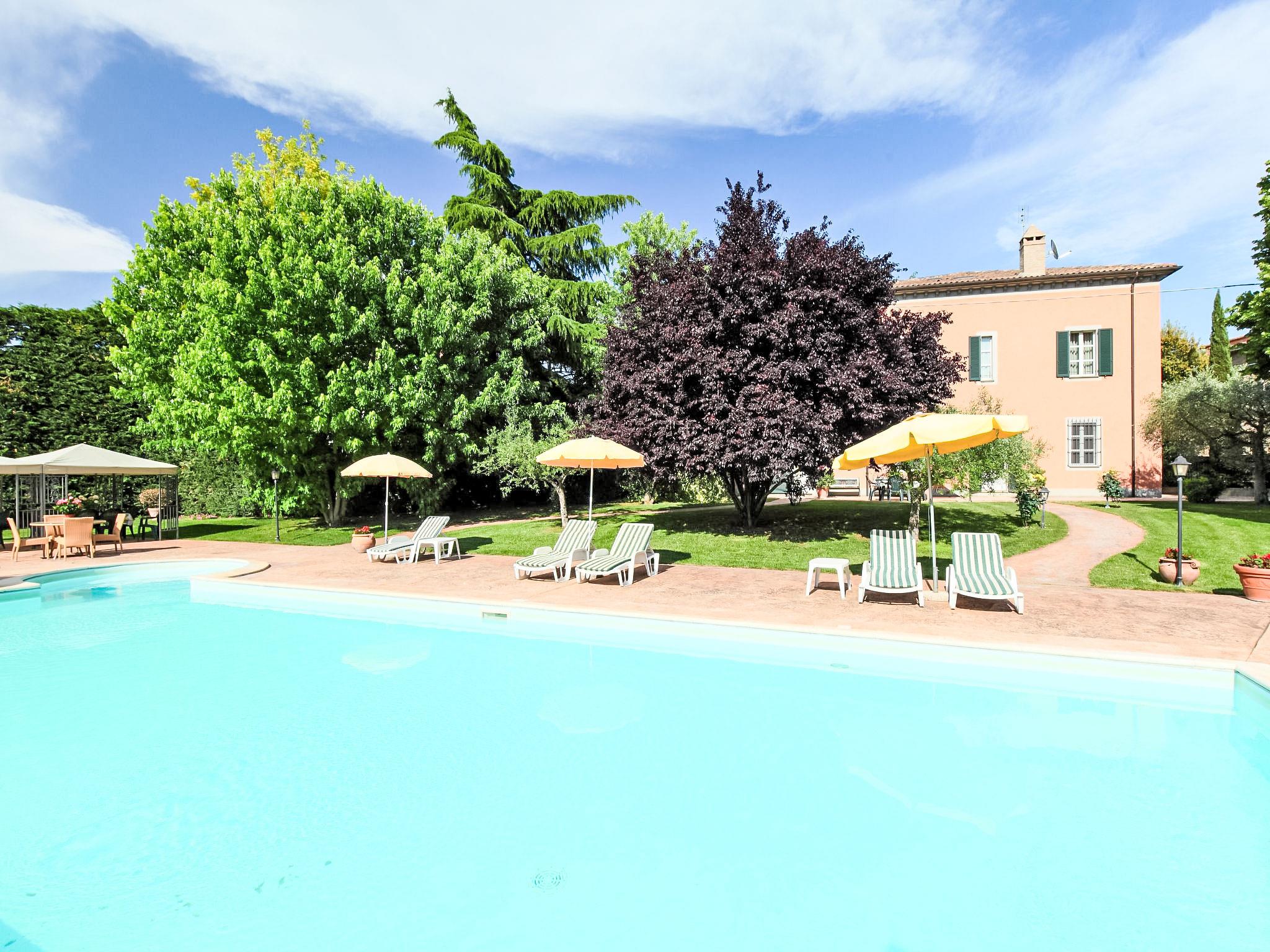 Das Haus wurde Mitte des 19. Jh. von ist Baron einer noblen Familie von Perugia, dessen verwandtschaftliche Verbindungen zurück gehen bis zum Grafen Barberini von Rom und zu Pabst Pius IX. Die Villa und die Fresken wurden vor kurzem von seinen Erben sorgfältig, unter Berücksichtigung ursprünglicher architektonischer Kriterien renoviert. Eine Hauptstrasse führt in ca. 3 m Entfernung am Haus vorbei. Florenz und Rom liegen in 150 km Entfernung, Todi liegt in 30 km Entfernung, Spoleto liegt in 40 km Entfernung und der Flughafen von Perugia liegt in 15 km Entfernung. Villa "Paolotti", Baujahr 1870. In einem Weiler, 3 km vom Zentrum von Bettona, 18 km vom Zentrum von Perugia, sonnige Lage, an einer Hauptstrasse. Zur Alleinbenutzung: Garten (eingezäunt), Schwimmbad (14 x 6 m, 145 cm tief, saisonale Verfügbarkeit: 25.Mai. - 30.Sep.). Pergola, Gartenmöbel, Grill. Im Hause: Waschmaschine. Zur Verfügung: Fahrräder (4) (extra). Parkplatz auf dem Grundstück. Lebensmittelgeschäft 100 m, Supermarkt 1 km, Restaurant 1 km. Reitstall 3 km. Nahe gelegene Sehenswürdigkeiten: Assisi 15 km. Der Besitzer akzeptiert keine Jugendgruppen.