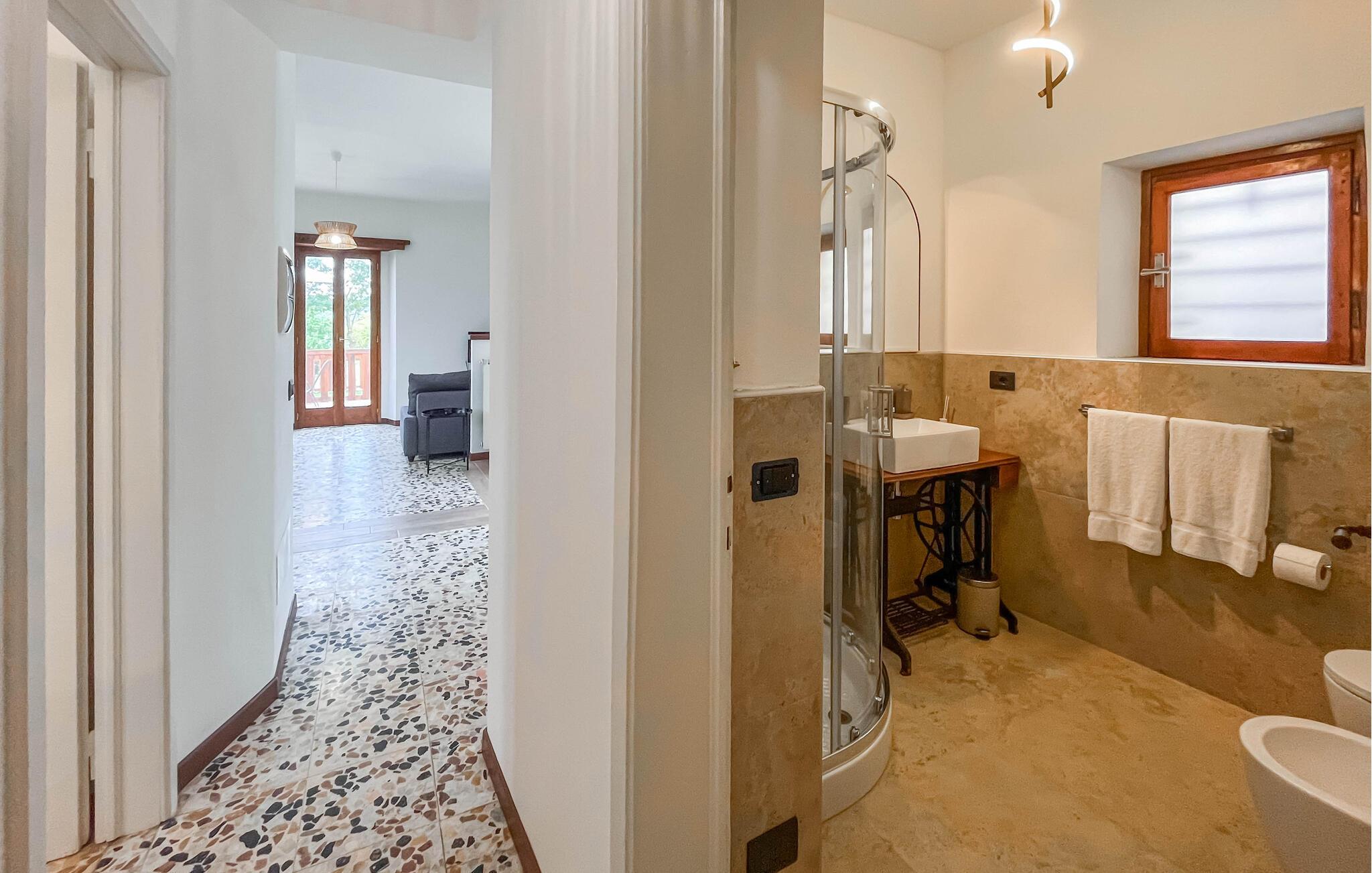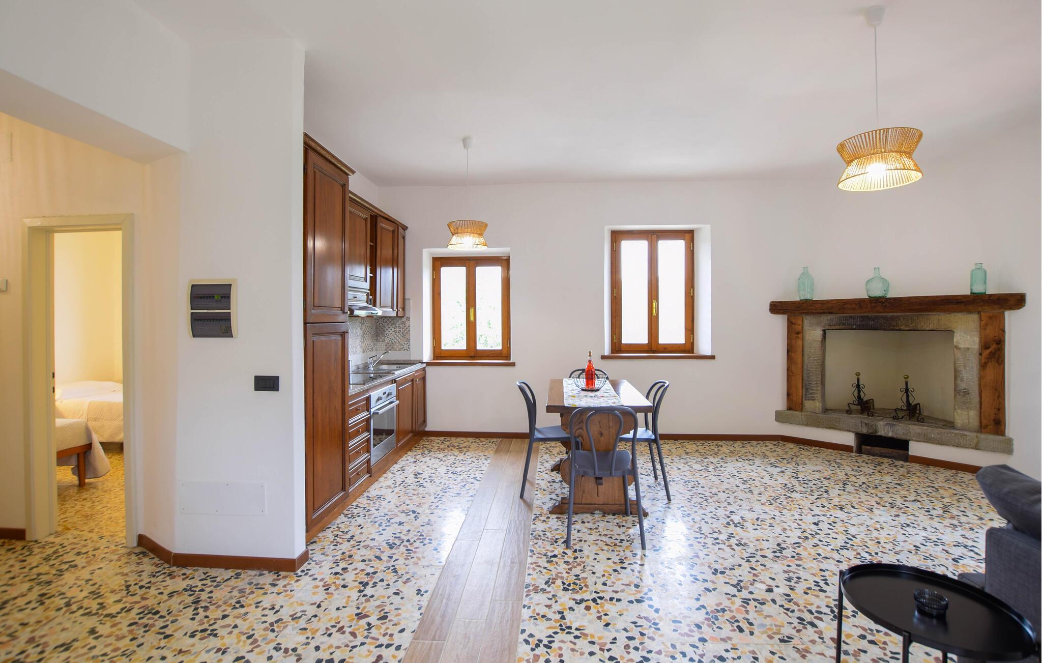 Inmitten der grünen Hügel des Casentino-Parks liegt diese charmante Doppelhaushälfte. Die Einrichtung verbindet rustikalen Charme mit modernem Komfort und schafft so eine gemütliche, entspannende Atmosphäre, in der Sie sich wie zuhause fühlen können. Gemeinsam mit Ihren Lieben können Sie hier Ihren Alltag hinter sich lassen, gemeinsam Kochen oder einfach die Beine auf dem Sofa hochlegen.