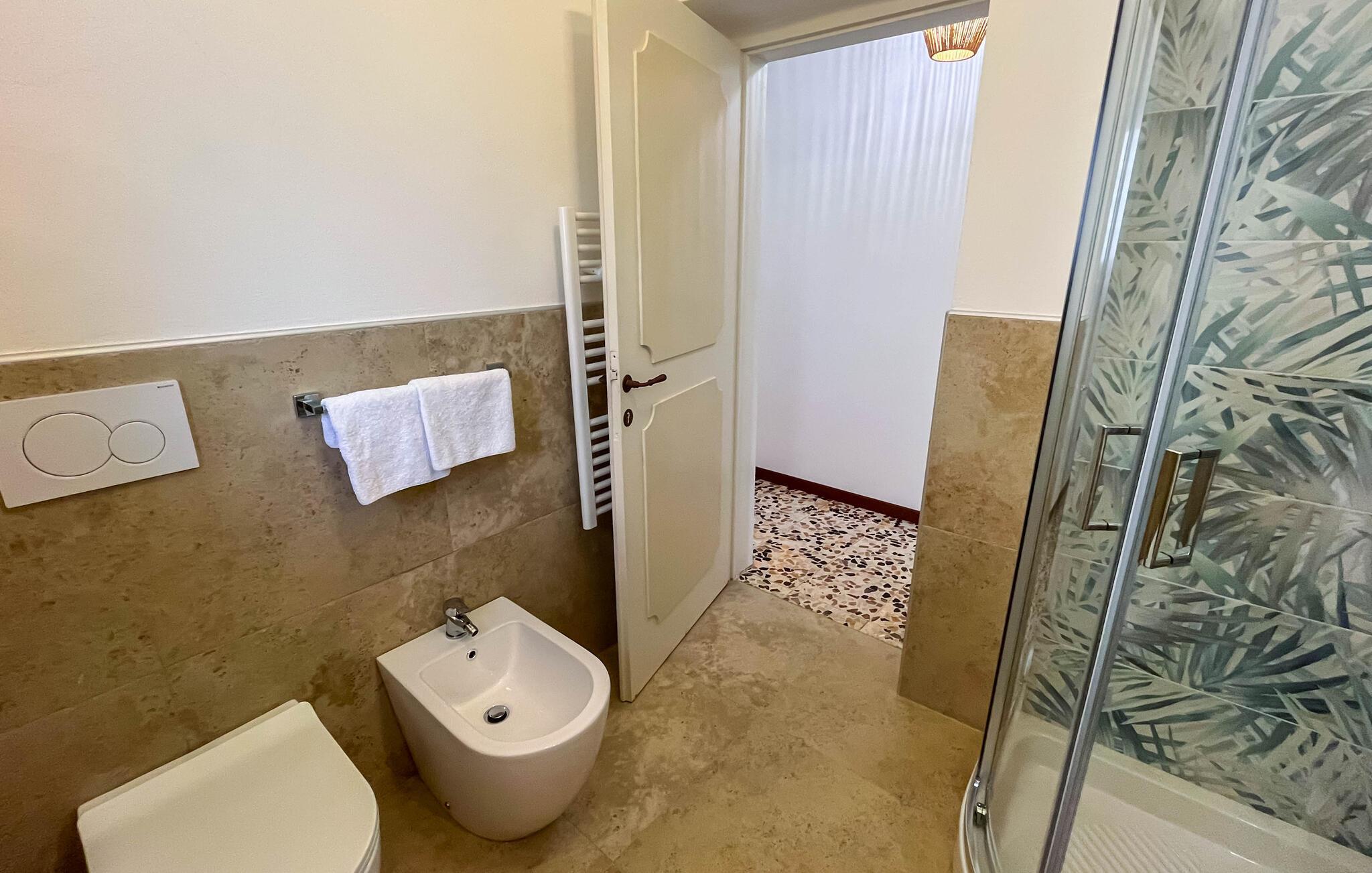 - WC mit warmem und kaltem Wasser, Dusche