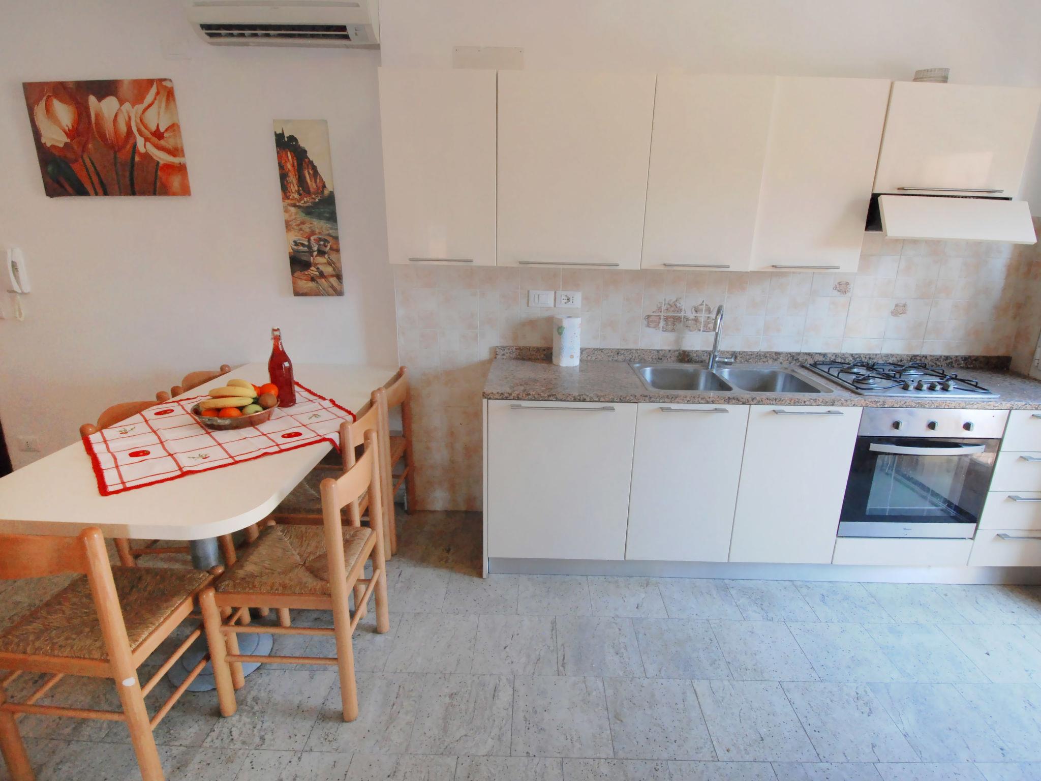 3-Zimmer-Wohnung 62 m2. Einfach und komfortabel eingerichtet: Wohn-/Schlafzimmer mit 1 Doppeldiwanbett und TV. Ausgang zum Balkon. 1 Zimmer mit 1 Doppelbett. 1 Zimmer mit 1 x 2 Etagenbetten. Kochnische). Dusche/Bidet/WC. Klimaanlage, Warmluftheizung. Grosser Balkon. Maximal 1 Haustier/Hund erlaubt. IT027034B4I57S5LCX