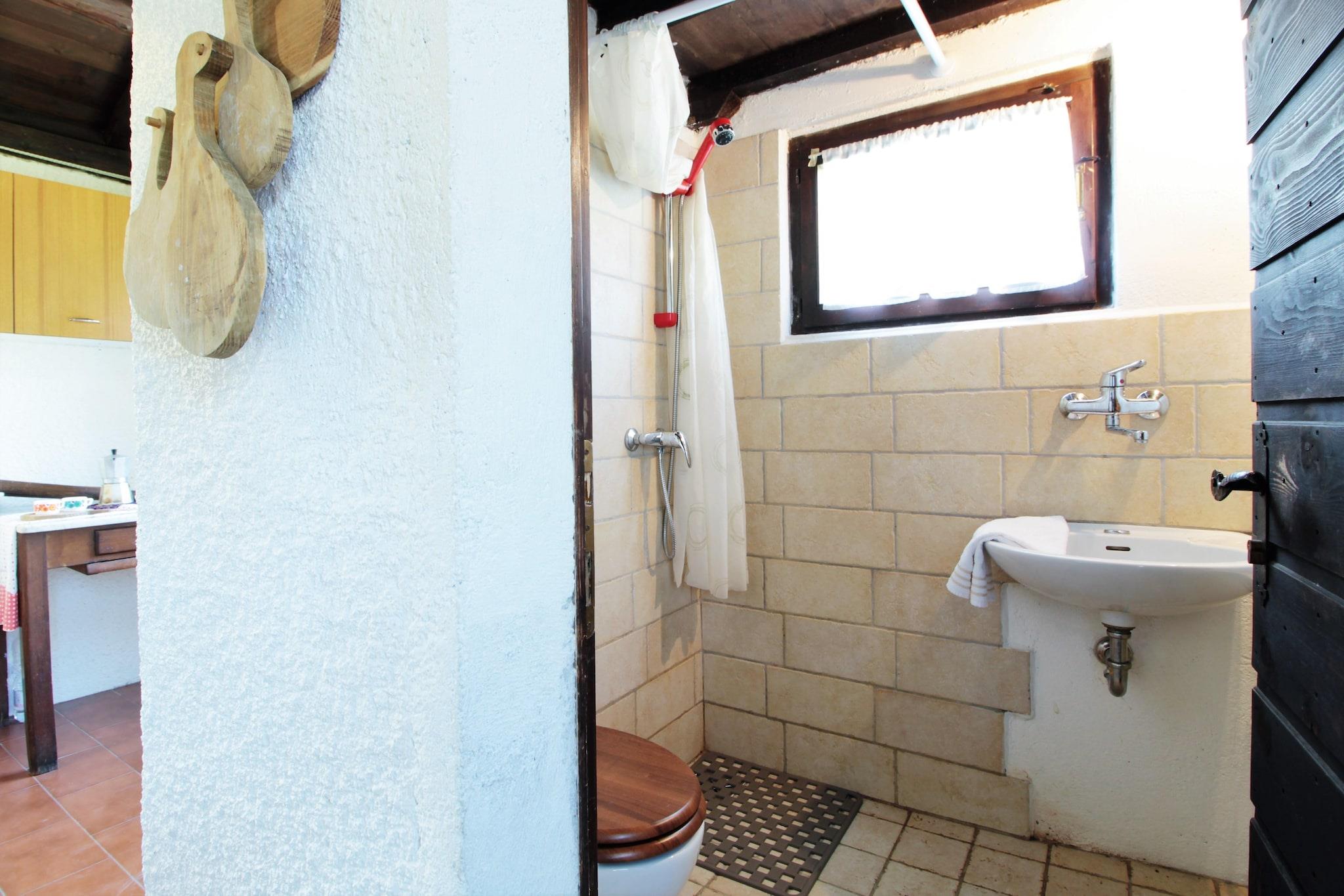 Parterre: (Küche(Kochplatte, Kochherd, Kühlschrank), Wohn/Esszimmer(TV, Esstisch, Kaminofen), Badezimmer(Dusche, Waschbecken, Toilette), Veranda(20 m2)) In der 1. Etage: (Schlafzimmer(über steile Treppe)(Einzelbett, Einzelbett, Doppelbett, Balkon)) Esstisch, Reisebett , Garten, Liegen, Parkplatz, Fußballtor, Hochstuhl, Außenkamin