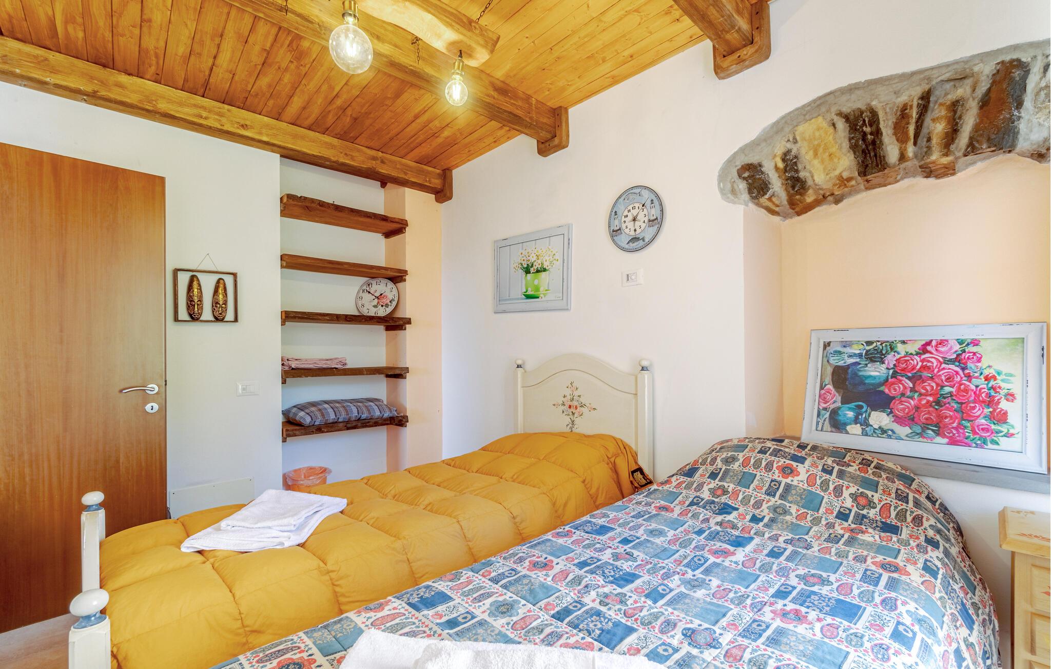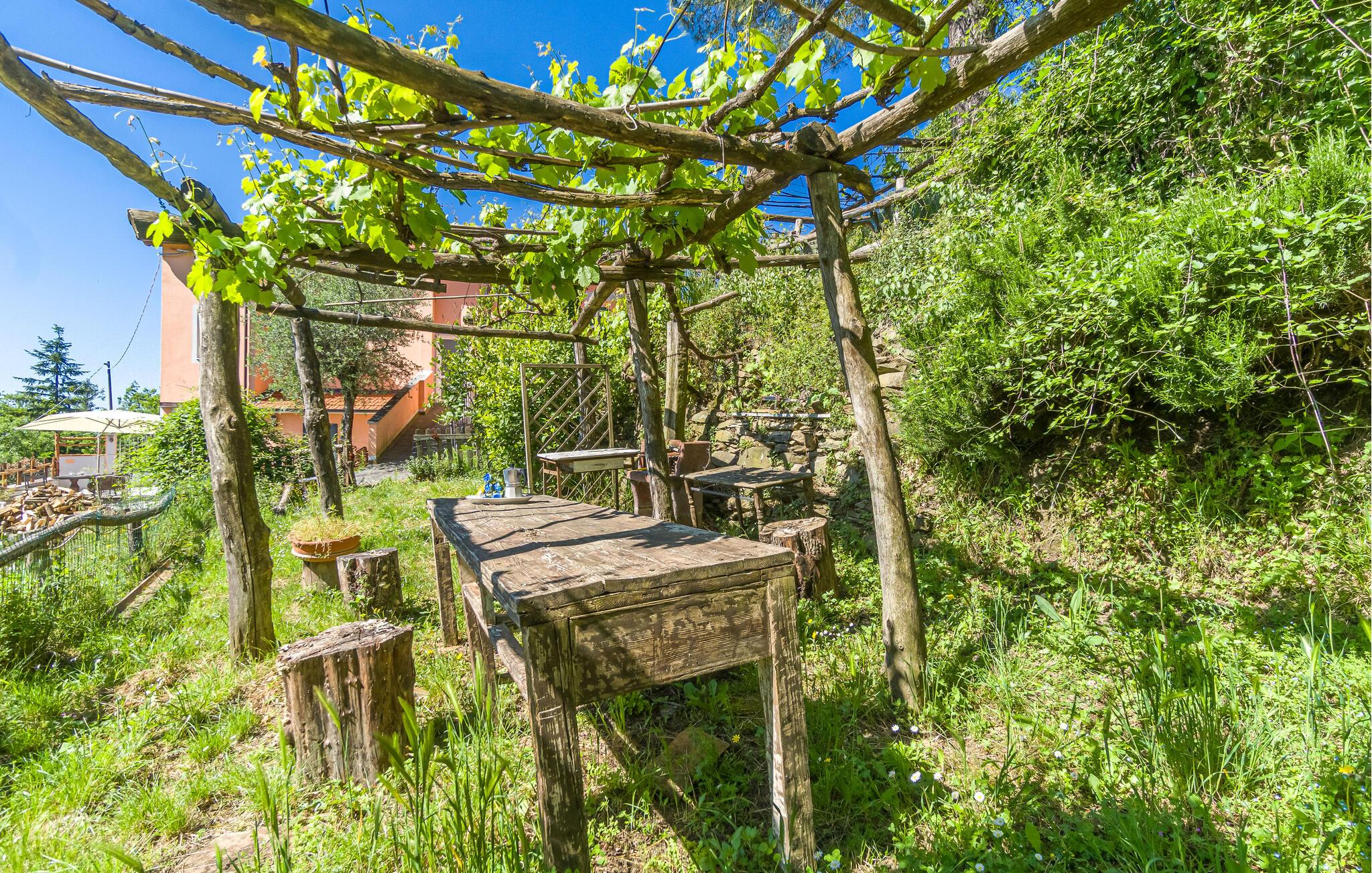 Hübsche Ferienwohnung in einem Zweifamilienhaus in den Hügeln der Lunigiana, an der Grenze zur lebendigen Versilia-Küste und zu den wunderschönen Cinque Terre. Das Haus hat zwei Stockwerke mit Küche, großem Wohnzimmer im Erdgeschoss, hingegen im ersten Stock findet man die drei Schlafzimmer von dem zwei ein Bad haben. Vor dem Wohnzimmer befindet sich eine schöne überdachte Terrasse mit dem umzäunten Garten, mit der Möglichkeit im Freien essen zu können und mit Spielgeräten für die Kinder. Die Lage ist ideal, um den Park von Montemarcello zu besichtigen (33 km), der für seine wunderschönen Landschaften bekannt ist, wo man Trekking machen kann, Kanu fahren auf den Fluss Vara oder Birdwatching. Das Städtchen Tellaro (29 km) auf Felsen gebaut, ist berühmt für die charakteristische Feier der Geburt des Jesuskindes unter Wasser. In der Nähe befindet sich auch Portovenere (38 km), die Perle vom Golf, mit ihrem exklusiven mittelalterlichen Stadtzentrum und ihrer berühmten großen Treppe. Besichtigen Sie auch das schöne Lerici (27 km) mit seinem Schloss und machen Sie den wunderschönen Spaziergang bis zu den Stränden von San Terenzo, geliebt von den Schriftstellern der Romantik wie Byron und Shelley. Hier von Lerici fahren die Fähren zu den wunderschönen Cinque Terre (Riomaggiore 36 km). La Spezia (22 km) bietet am ersten Wochenende vom August mit seinem Palio del Golfo eine besondere Attraktion für die Liebhaber von Regatten und maritimer Tradition; hier kann man beobachten, wie 13 handgemachte Fischerboote gegeneinander um den ersten Platz am Kai konkurrieren. Genauso wichtig ist die Festa della Marineria, die in den ersten Tagen von Oktober stattfindet (4 Tage) und die maritimen Traditionen von La Spezia feiert. Weitere Ausflugsziele vom Ferienhaus aus sind Marina di Massa (45 km) und Forte dei Marmi (57 km). Liebhaber des Trekkings können von den Apuanischen Alpen nach Colonnata wandern (50 km), wo man das leckere Lardo di Colonnata (Speck) essen kann. Auf Anfrage gibt es Kochkurse für ligurische Küche. – Ein asphaltierter Teil der Gemeindestraße (2,5 km) hat einen deformierten Boden und muss mit Vorsicht befahren werden!
