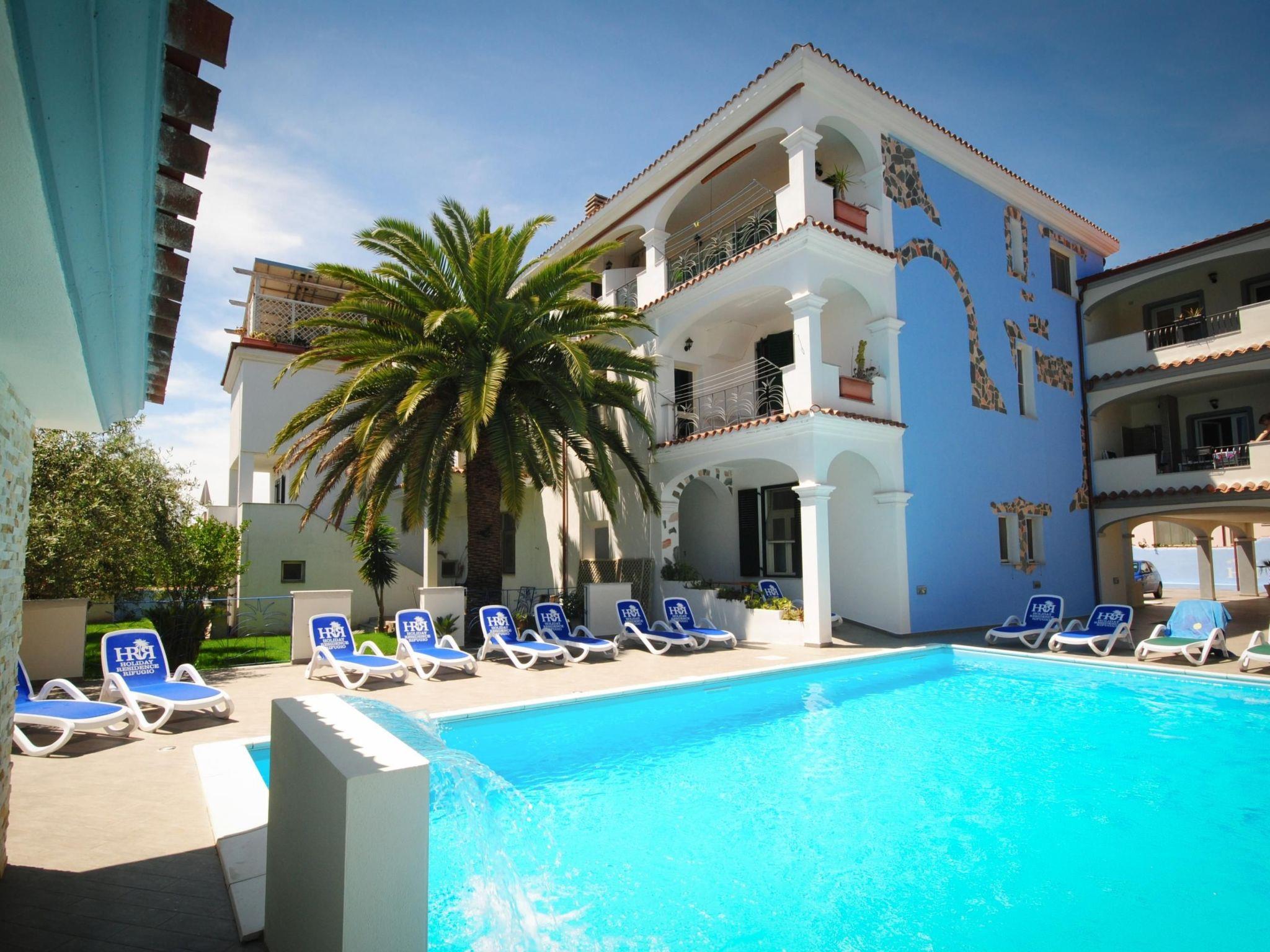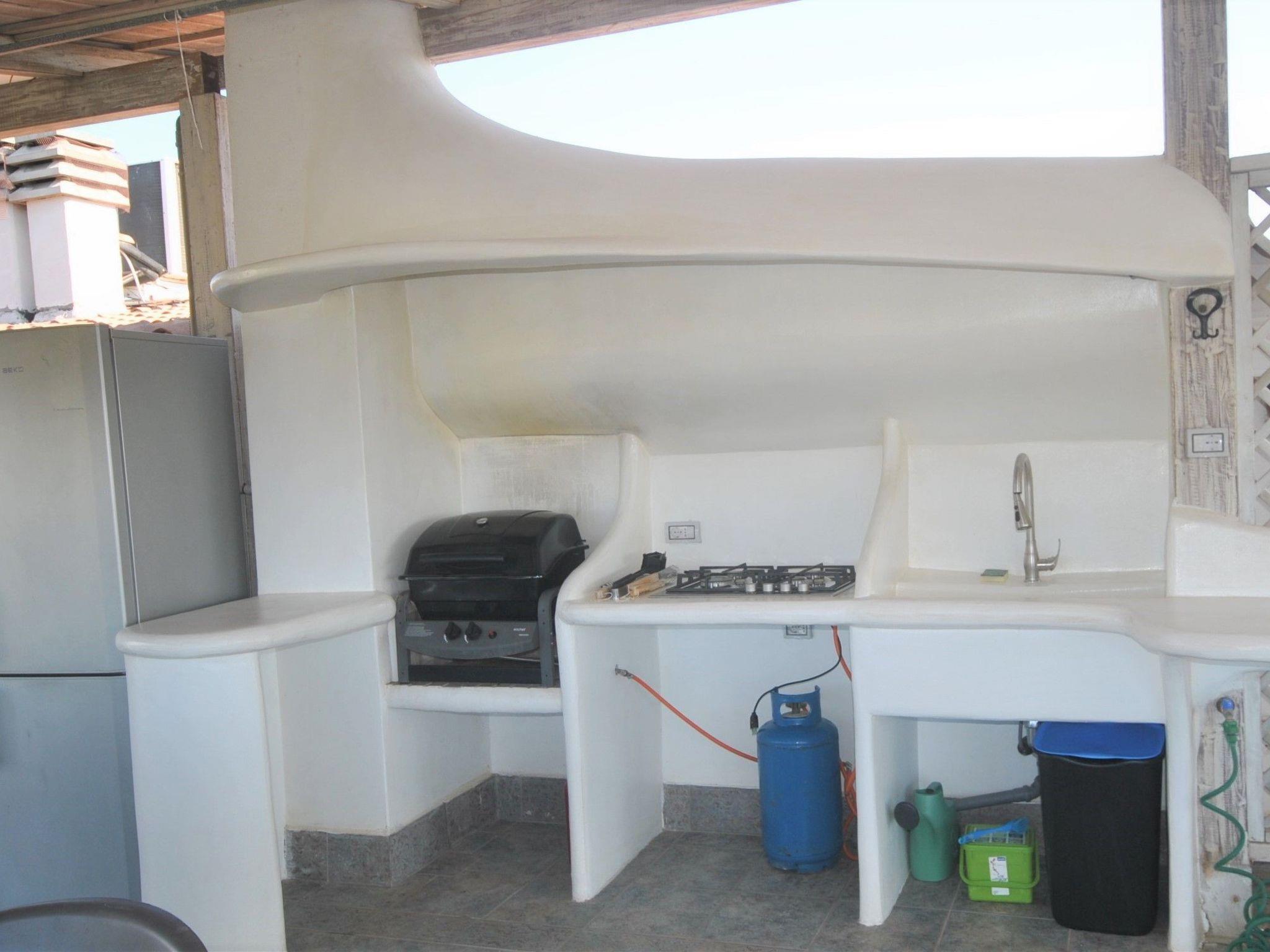 Die Wohnung verfügt über eine riesige Terrasse (85m²) mit Aussenküche, grossem Tisch, Stühlen, Liegen, Gasgrill und wunderschöner Aussicht aufs Meer und Olivenhain. Durch die freie Lage der Veranda (360°) herrscht meistens ein angenehmer Wind. Der 70m² grosse Swimmingpool mit bequemen Liegestühlen, lädt ab Mitte Mai bis Mitte Oktober zum Verweilen ein.