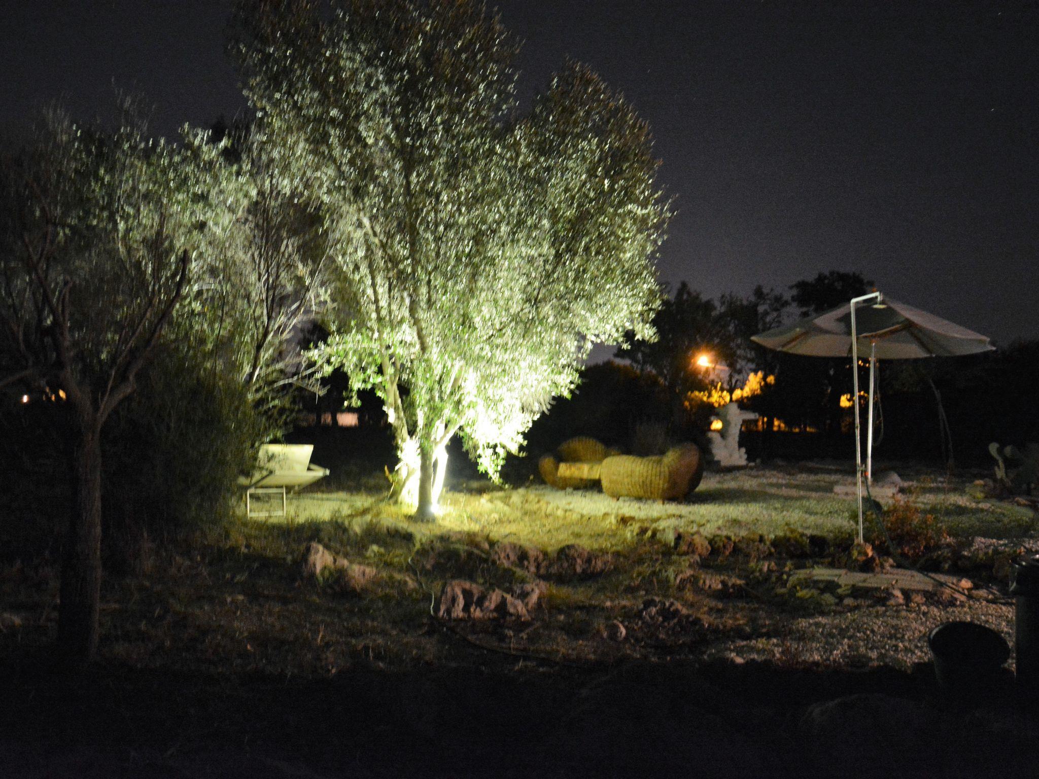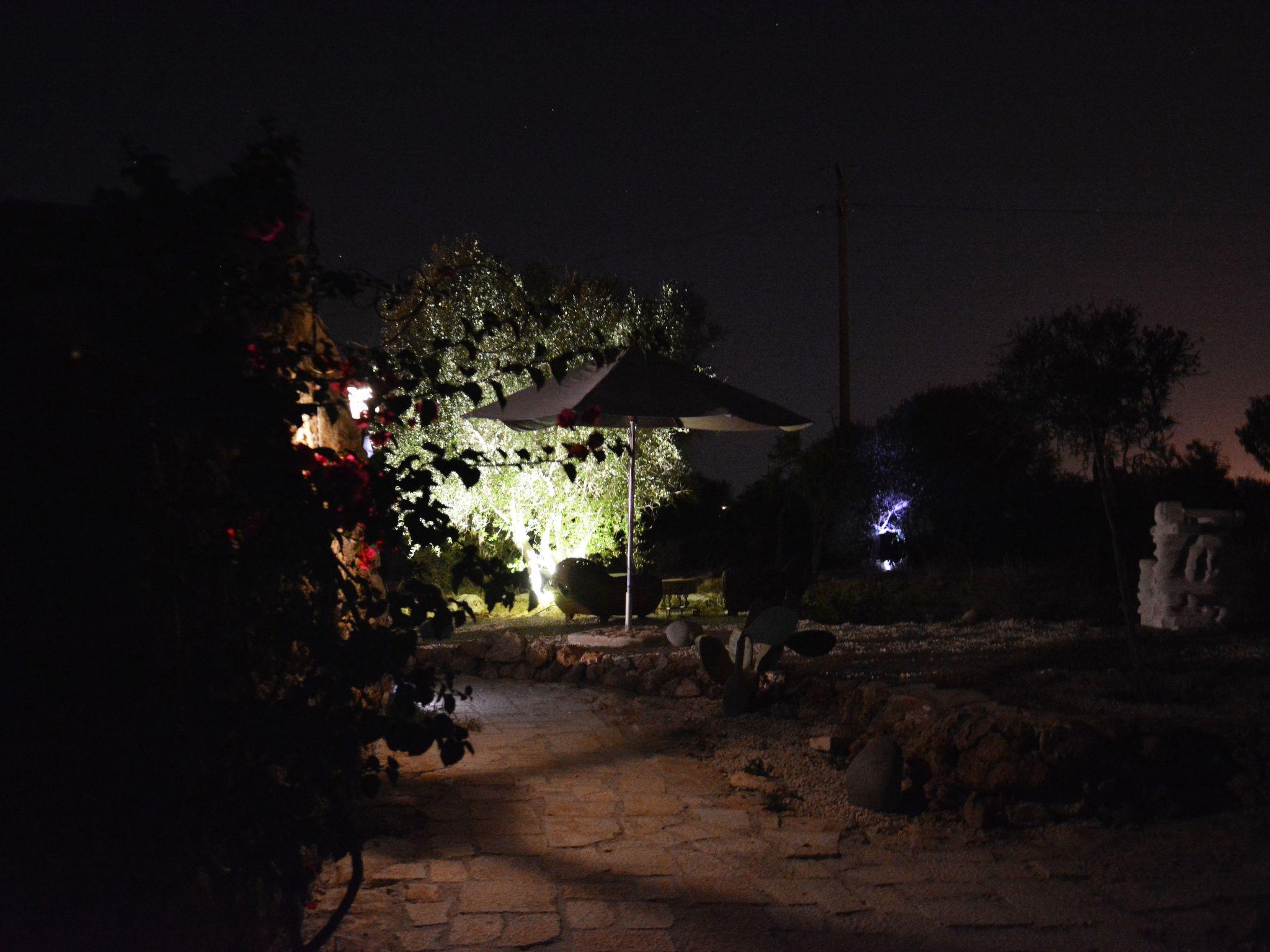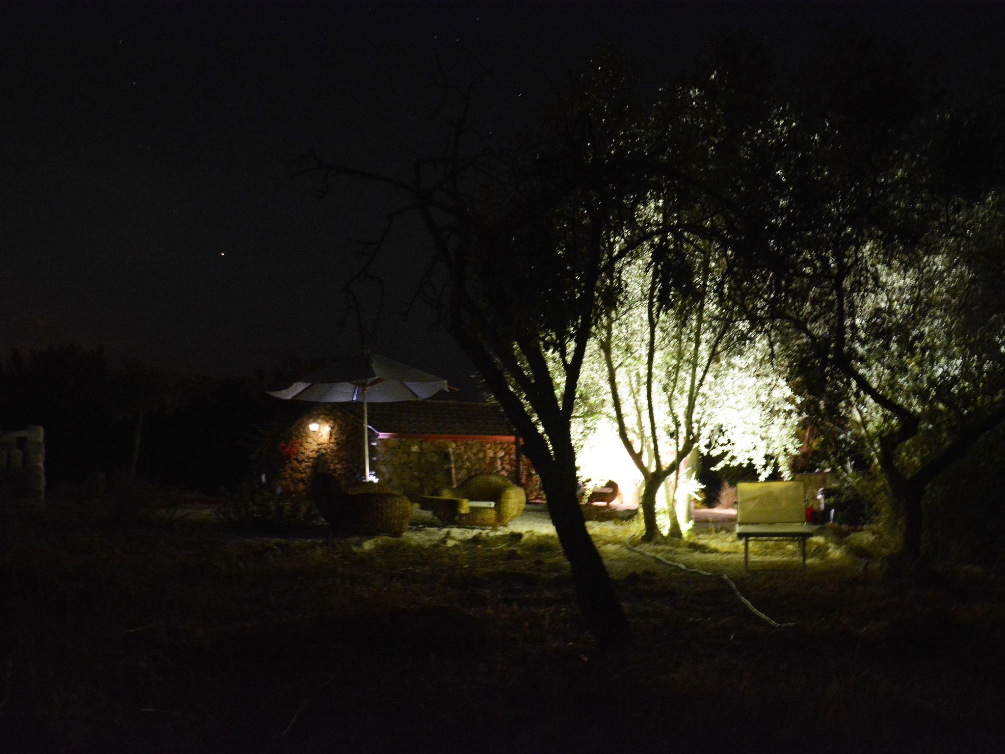 Vom Wohnzimmer aus haben Sie Zugang zu der überdachten und möblierten Terrasse. Weiter im Garten (mit vielen Mandelbäumen bepflanzt) ist eine weitere Terrasse mit Liegestühlen und einem schönen Blick auf die Küste.