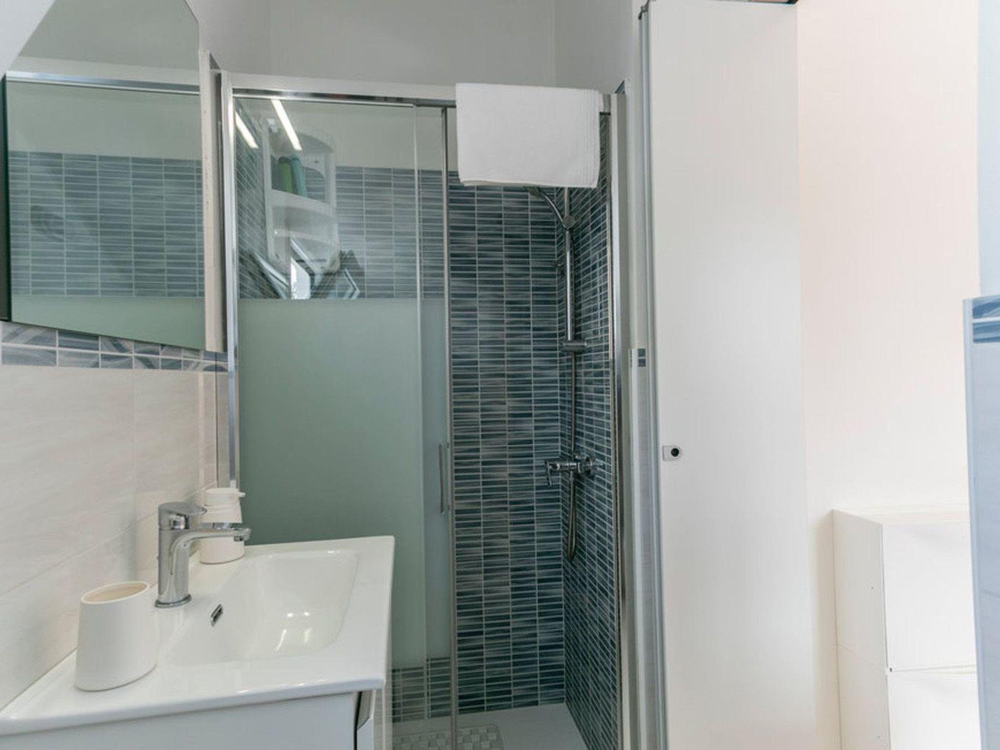 Die Wohnung im Erdgeschoss ist etwa 90 Quadratmeter groß und bietet maximalen Komfort und Gemütlichkeit. Sie verfügt über drei klimatisierte Schlafzimmer, davon zwei mit Doppelbett und eines mit zwei Einzelbetten sowie ein Zwischengeschoss, das sich bei Bedarf in ein Doppelbett umwandeln lässt. Die Küche ist mit einem Ofen, einer Mikrowelle und einer Kaffeemaschine ausgestattet. Das Wohnzimmer ist der ideale Ort für entspannende Momente, ausgestattet mit einem bequemen Sofa, einem Esstisch und einem Flachbildfernseher. Die beiden Bäder sind mit allen Annehmlichkeiten ausgestattet, darunter ein Waschbecken, ein WC, eine Dusche und ein Bidet. Kostenloses Wi-Fi und klimatisierte Zimmer machen das Innere der Villa zu einem komfortablen Rückzugsort zu jeder Jahreszeit.