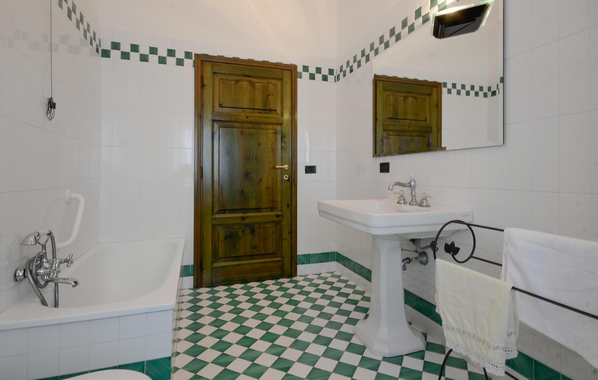 - WC mit warmem und kaltem Wasser, Dusche und Badewanne