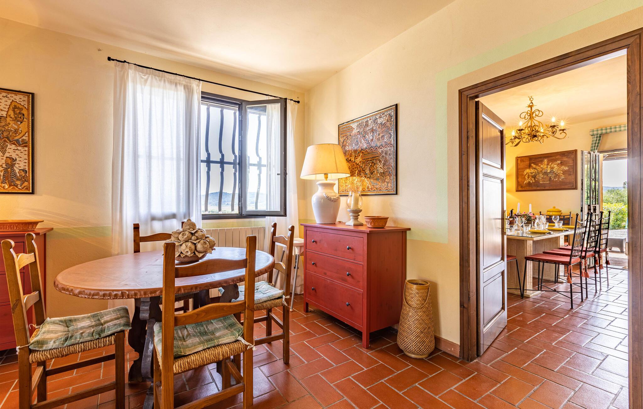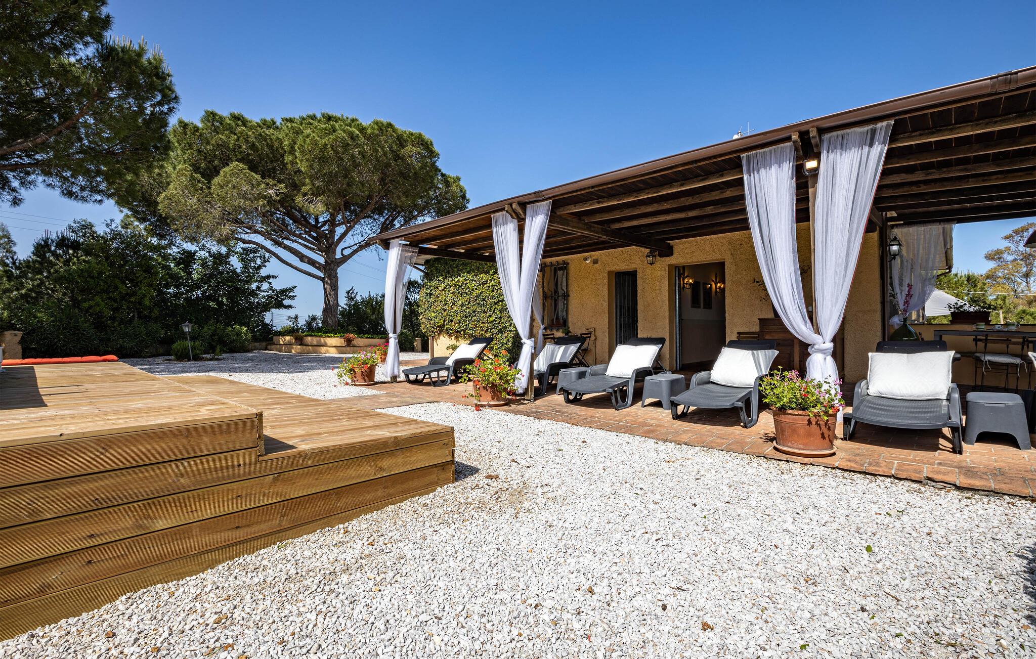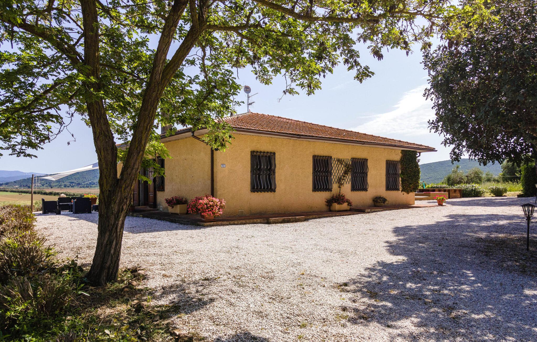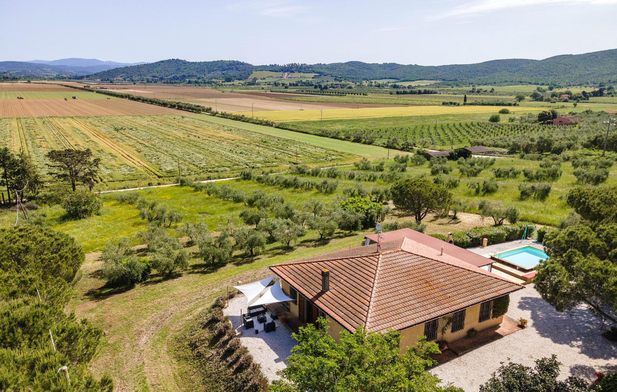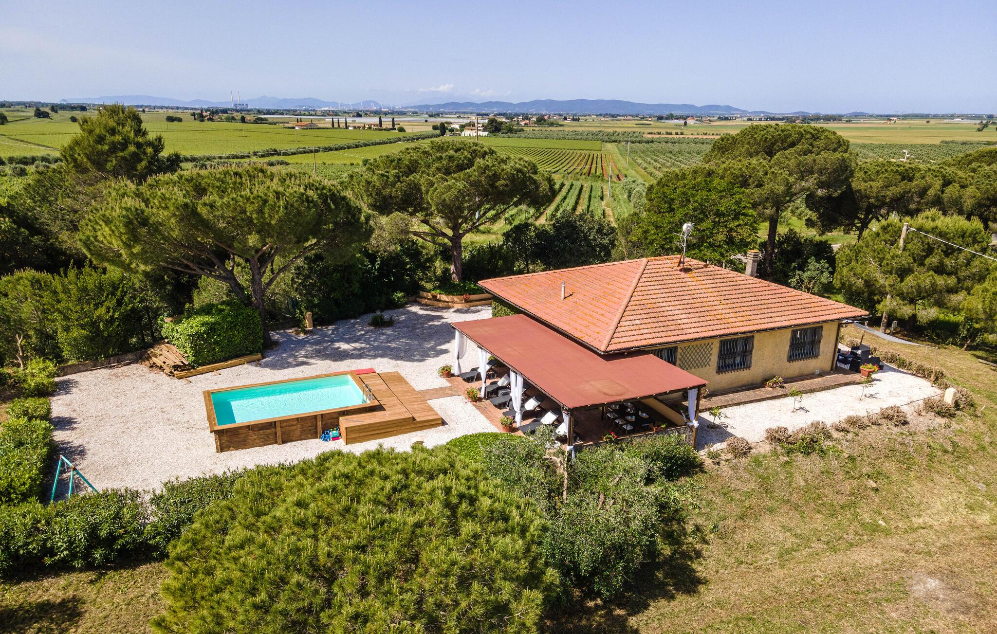 Auf dem Land in der Umgebung von Campiglia Marittima, nur 10 km von den Stränden der etruskischen Küste in der Toskana entfernt, befindet sich dieses schöne Ferienhaus mit einem exklusiven Pool, in dem die Familie, die nach Entspannung und Unabhängigkeit sucht, unvergessliche Momente verbringen kann. Das Haus befindet sich im Erdgeschoss und bietet komfortable und geschmackvoll eingerichtete Räume. Zu Ihrer Verfügung eine geräumige Veranda mit einem großen Tisch für Mahlzeiten im Freien und Sonnenliegen, um entspannende Momente am Pool zu genießen. Ihre Haustiere sind willkommen: sie können im vorderen Bereich oder im Olivenhain (beide nicht eingezäunt) laufen oder spielen. Die Lage ermöglicht, in wenigen Minuten die Küste und die wichtigsten Badeorte der Region zu erreichen: Follonica 16 km, San Vincenzo 23 km, Castiglione della Pescaia 39 km und den schönen Strand von Cala Violina 27 km. Für Liebhaber historischer Stätten empfehlen wir Suvereto 11 km, Campiglia Marittima 9 km und die wunderbare Populonia 212 km mit der etruskischen Nekropole mit Blick auf den Golf von Baratti, Massa Marittima 31 km. Eine gute Alternative zum Meer kann der Thermalort in Venturina 9 km sein. Von Piombino (23 km) aus fahren Boote zur Insel Elba. Hier können Sie das Essen und den Wein der Gegend probieren, die auf die ganze Welt berühmt ist. Die Weinliebhaber können den Besuch eines berühmten Weinkellers (2,5 km) nicht verpassen, in dem Verkostungen und Besuche organisiert werden. In diesem Haus werden Sie Ihren schönsten Urlaub verbringen!