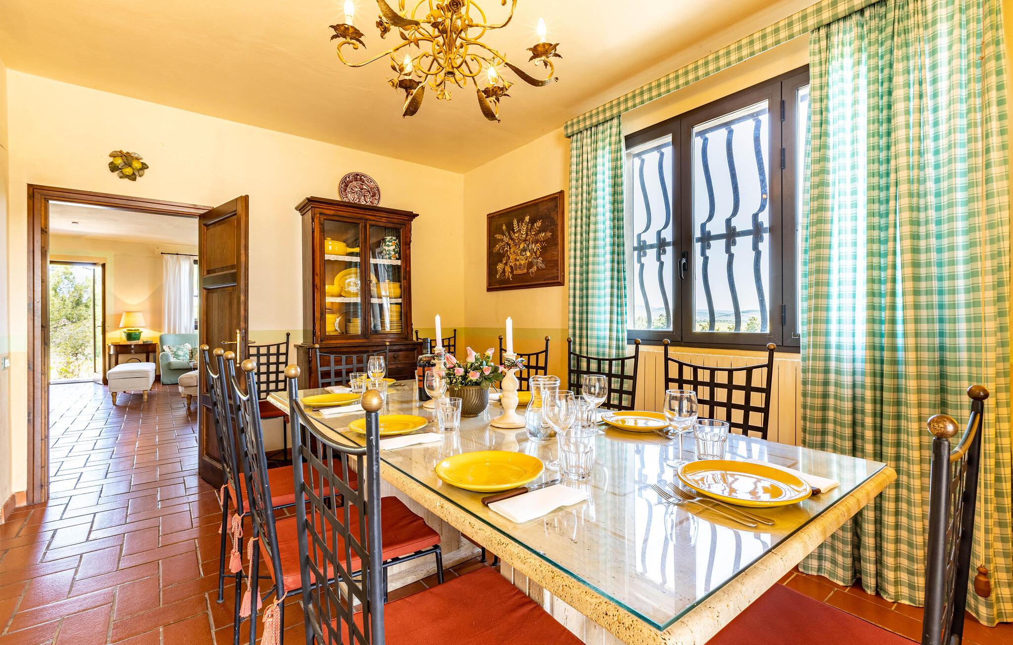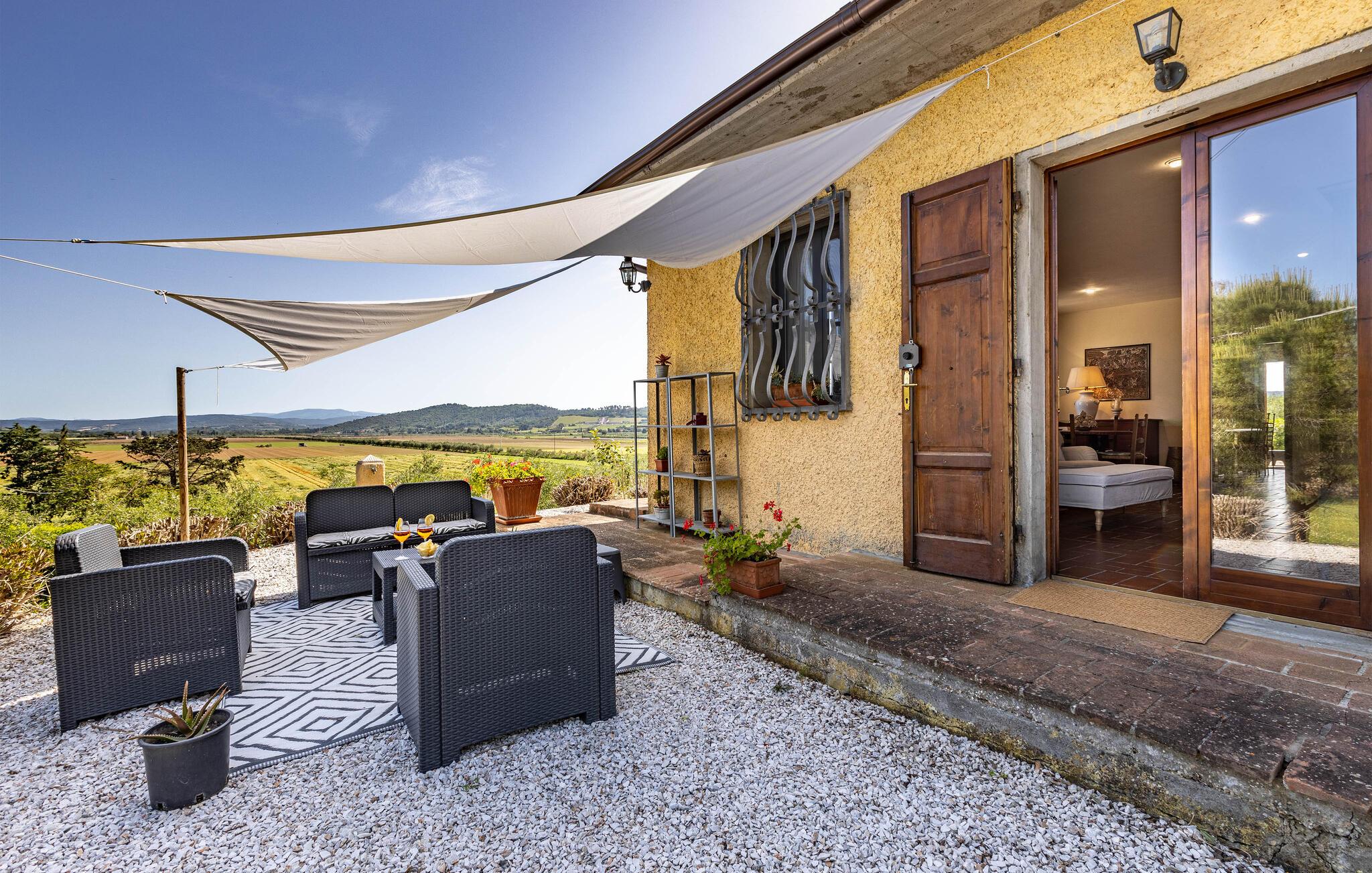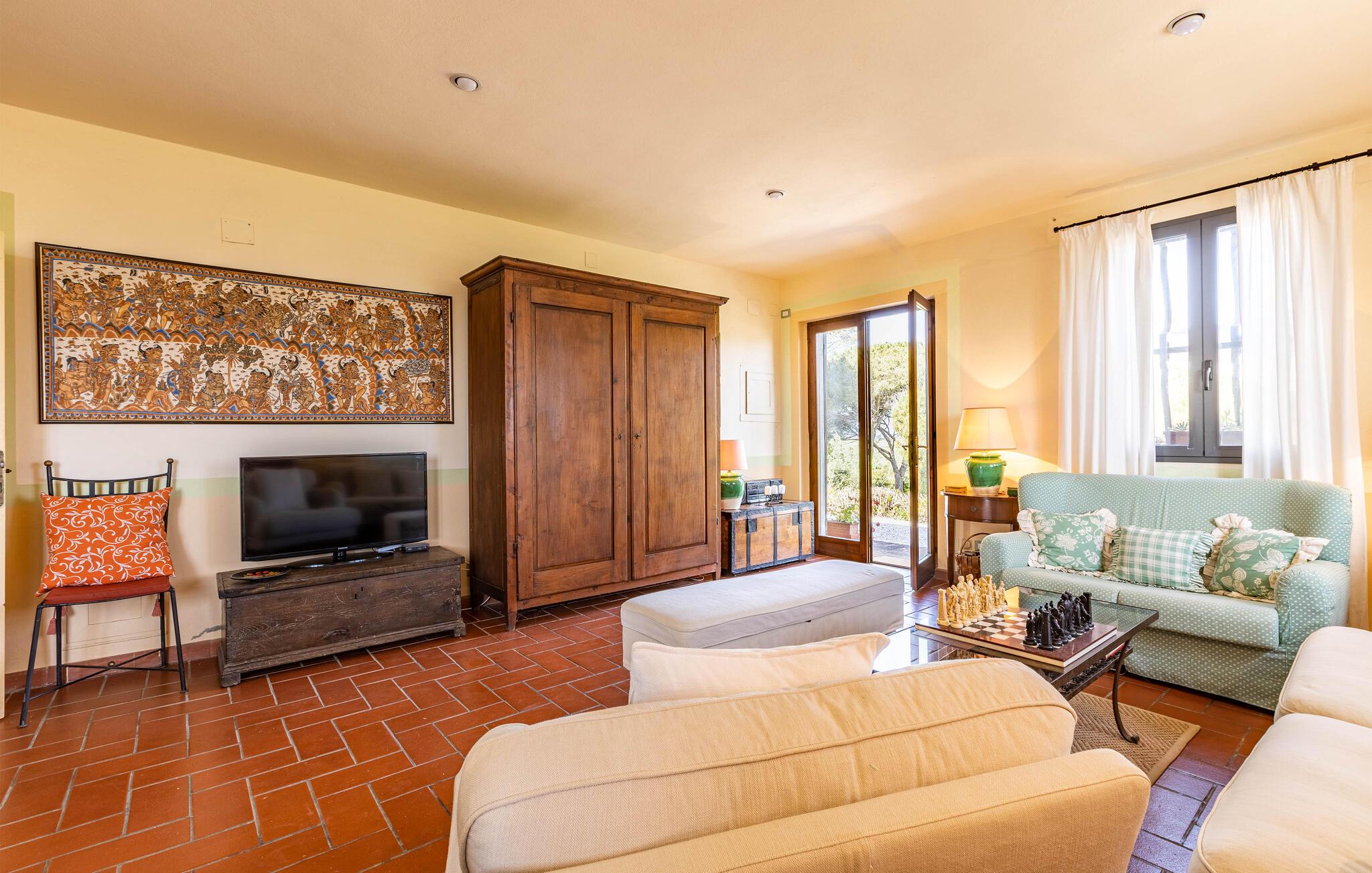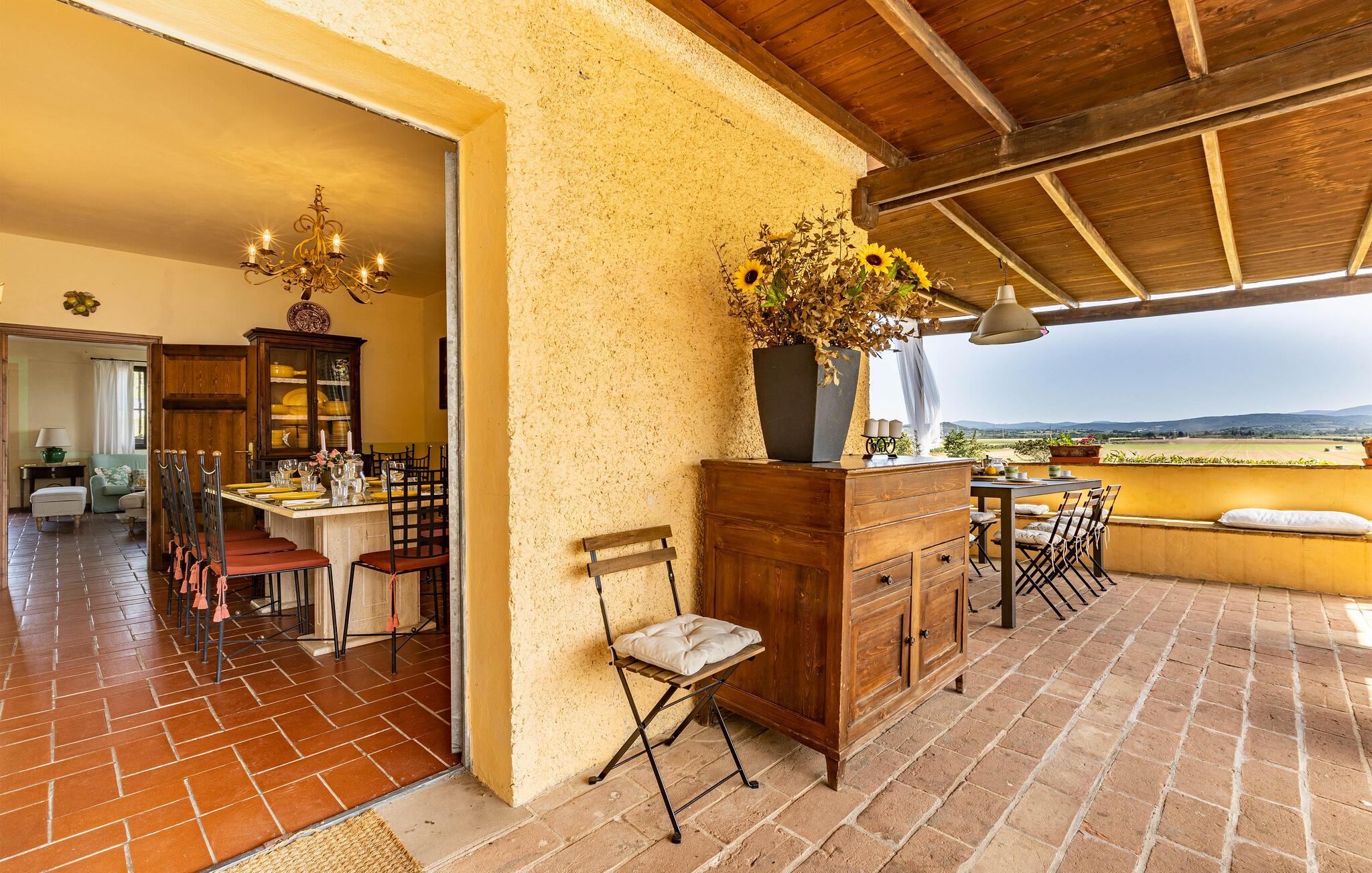 Auf dem Land in der Umgebung von Campiglia Marittima, nur 10 km von den Stränden der etruskischen Küste in der Toskana entfernt, befindet sich dieses schöne Ferienhaus mit einem exklusiven Pool, in dem die Familie, die nach Entspannung und Unabhängigkeit sucht, unvergessliche Momente verbringen kann. Das Haus befindet sich im Erdgeschoss und bietet komfortable und geschmackvoll eingerichtete Räume. Zu Ihrer Verfügung eine geräumige Veranda mit einem großen Tisch für Mahlzeiten im Freien und Sonnenliegen, um entspannende Momente am Pool zu genießen. Ihre Haustiere sind willkommen: sie können im vorderen Bereich oder im Olivenhain (beide nicht eingezäunt) laufen oder spielen. Die Lage ermöglicht, in wenigen Minuten die Küste und die wichtigsten Badeorte der Region zu erreichen: Follonica 16 km, San Vincenzo 23 km, Castiglione della Pescaia 39 km und den schönen Strand von Cala Violina 27 km. Für Liebhaber historischer Stätten empfehlen wir Suvereto 11 km, Campiglia Marittima 9 km und die wunderbare Populonia 212 km mit der etruskischen Nekropole mit Blick auf den Golf von Baratti, Massa Marittima 31 km. Eine gute Alternative zum Meer kann der Thermalort in Venturina 9 km sein. Von Piombino (23 km) aus fahren Boote zur Insel Elba. Hier können Sie das Essen und den Wein der Gegend probieren, die auf die ganze Welt berühmt ist. Die Weinliebhaber können den Besuch eines berühmten Weinkellers (2,5 km) nicht verpassen, in dem Verkostungen und Besuche organisiert werden. In diesem Haus werden Sie Ihren schönsten Urlaub verbringen!