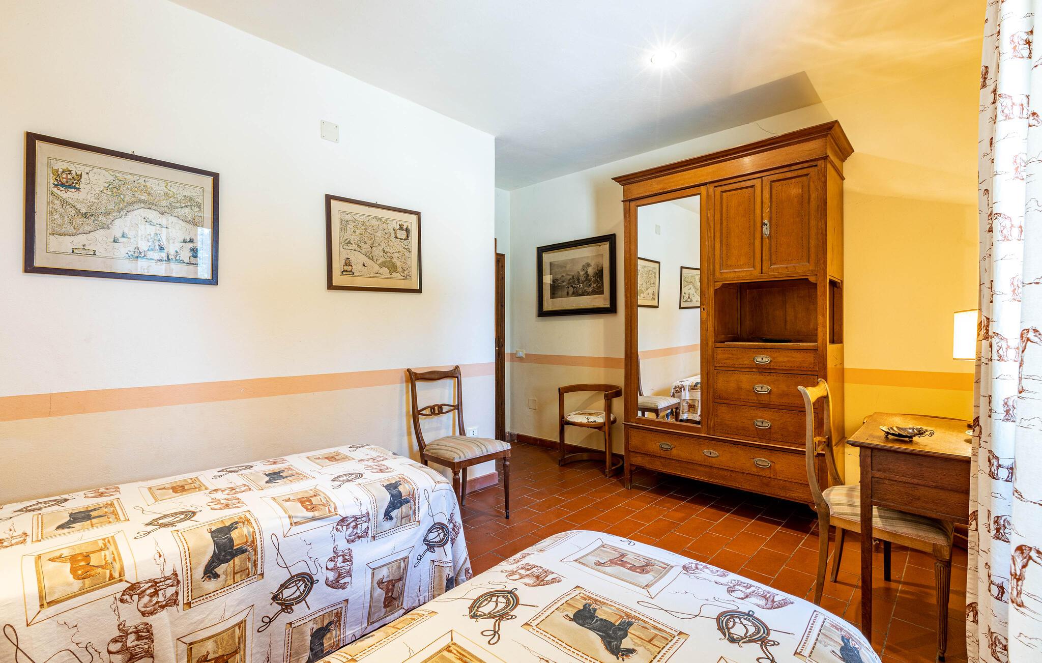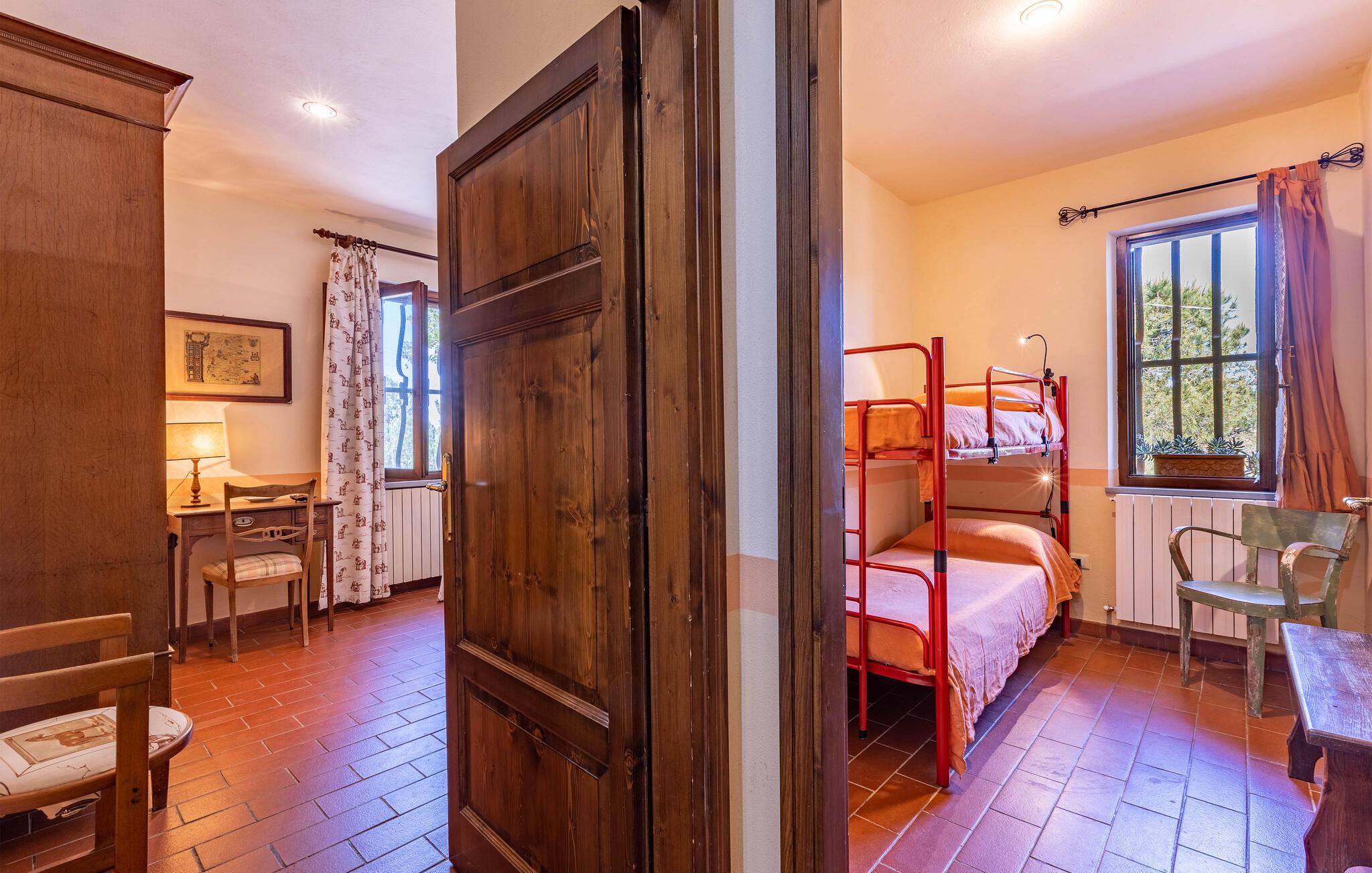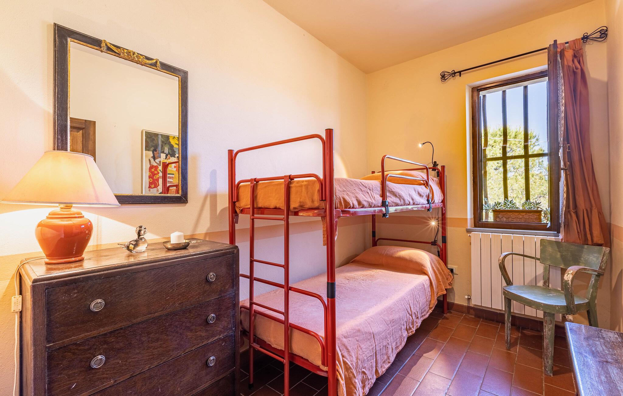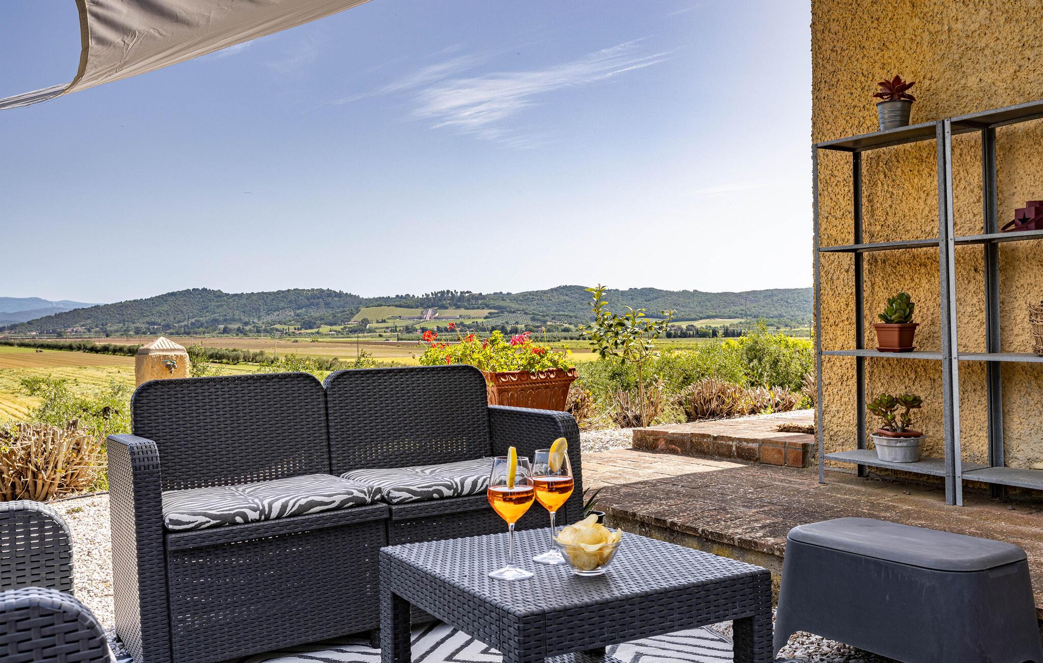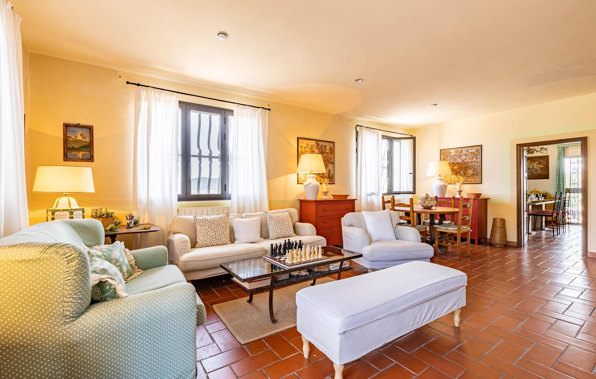 Auf dem Land in der Umgebung von Campiglia Marittima, nur 10 km von den Stränden der etruskischen Küste in der Toskana entfernt, befindet sich dieses schöne Ferienhaus mit einem exklusiven Pool, in dem die Familie, die nach Entspannung und Unabhängigkeit sucht, unvergessliche Momente verbringen kann. Das Haus befindet sich im Erdgeschoss und bietet komfortable und geschmackvoll eingerichtete Räume. Zu Ihrer Verfügung eine geräumige Veranda mit einem großen Tisch für Mahlzeiten im Freien und Sonnenliegen, um entspannende Momente am Pool zu genießen. Ihre Haustiere sind willkommen: sie können im vorderen Bereich oder im Olivenhain (beide nicht eingezäunt) laufen oder spielen. Die Lage ermöglicht, in wenigen Minuten die Küste und die wichtigsten Badeorte der Region zu erreichen: Follonica 16 km, San Vincenzo 23 km, Castiglione della Pescaia 39 km und den schönen Strand von Cala Violina 27 km. Für Liebhaber historischer Stätten empfehlen wir Suvereto 11 km, Campiglia Marittima 9 km und die wunderbare Populonia 212 km mit der etruskischen Nekropole mit Blick auf den Golf von Baratti, Massa Marittima 31 km. Eine gute Alternative zum Meer kann der Thermalort in Venturina 9 km sein. Von Piombino (23 km) aus fahren Boote zur Insel Elba. Hier können Sie das Essen und den Wein der Gegend probieren, die auf die ganze Welt berühmt ist. Die Weinliebhaber können den Besuch eines berühmten Weinkellers (2,5 km) nicht verpassen, in dem Verkostungen und Besuche organisiert werden. In diesem Haus werden Sie Ihren schönsten Urlaub verbringen!