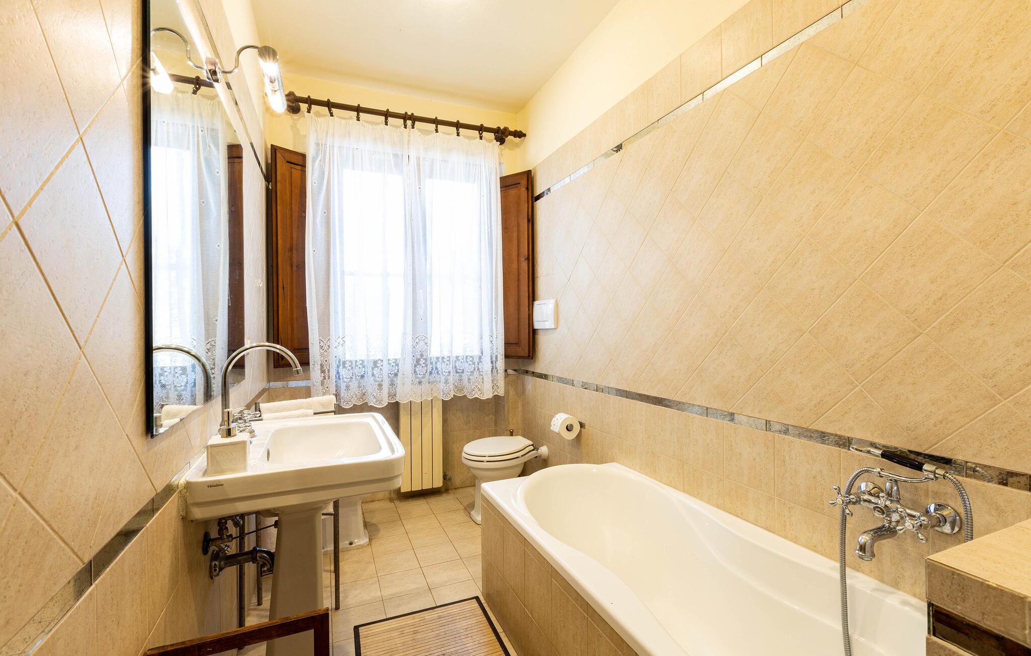 - WC mit warmem und kaltem Wasser, Dusche und Badewanne