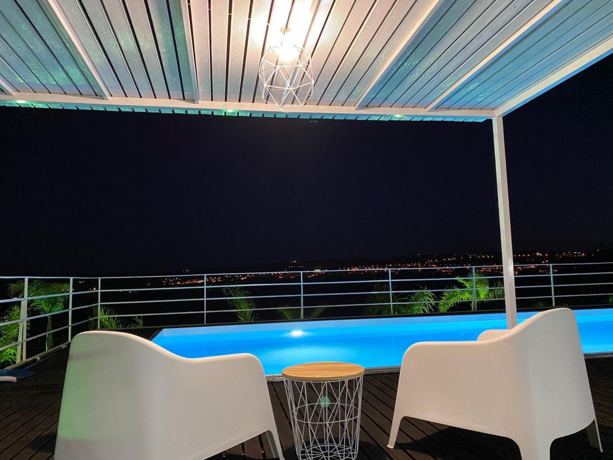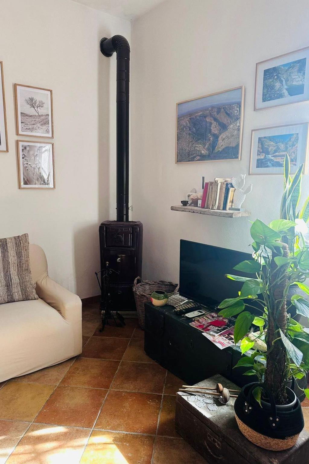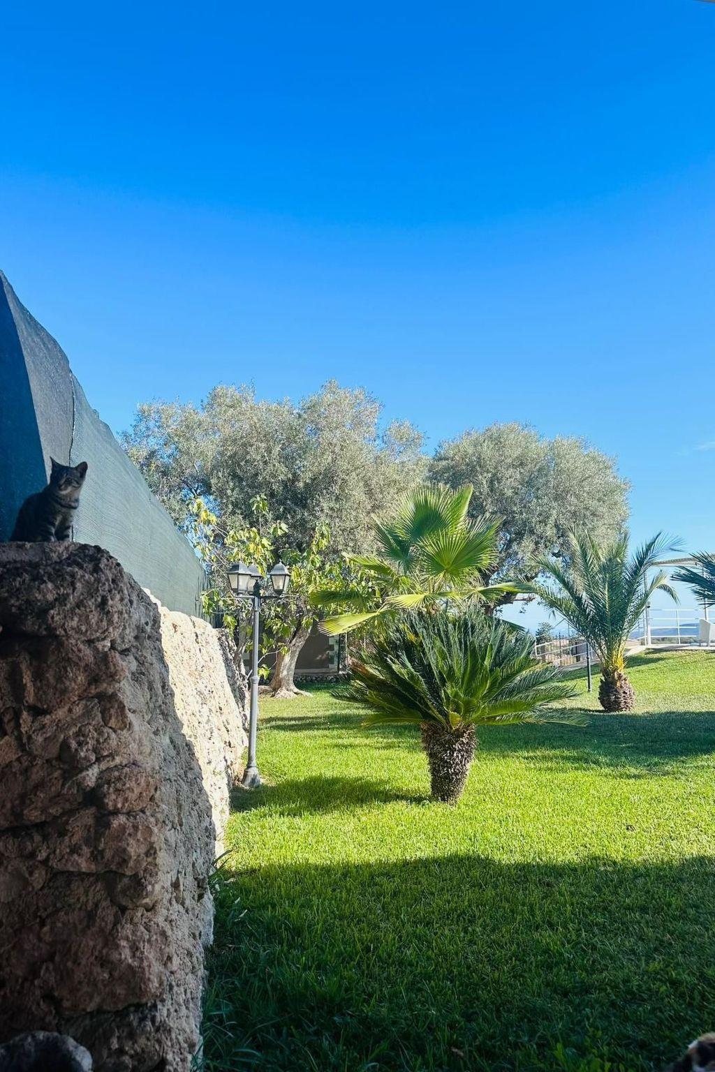 Die Villa ist ganz für den exklusiven Gebrauch und bietet viel Privatsphäre. Der Zugang erfolgt durch ein großes Tor, das Sie auf eine Auffahrt zum Parkplatz führt, wo wir einen Kreisverkehr finden, der von einem großen hundertjährigen Olivenbaum dominiert wird. Sofort bemerken wir die Haupteinheit und zur Seite den Swimmingpool und den Solariumbereich. Es gibt viel Grünfläche und etwa 6000 Quadratmeter Land, bestehend aus Rasen, Bäumen und Obstgärten. Die Haupteinheit ist ca. 80 qm groß und besteht aus einem Wohnzimmer mit Esstisch, Klimaanlage und 2 Sofas, von denen eines ein Schlafsofa ist, weiterhin haben wir eine ausgestattete Küche und dann ein Schlafzimmer mit Doppelbett. Auf der Außenseite gibt es eine Veranda, die von außen oder durch das Wohnzimmer erreicht werden kann.