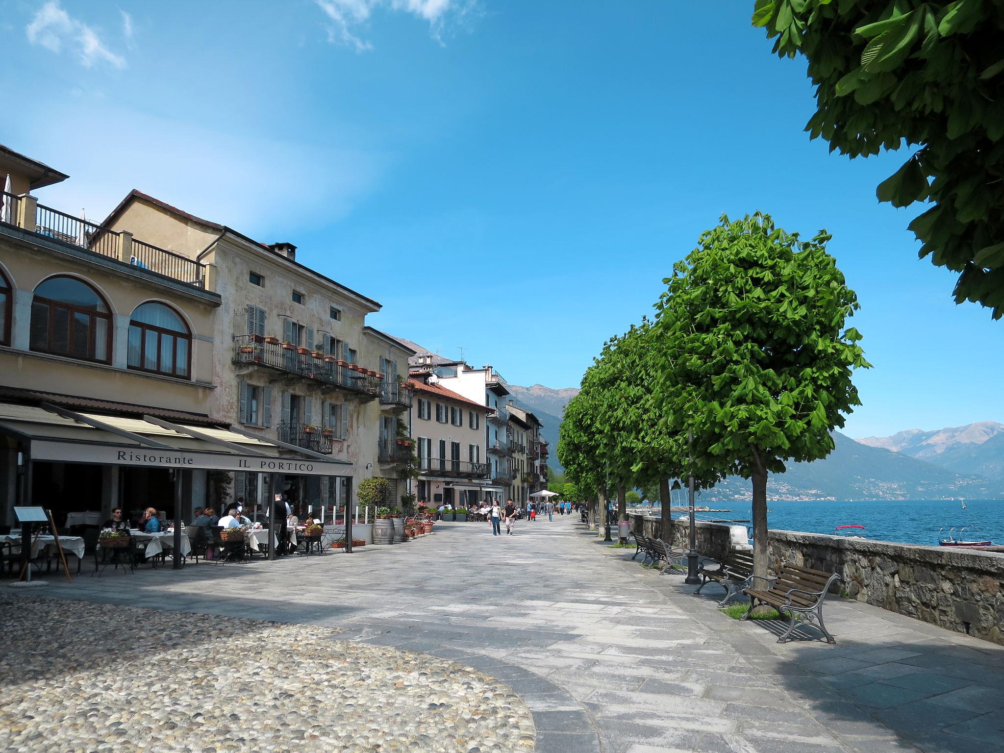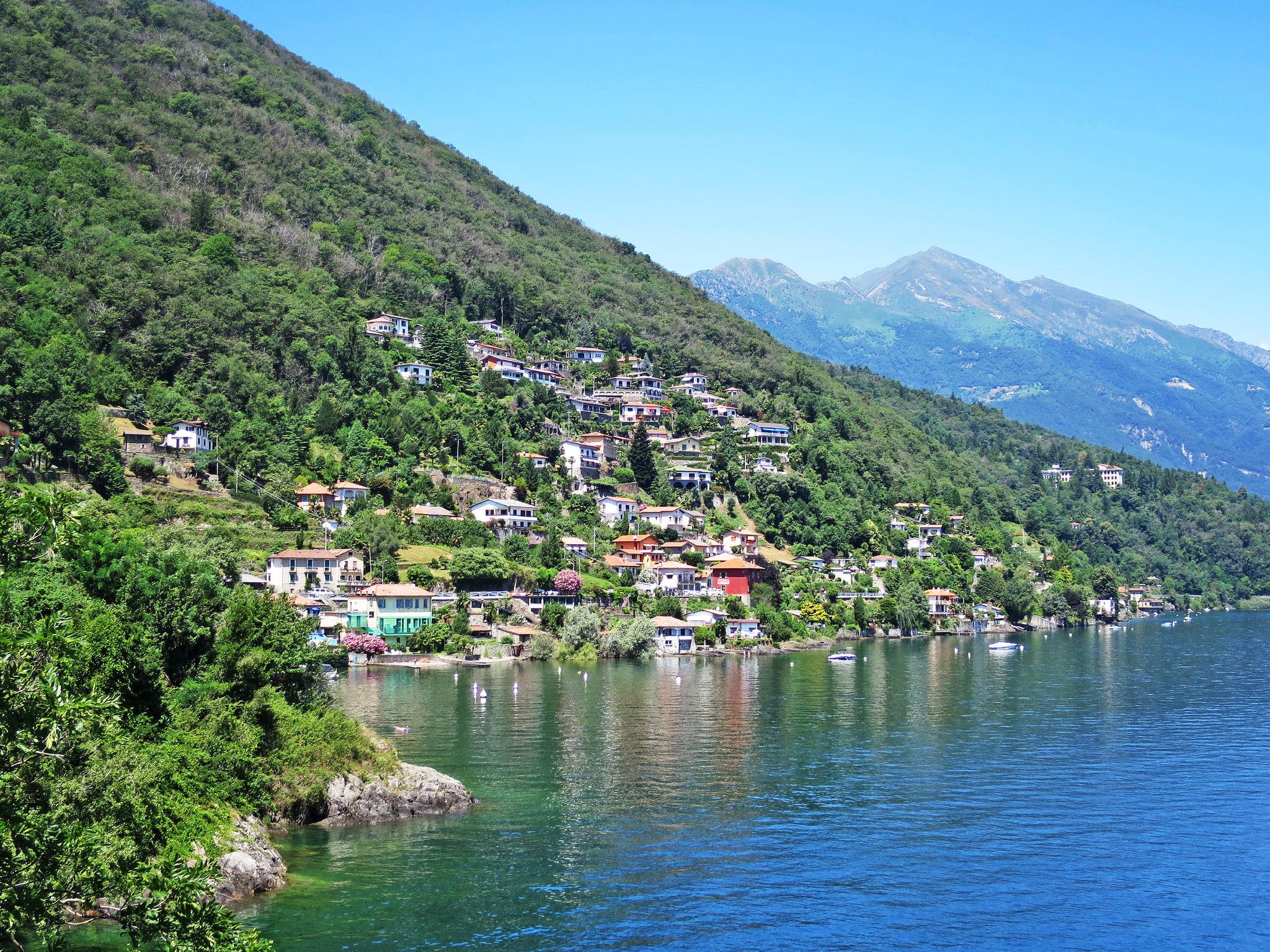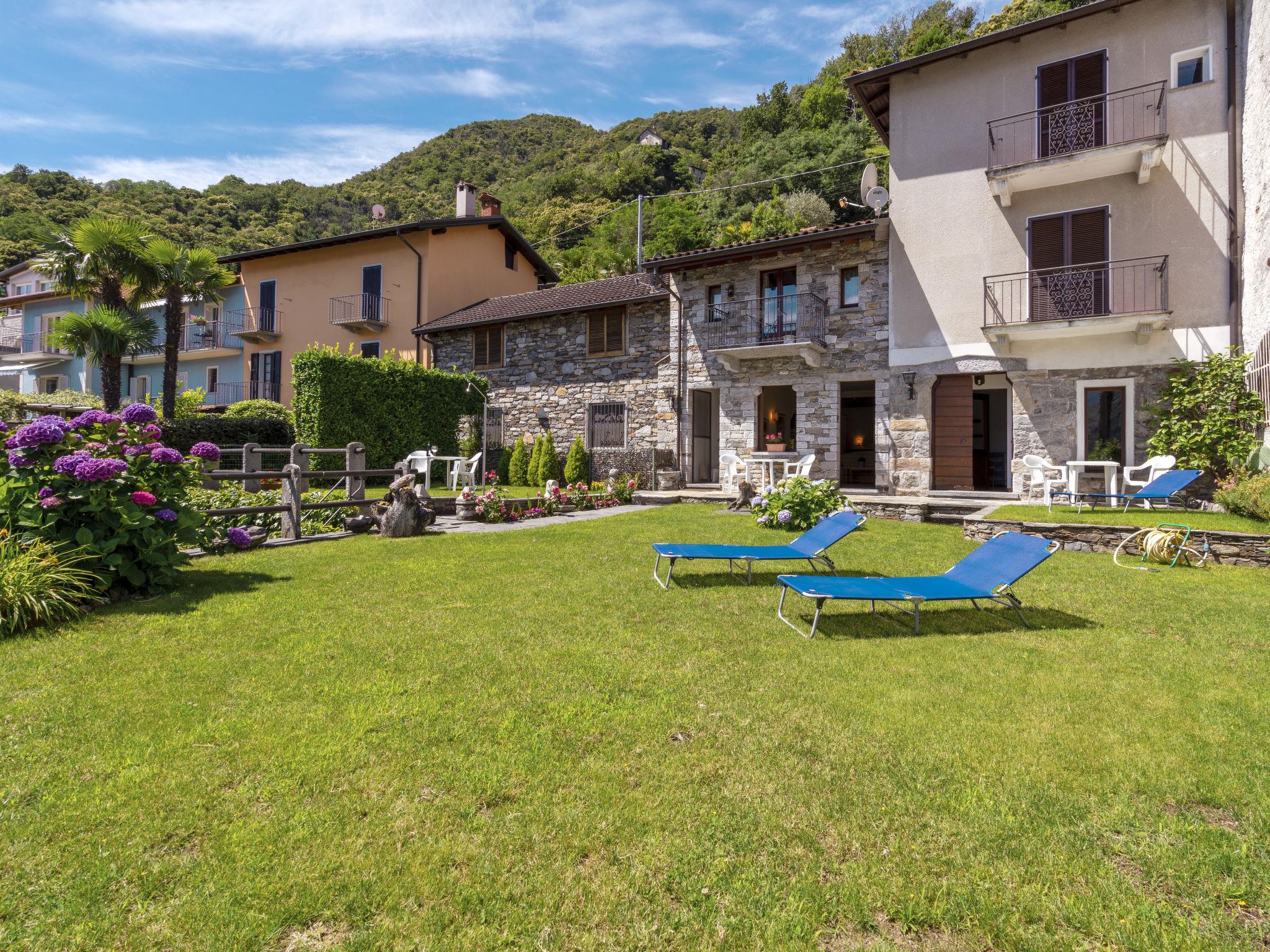 Mehrfamilienhaus "al Lago". Im Weiler Carmine Inferiore, 3 km vom Zentrum von Cannobio, 4 km vom Zentrum von Cannero Riviera, 10 m vom See. Zur Mitbenutzung: Grundstück, terrassierter Garten Rasen. Aussendusche, Terrasse. 100 m Treppenweg bis zum Haus. Öffentliche Parkplätze 100 m. Bushaltestelle 100 m, Kieselstrand 30 m. Bitte beachten: Be- und Entladen am Ferienhaus möglich. Hauptstrasse 10 m vom Haus.