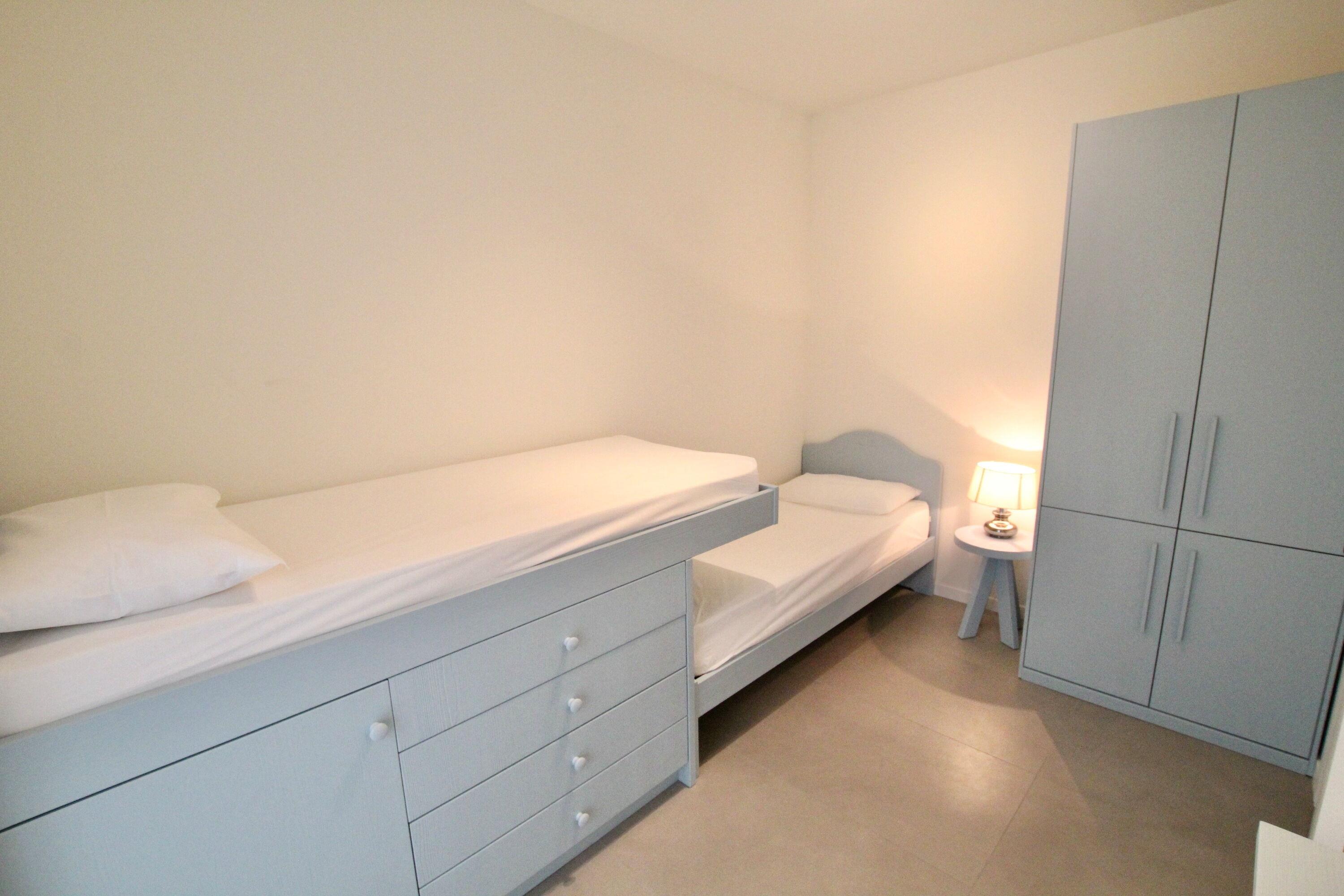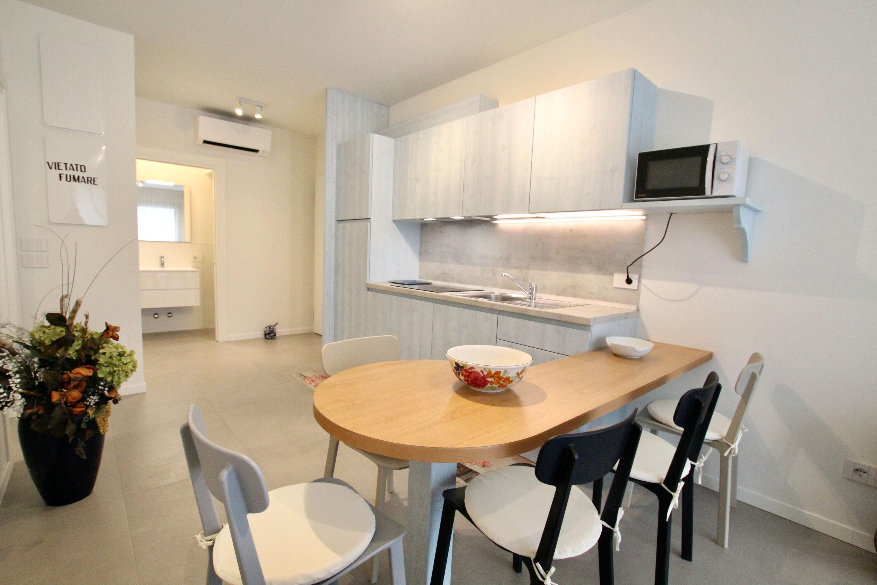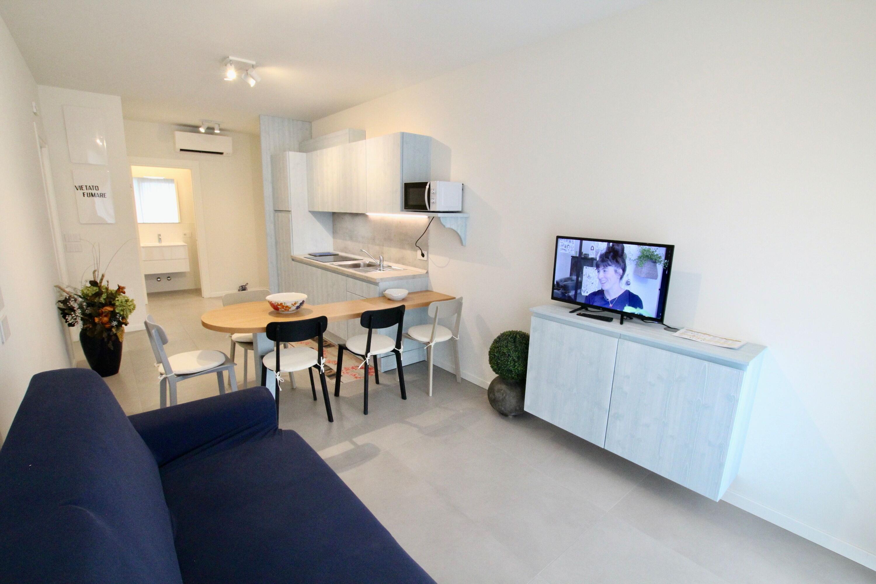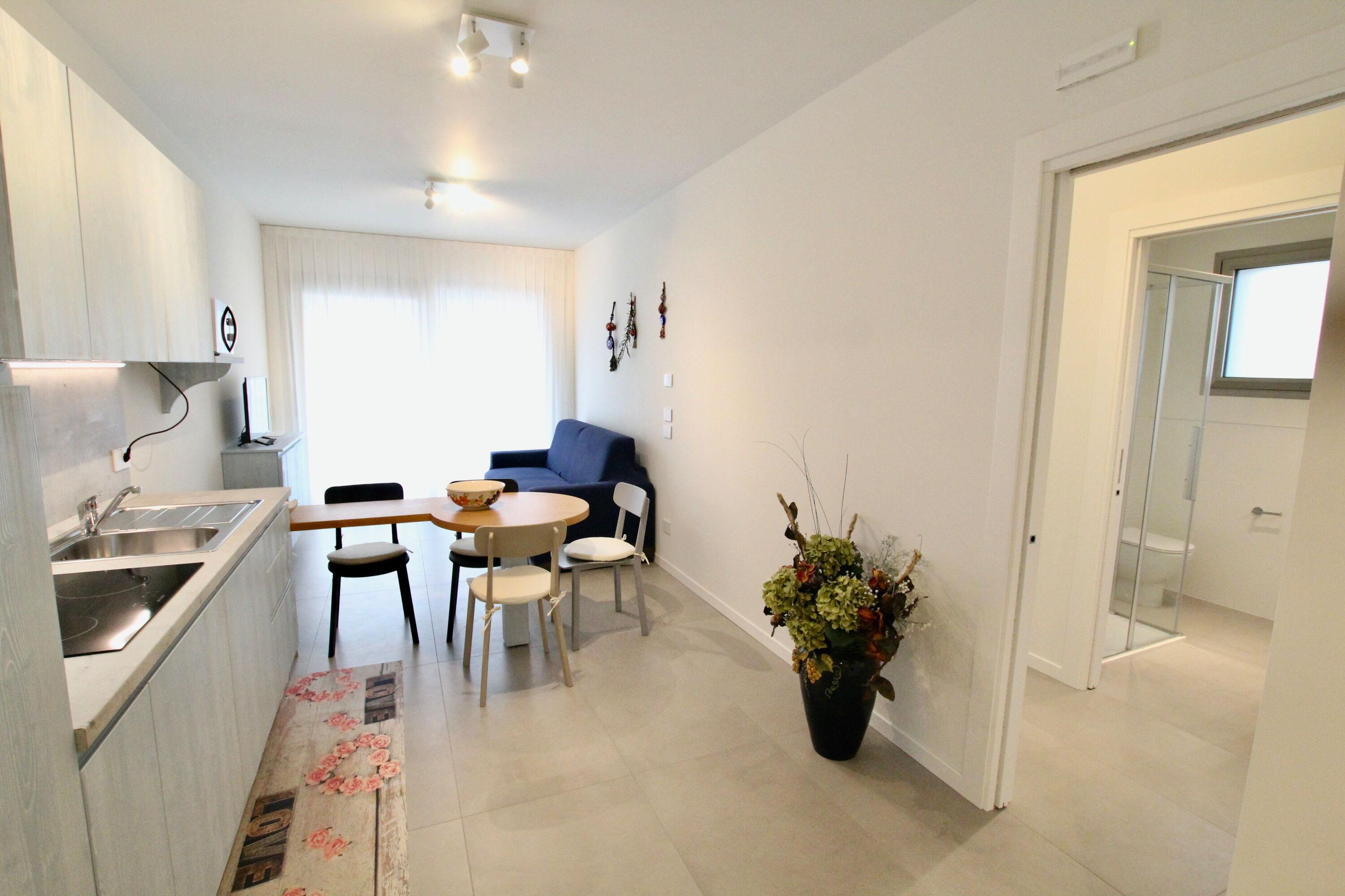 Die neue Ferienwohnung liegt in unmittelbarer Nähe zur Altstadt von Caorle und ist nur 300 Meter vom Meer entfernt. Sie befindet sich im zweiten Stock eines Gebäudes und ist bequem über einen Aufzug erreichbar. Die Wohnung besteht aus einem Wohnbereich mit einer Kochnische sowie einem Doppelschlafsofa, einem Schlafzimmer mit Doppelbett, einem weiteren Schlafzimmer mit zwei Einzelbetten, einem Hauptbadezimmer, einem Gäste-WC und zwei Balkone.