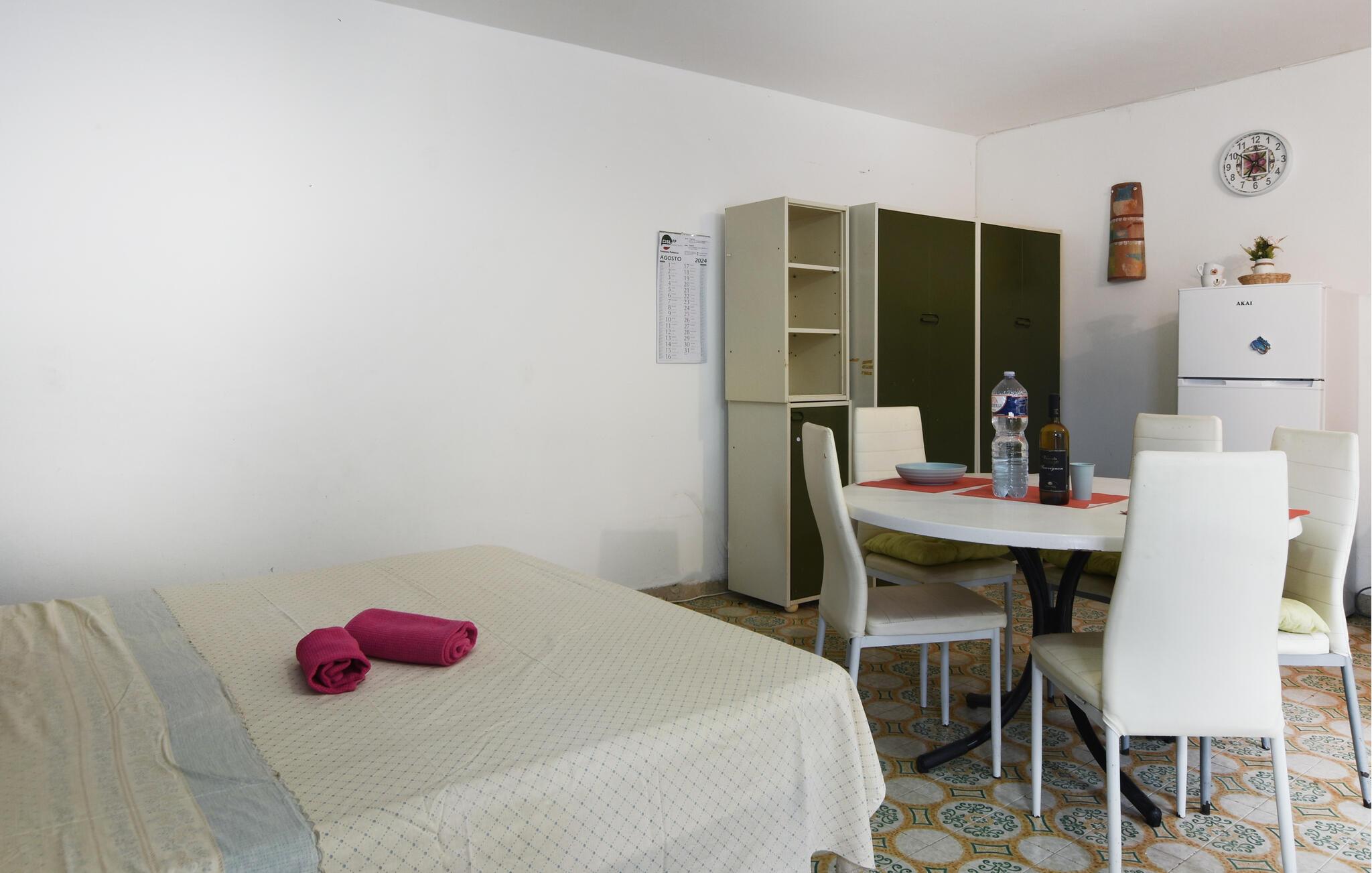 Diese helle Ferienwohnung überzeugt mit einem praktisch gestalteten Innenbereich im liebevoll eingerichteten Retro-Stil. Planen Sie von hier aus Ihre Ausflüge und entspannen Sie sich nach einem langen Strandtag oder einem erlebnisreichen Kulturtrip. Bereiten Sie Ihre Mahlzeiten oder den Proviant für die nächste Entdeckungstour in der offenen Küche zu und genießen Sie erholsame Siestas in Ihren eigenen vier Wänden.