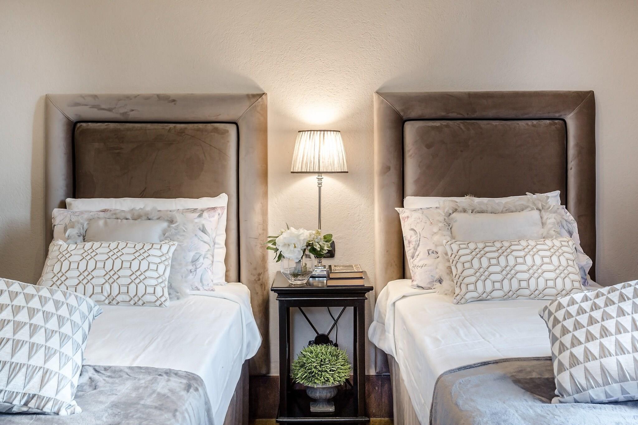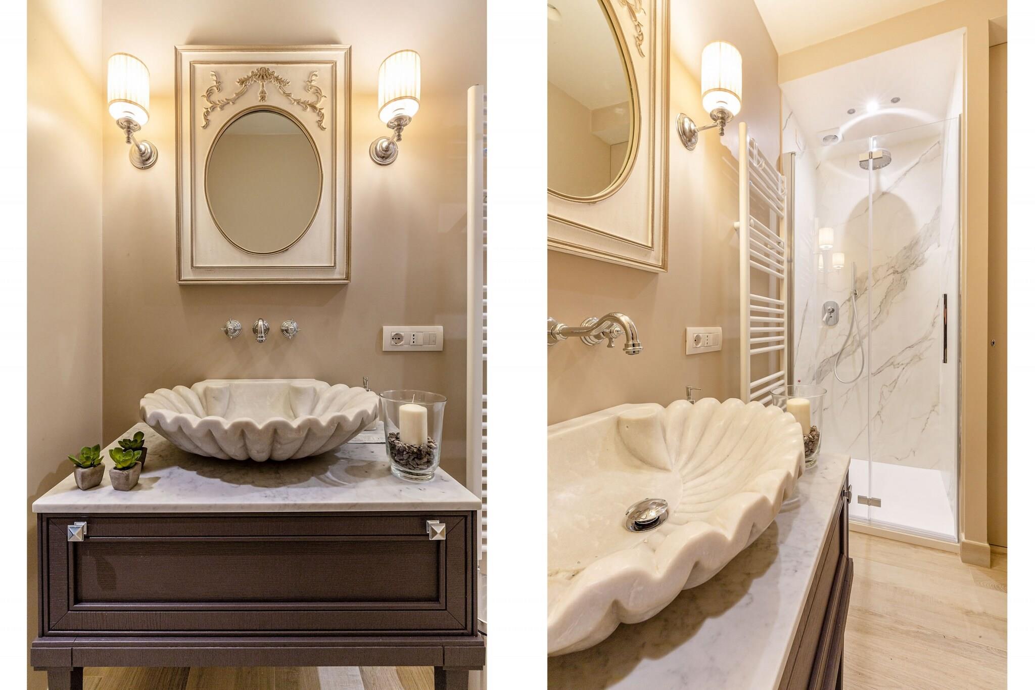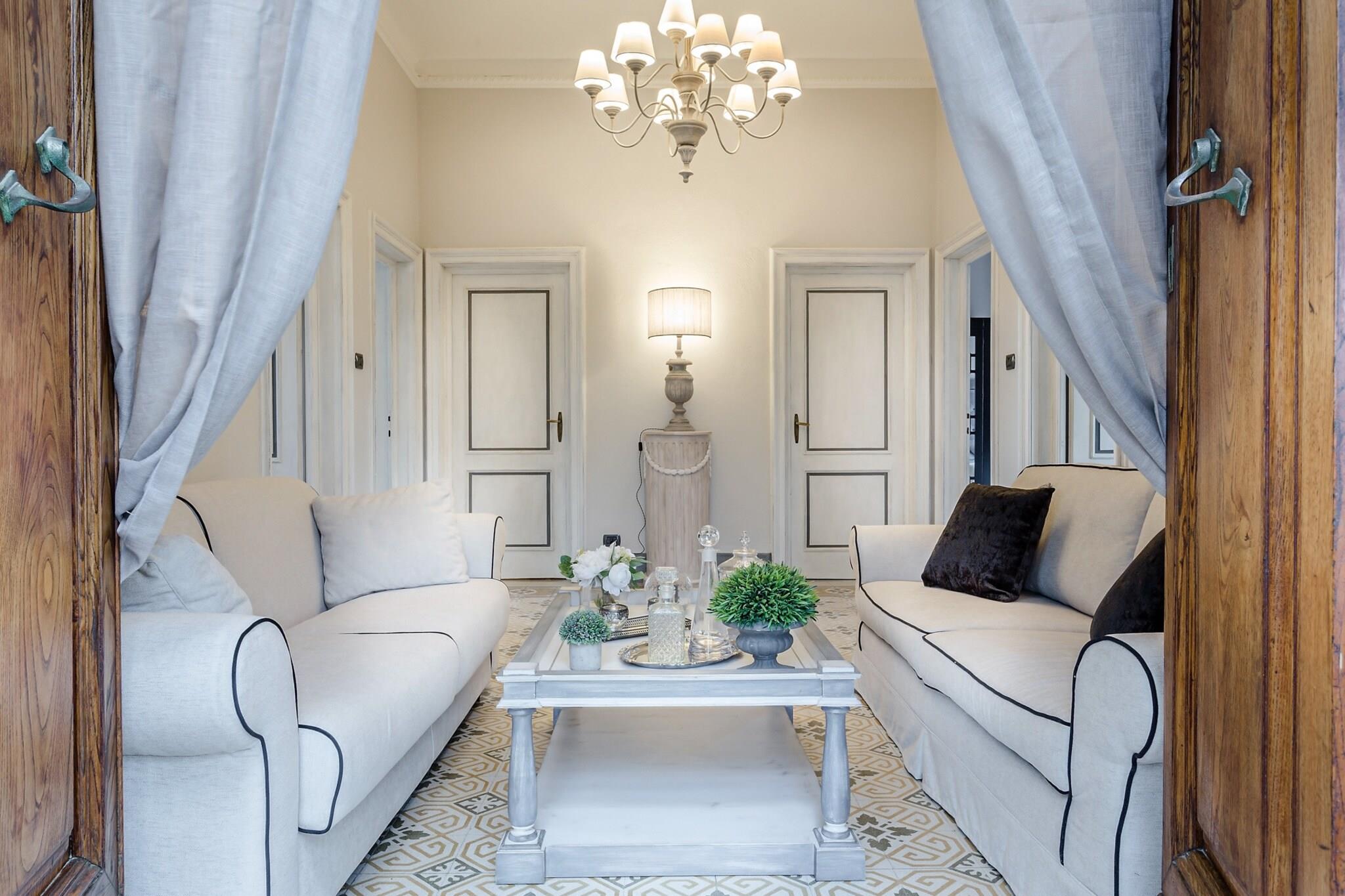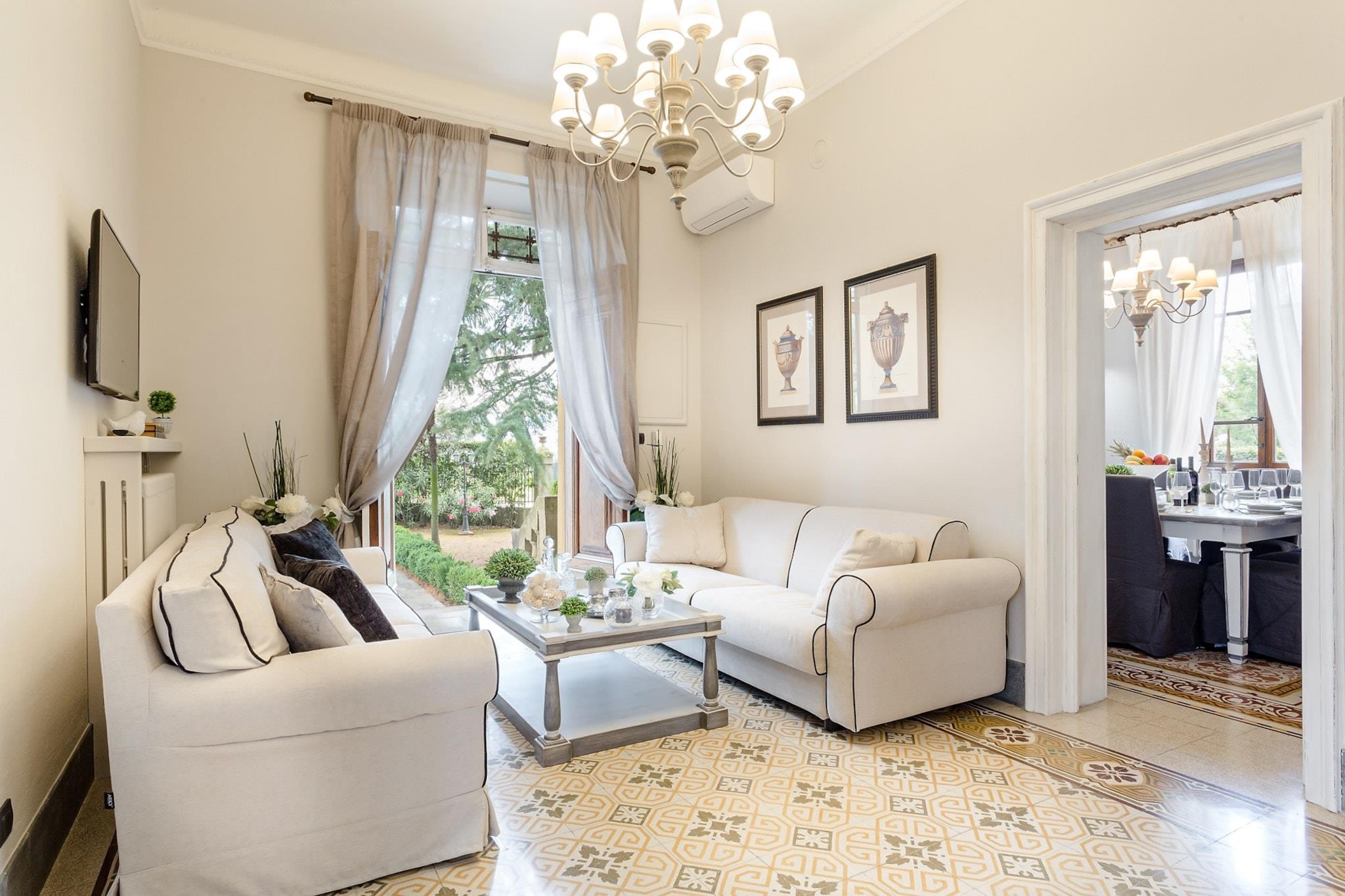 Topfpflanzen und Zypressen hüllen dieses umgebaute Herrenhaus aus dem 18. Jahrhundert in die malerische toskanische Landschaft. Üppige Gärten umgeben einen glitzernden Pool dieses restaurierten Bauernhauses nahe Lucca, einem Dorf, das für sein Kamelienfest und sein handwerklich hergestelltes natives Olivenöl extra bekannt ist. Das Haus bewahrt seinen ursprünglichen Charme mit Balkendecken, Ziegelböden und Torbögen, während eine Loggia mit Essbereich einen atemberaubenden Blick vom Hügel bietet. Gäste können regionale Produkte in einer hellen Küche genießen, im steinernen Poolhaus – einem ehemaligen Pferdestall – entspannen oder Freizeitaktivitäten wie Reiten, Tennis und Golf in unmittelbarer Nähe nachgehen. Im Inneren besticht das offene Raumkonzept durch graue Stoffe und Kristallleuchter, die große Fenster einrahmen und den Blick auf die sanften Hügel freigeben. Das geschäftige Stadtzentrum von Lucca verströmt den Charme eines Landsitzes und ist nur 12 Kilometer entfernt. Entspannen Sie am Salzwasserpool, lauschen Sie dem Vogelgezwitscher auf einer Sonnenliege oder ziehen Sie sich in den schattigen Wohnbereich im Freien zurück. Genießen Sie kostenloses frisches Obst und eine Flasche Wein am Esstisch im Freien für zehn Personen – ideal für gesellige Runden und mit einem Grillabend bei Sonnenuntergang. Steinmauern und ein Ziegeldach vermitteln den Charme einer historischen Villa, während das Interieur mit stilvollen Farben, Texturen und Kunstwerken glänzt. Das Erdgeschoss umfasst drei Doppelzimmer, drei Badezimmer mit integrierten Duschen und ein gemütliches Wohnzimmer mit Fernseher und französischen Fenstern mit Blick auf den Garten. Das Erdgeschoss verfügt über eine voll ausgestattete Küche, ein geräumiges Esszimmer für zwölf Gäste, ein weiteres Wohnzimmer mit Fernseher sowie zwei weitere Schlafzimmer – eines mit zwei Einzelbetten – und ein Badezimmer. Jedes Zimmer ist klimatisiert und bietet zuverlässiges WLAN, Sat-TV und einen privaten Parkplatz. Dank der Lage sind Restaurants und Geschäfte in der Nähe bequem zu erreichen. Hinweis: Kurtaxe ist vor Ort zu entrichten.
