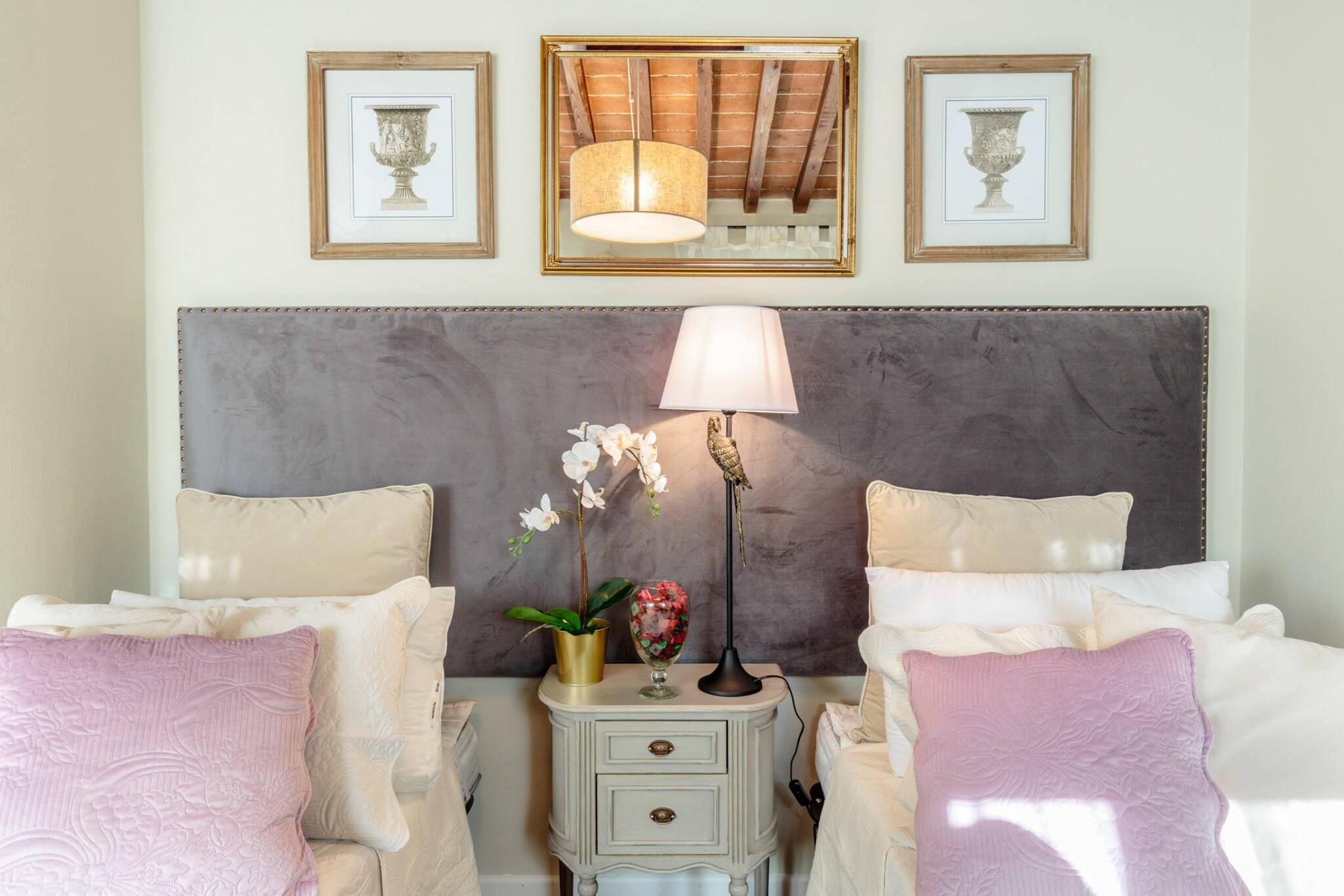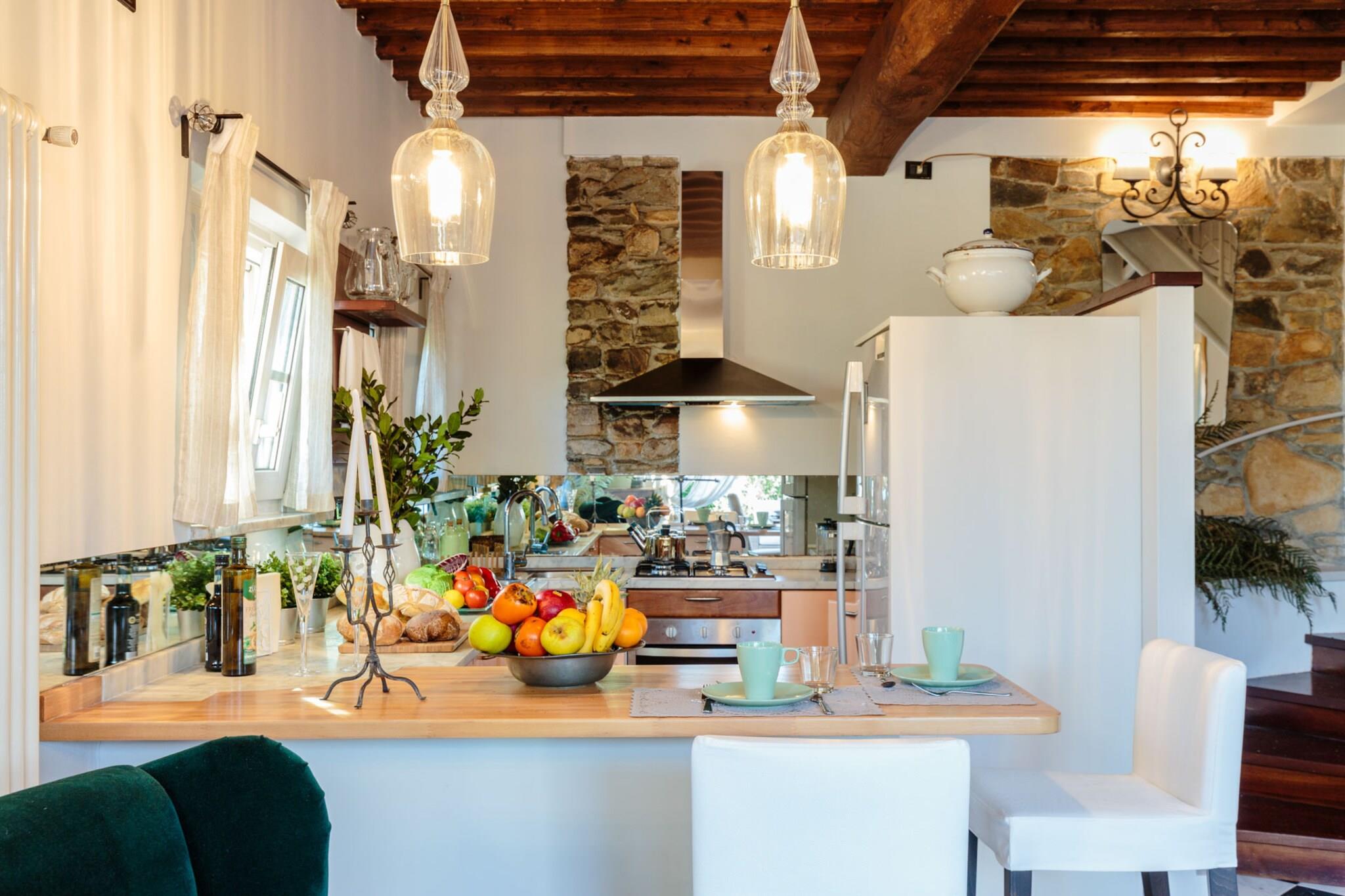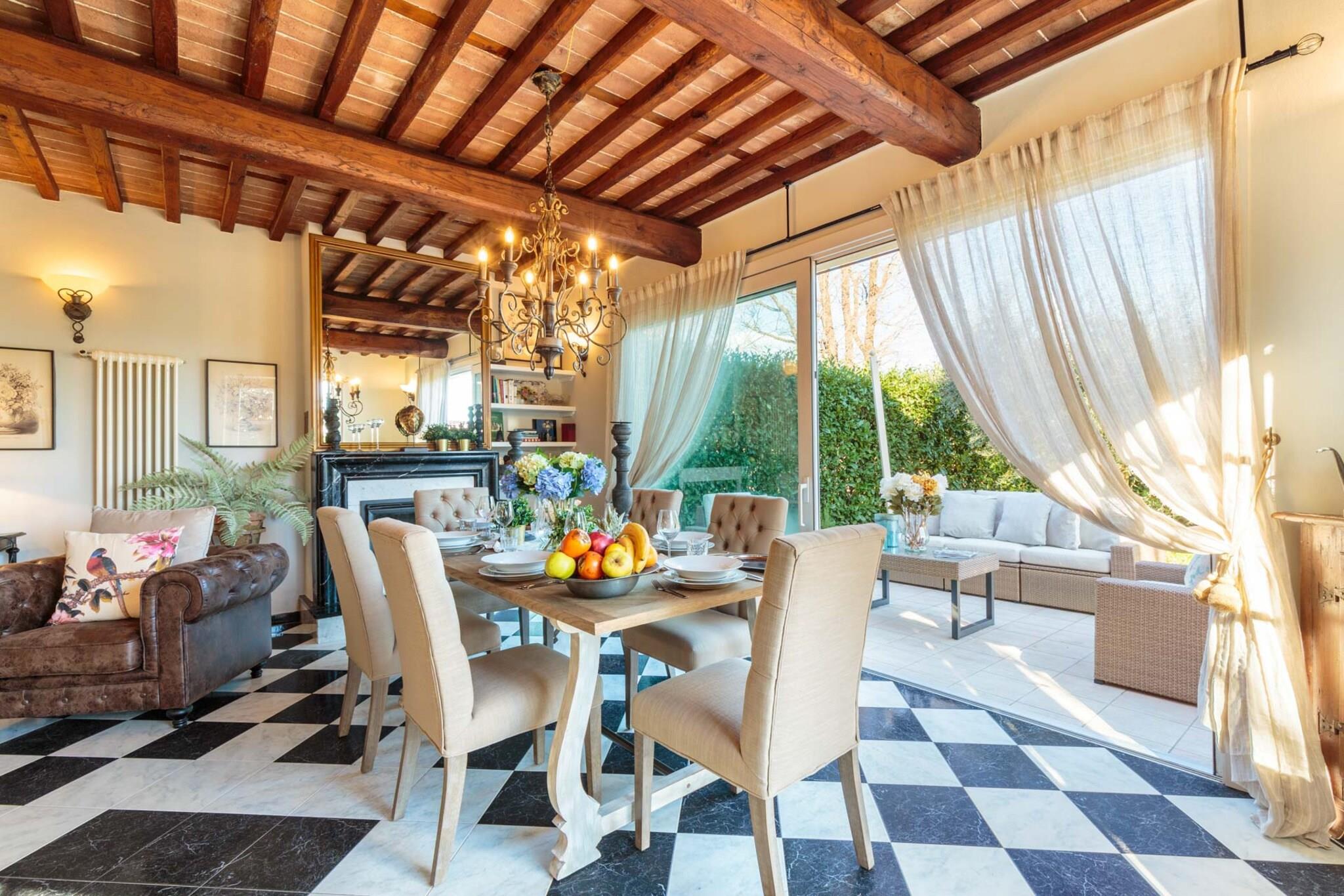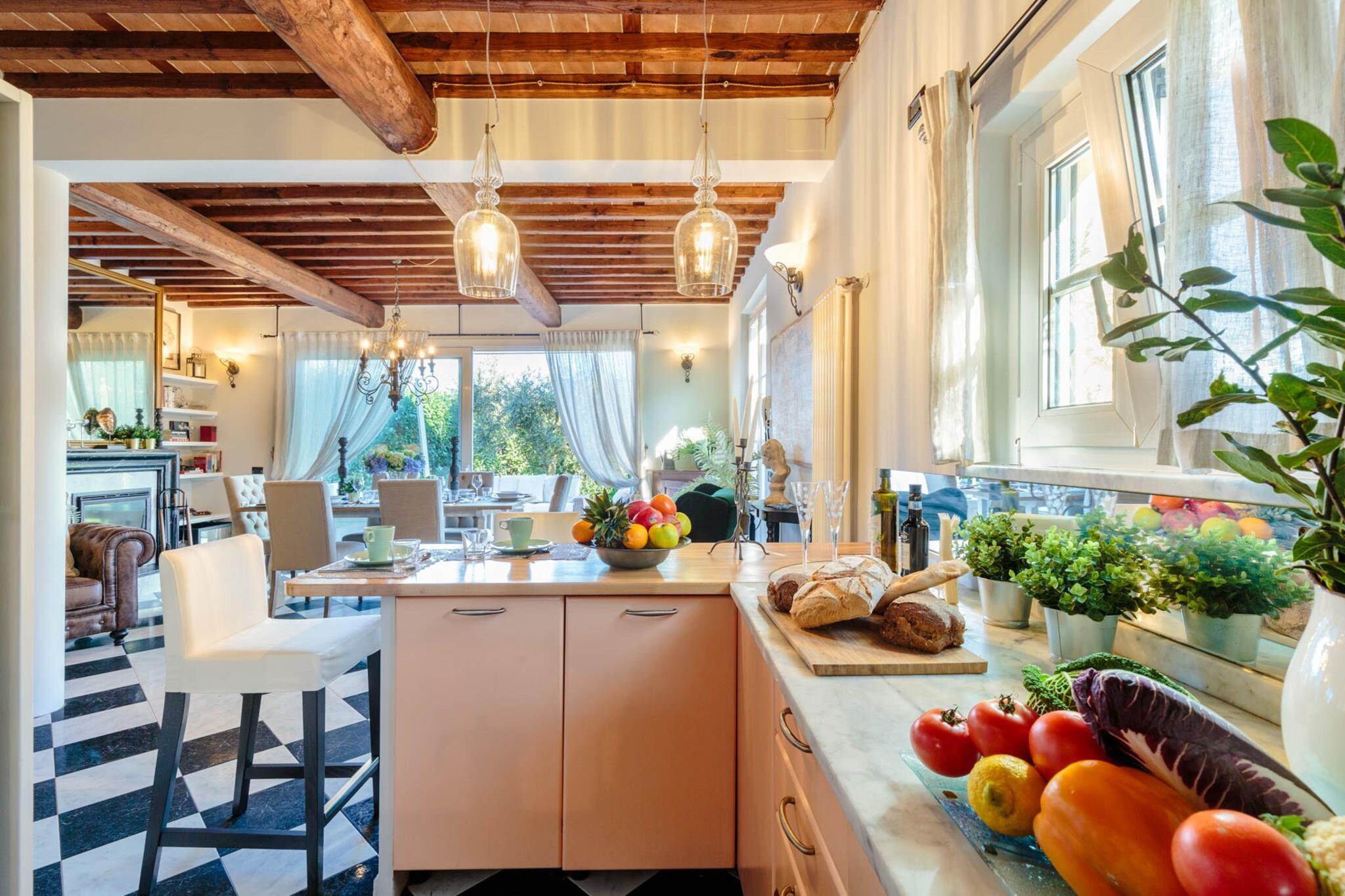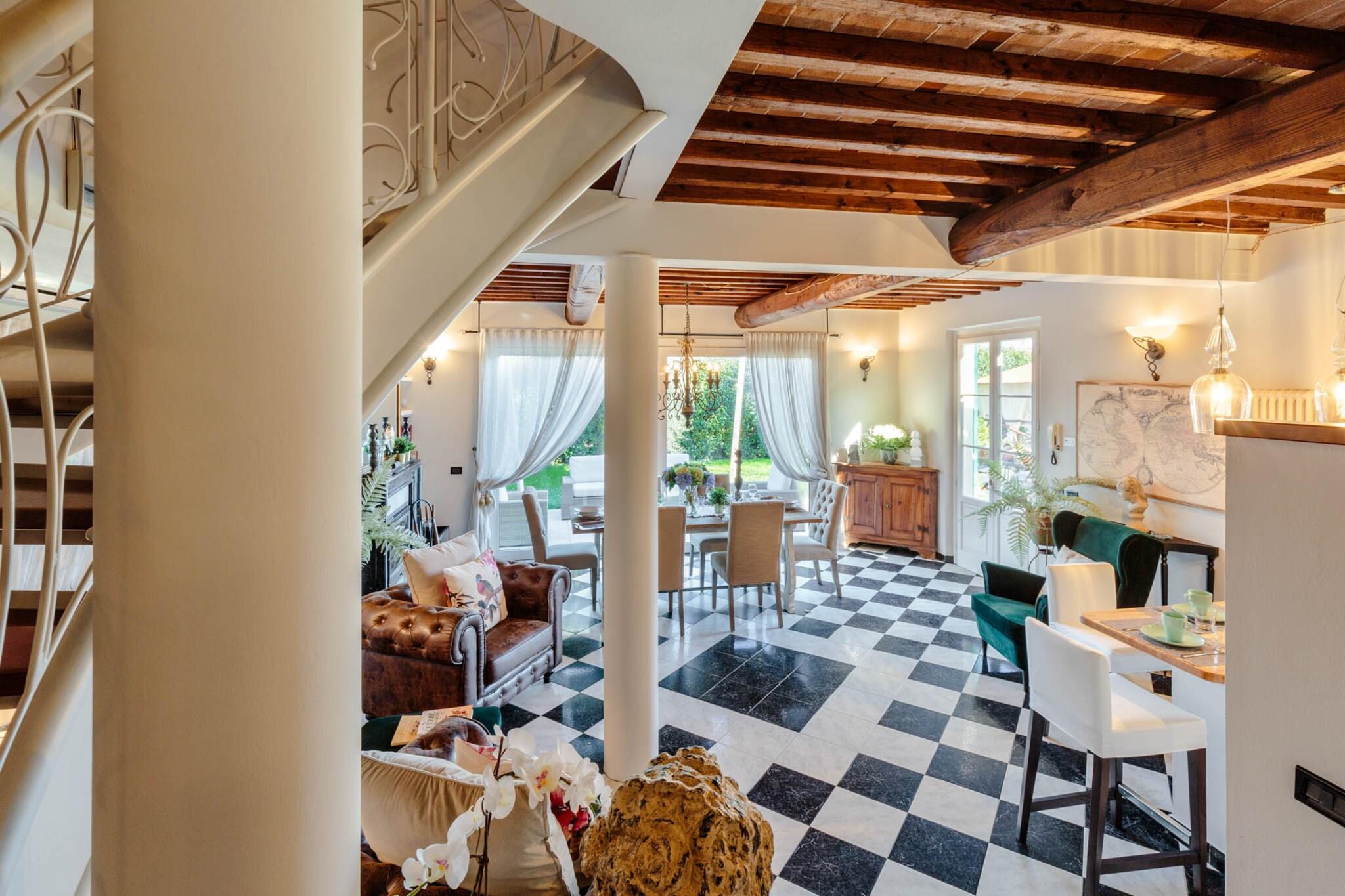Entdecken Sie ein luxuriöses Bauernhaus in den malerischen Hügeln von San Leonardo in Treponzio bei Lucca – ein traumhaftes Refugium, das klassische Eleganz mit modernem Komfort verbindet. Die sorgfältig renovierten Innenräume schaffen eine helle Atmosphäre mit traditionellem italienischem Dekor, das bereits auf die atemberaubende Aussicht hinweist. Beim Betreten des Hauses werden Sie sich wie in einem charmanten Schloss fühlen. Die modernen Außenbereiche bestechen durch exquisite handgefertigte Terrakotta-Vasen, einen wohltuenden Whirlpool und einen privaten Pool mit bequemen Liegen. Weiße Kissen und Sonnenschirme laden zum Entspannen ein. Genießen Sie ein Essen im Freien auf den schönen Terrassen mit Freunden und Familie und genießen Sie lokale Spezialitäten bei einem guten Glas Wein unter der warmen toskanischen Sonne. Das Obergeschoss bietet Platz für bis zu sechs Gäste und verfügt über drei individuell eingerichtete Schlafzimmer, die alle für absolute Ruhe und Komfort sorgen. Hier finden Sie Ruhe, umgeben von edler Bettwäsche und geschmackvollen Akzenten. Die Lage ist ein absolutes Highlight. Nur 10 Autominuten von der pulsierenden Stadtmauer Luccas entfernt, erreichen Sie bequem die Schätze der Toskana, darunter Florenz, Pisa, San Gimignano und die atemberaubende Cinque Terre. Das reichhaltige kulturelle und kulinarische Angebot der Region wartet nur darauf, erkundet zu werden. Die nahegelegenen Olivenhaine und charmanten Bergdörfer laden zu Abenteuern ein. Für alle, die gerne im Freien aktiv sind, schlängeln sich malerische Wanderwege durch die umliegenden Olivenhaine und Weinberge. Dieser idyllische Rückzugsort fängt die Essenz der Toskana ein und ermöglicht es Ihnen, in die Geschichte der Region einzutauchen und gleichzeitig die Schönheit der Natur zu genießen. Da die Endreinigung im Aufenthalt inbegriffen ist, können Sie sich ganz darauf konzentrieren, zu entspannen und jeden Moment in dieser bezaubernden Oase zu genießen. Hinweis: Kurtaxe ist vor Ort zu entrichten.