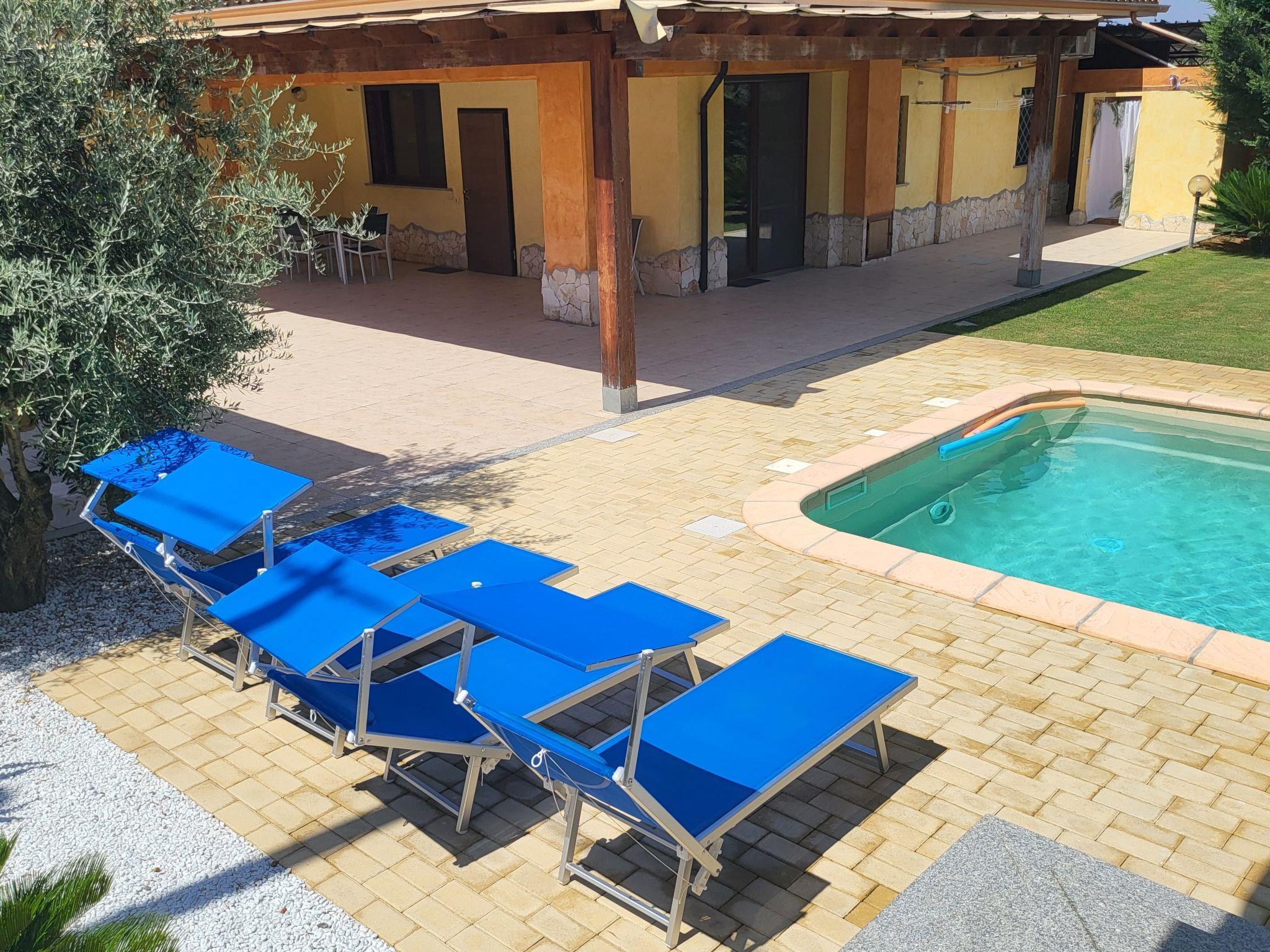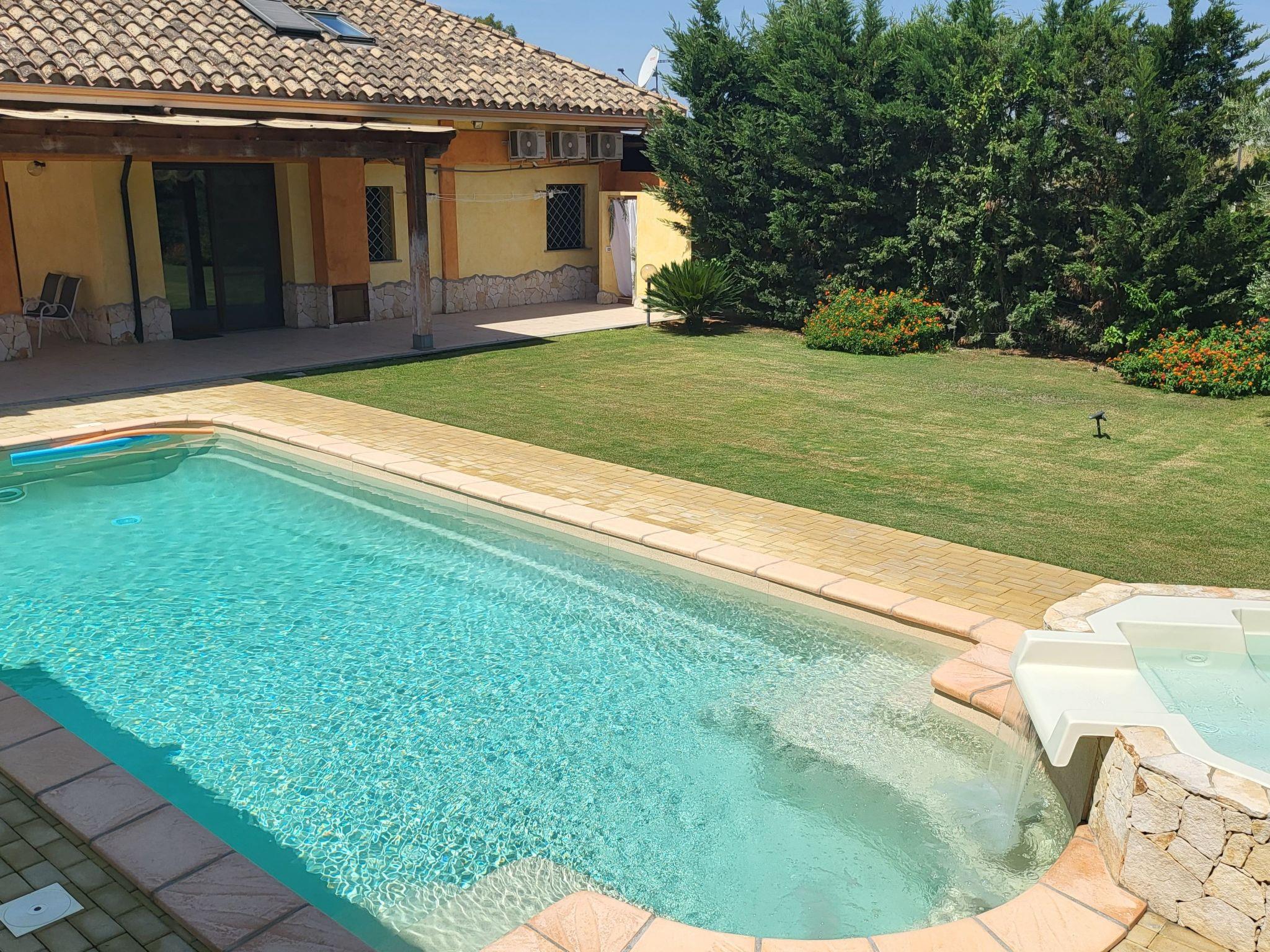 Exklusive Villa, ideal für angenehme Momente in der Gesellschaft von Freunden und Familie, genießen Sie den Komfort und maximale Privatsphäre nur 5 Minuten vom Meer entfernt. Ausgestattet mit 3 Schlafzimmern (2 Doppelzimmer und eines mit 2 Kinderbetten), 2 Bädern, Wohnzimmer mit Küche, Veranda, Holzpavillon, privatem Garten mit Rasenfläche, Sonnenterrasse, Schwimmbad, Jacuzzi, internem Parkplatz. Annehmlichkeiten: - Klimaanlage in allen Zimmern - Privater Außenbereich mit Tischen und Stühlen - Parkplatz - Internetzugang - Haushaltswäsche - Waschmaschine - Bügelbrett und Bügeleisen - Haartrockner - Grill - Automatisches Tor - TV - Mikrowelle - Geschirrspüler - Kühlschrank mit Gefrierfach - Toaster - Backofen - 5-Flammen-Herd - Sonnenliegen im Freien, Außendusche und Schwimmbad. Ausstattung: Bettwäsche - Haushaltswäsche - Handtücher - Geschirrspüler - Waschmaschine - Wifi - TV - Klimaanlage - Backofen - Grill im Freien, etc.