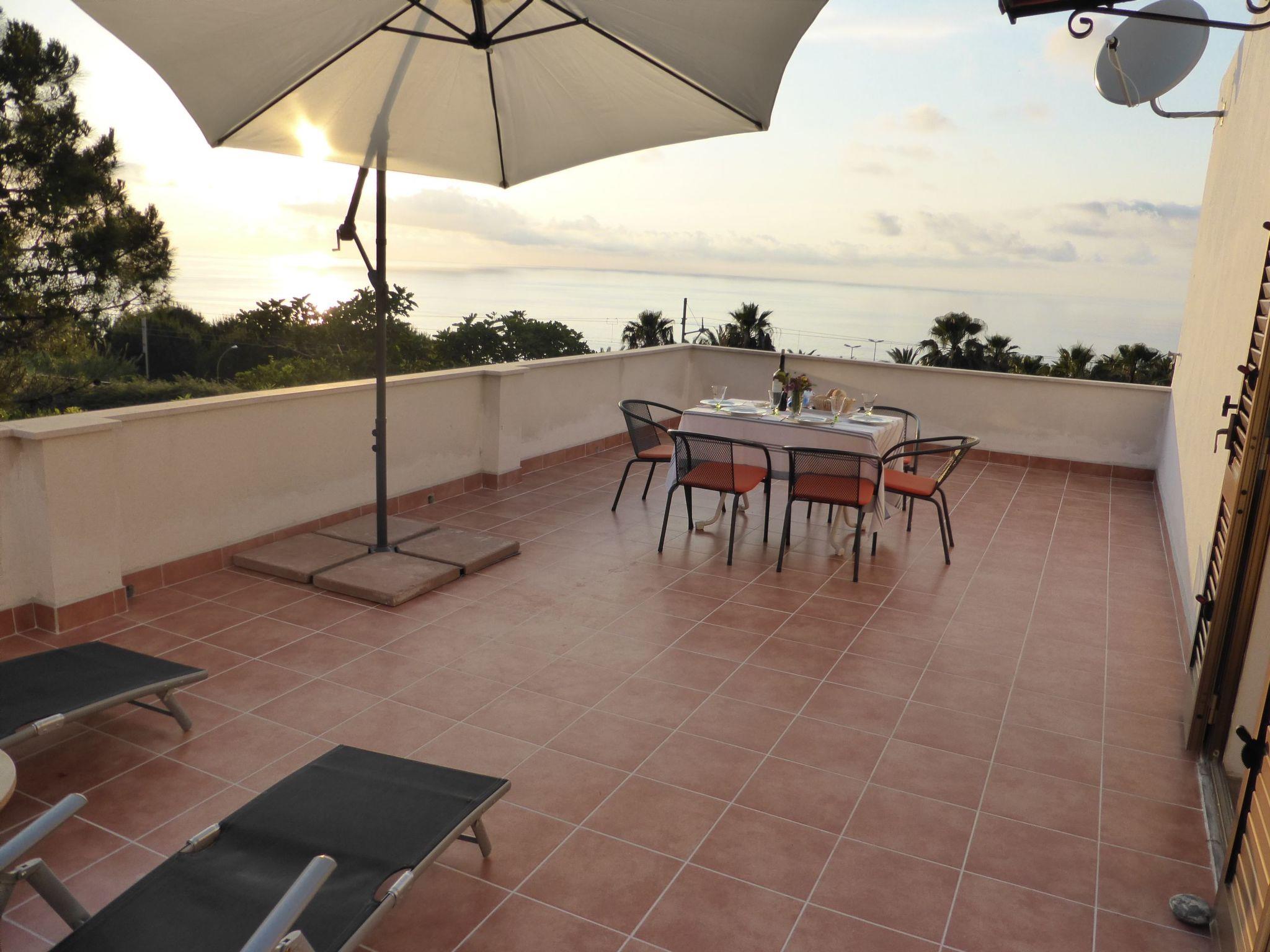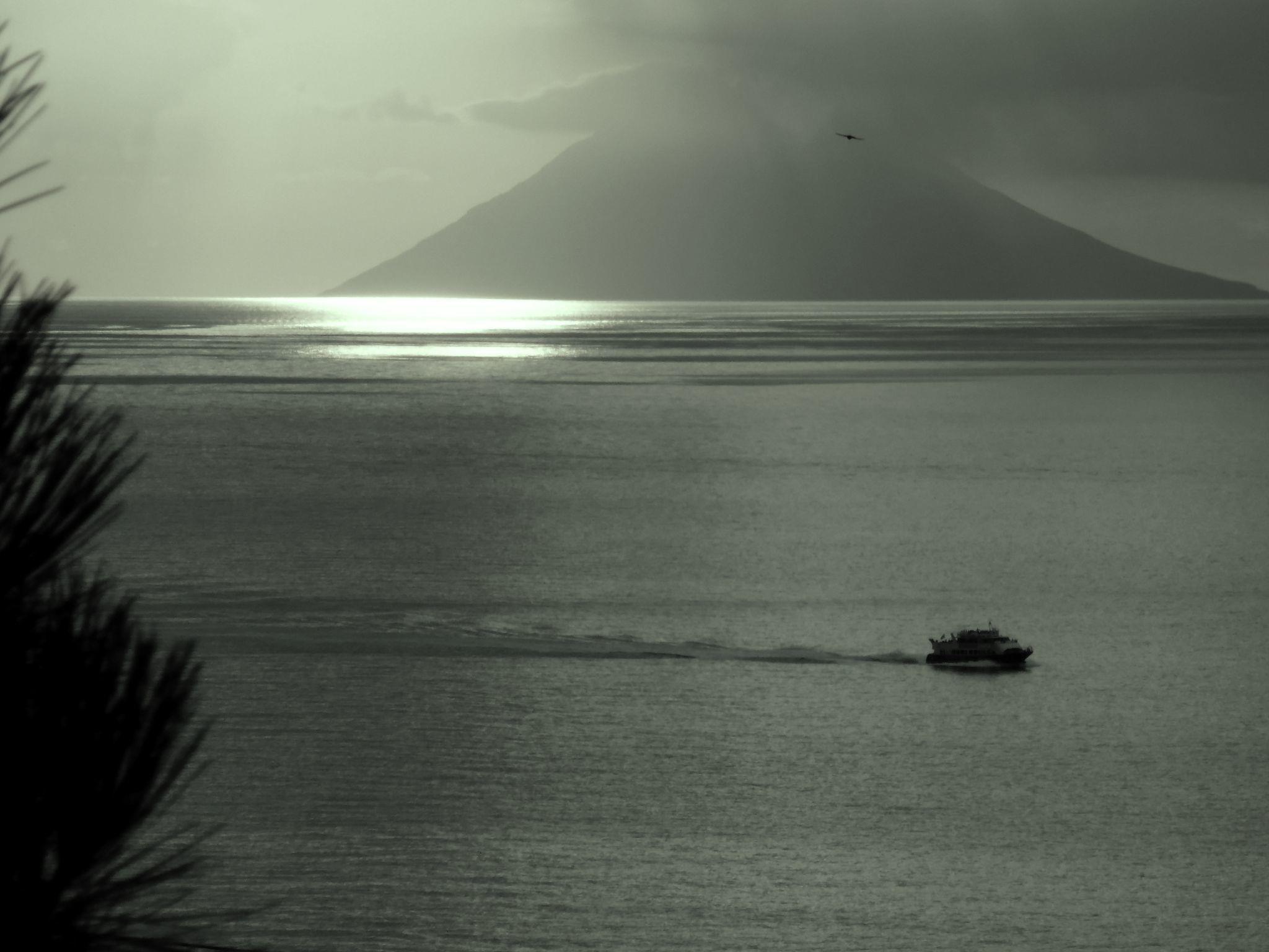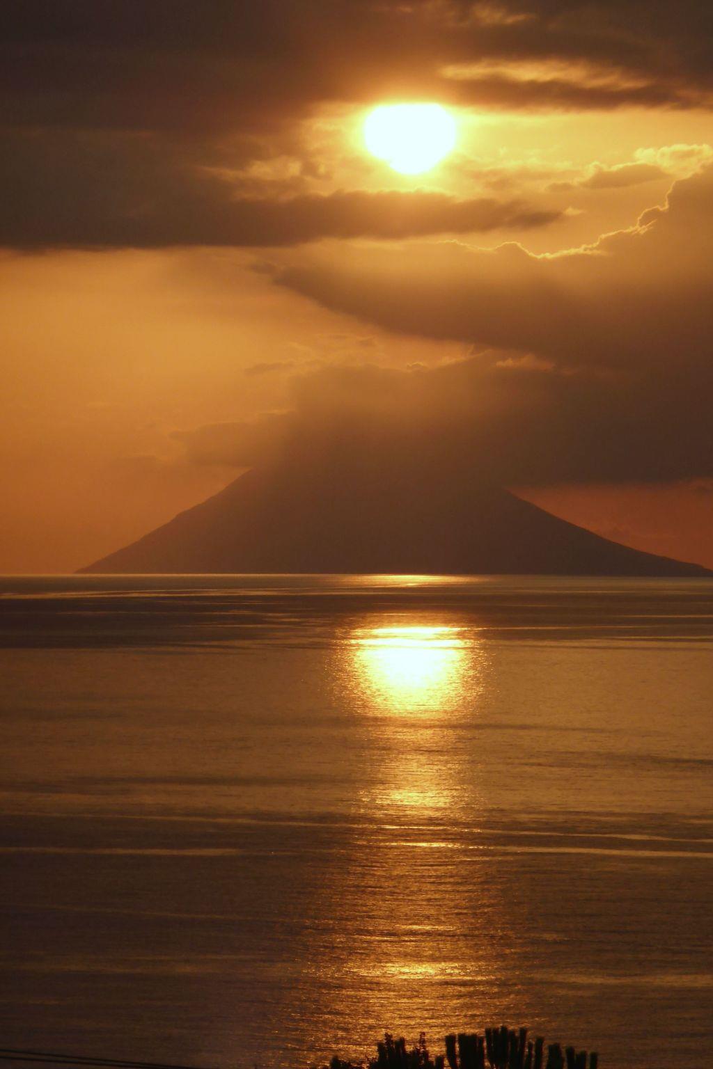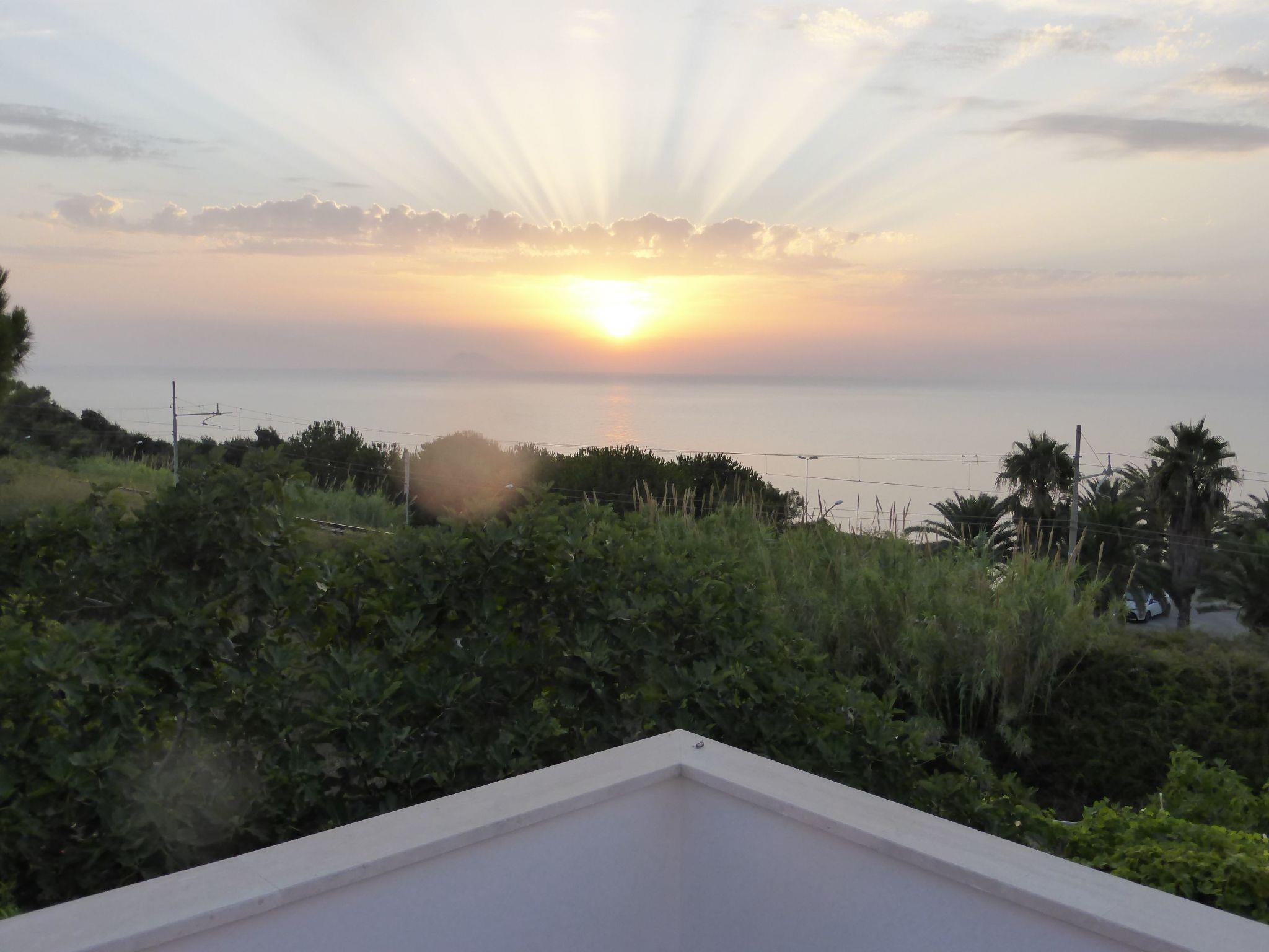 Im ersten Stock zwei Schlafzimmer, das Bad sowie die riesengroße Terrasse - natürlich mit Blick auf Meer und Stromboli!