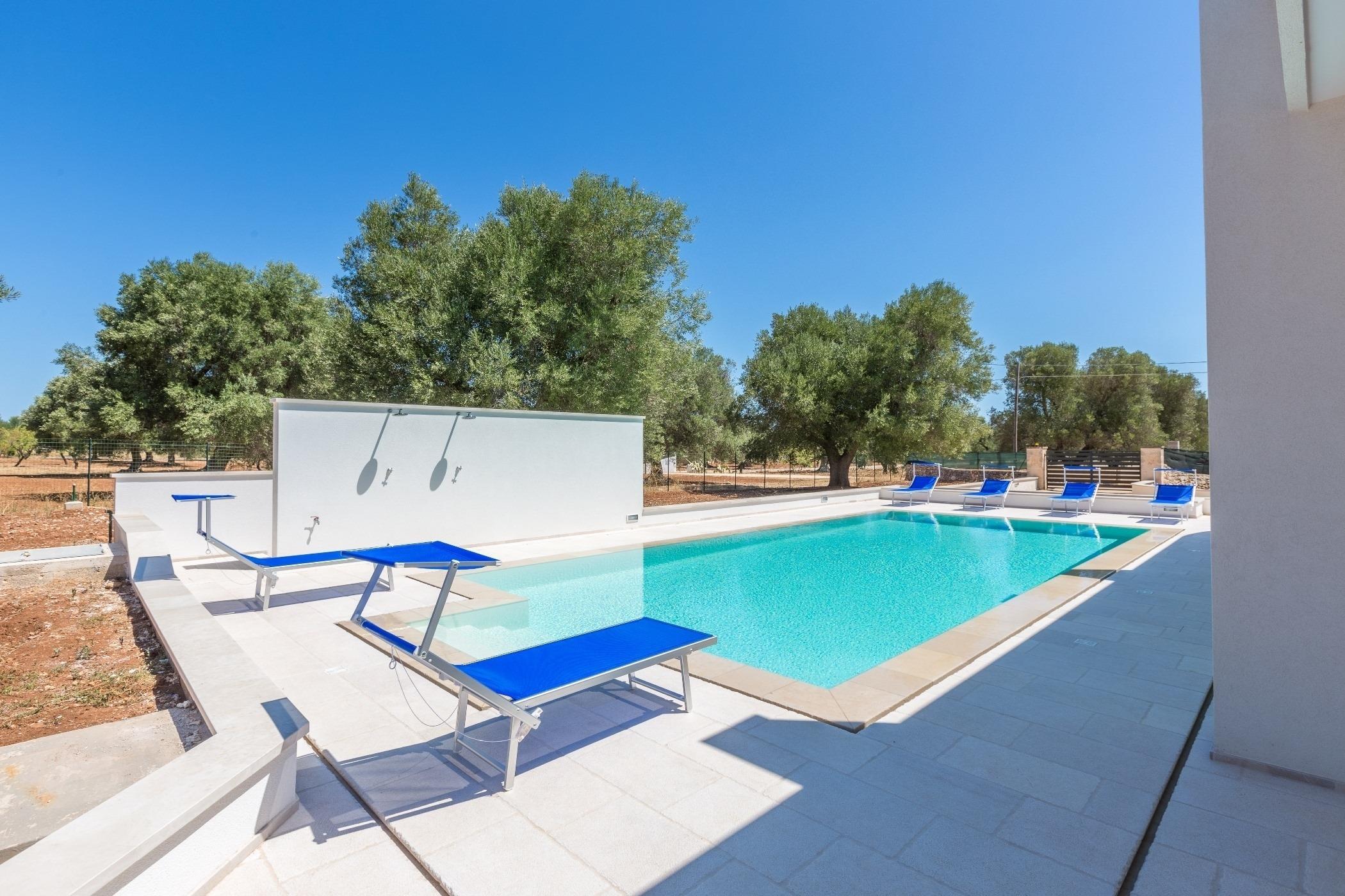 Mieten Sie eine Villa mit privatem Pool in Apulien in Serranova, 4000 m von der mit der Blauen Flagge ausgezeichneten Oase Torre Guaceto und 20 km vom Flughafen Brindisi entfernt. Genießen Sie 3 Schlafzimmer, 2 Bäder, bis zu 6 Betten. Ostuni, die weiße Stadt 15 km entfernt. 5 km vom historischen Zentrum und der Burg Dentice von Frasso di San Vito dei Normanni entfernt.