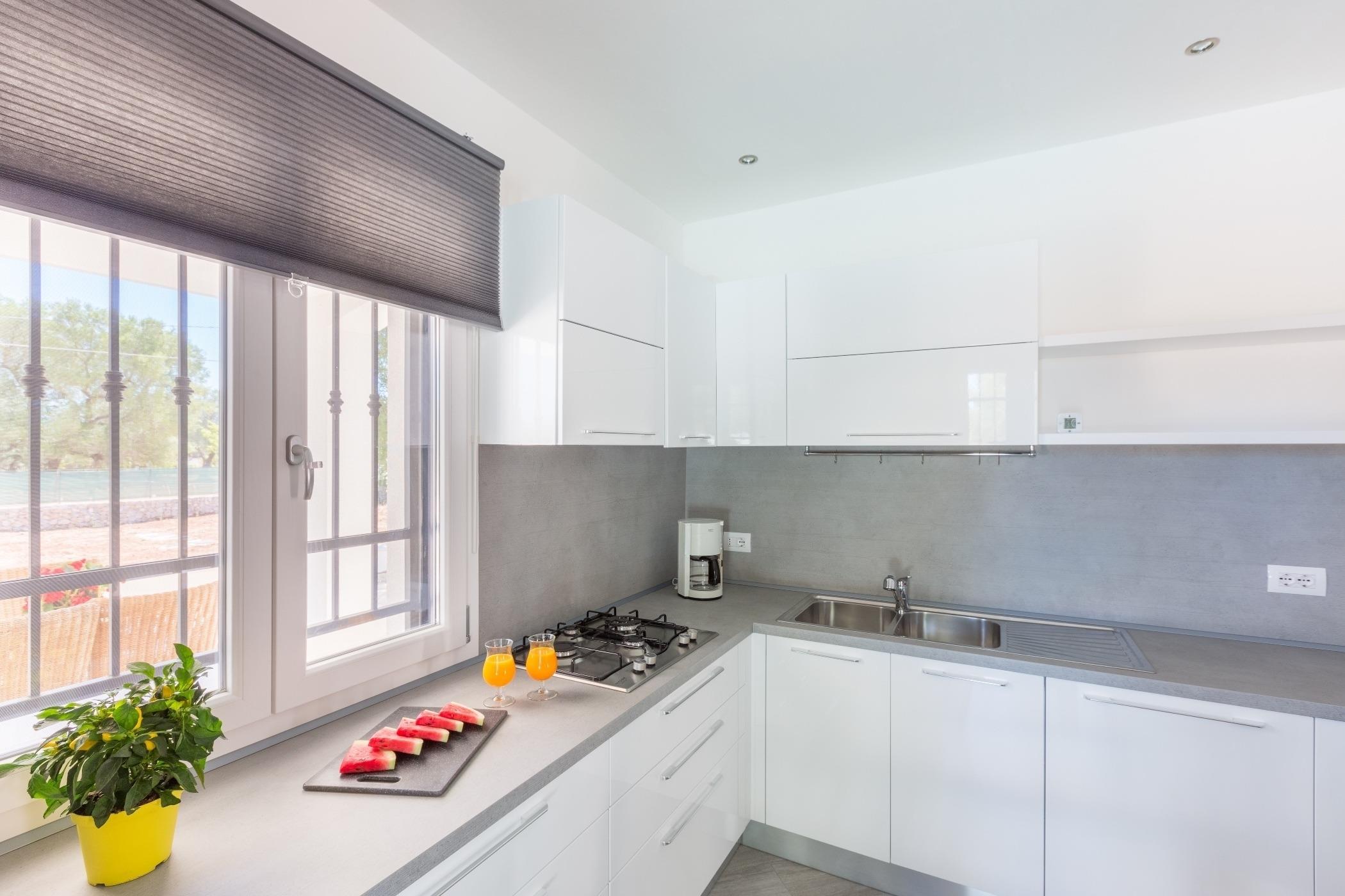 Die Küche ist für die Zubereitung von Mahlzeiten ausgestattet und bietet einen Geschirrspüler, Weingläser und einen Wasserkocher.