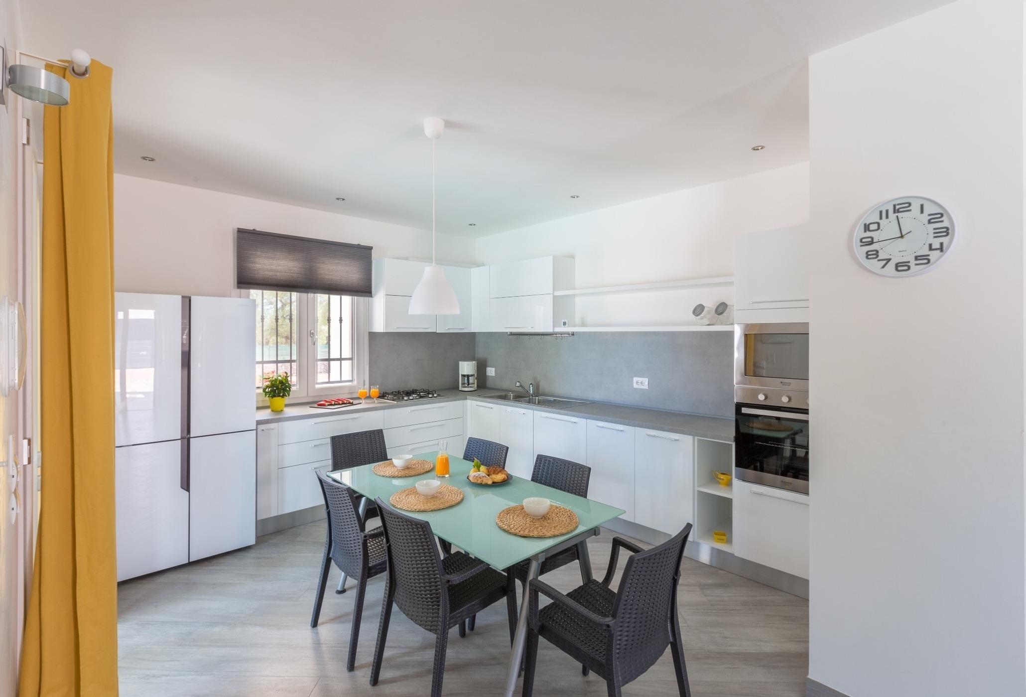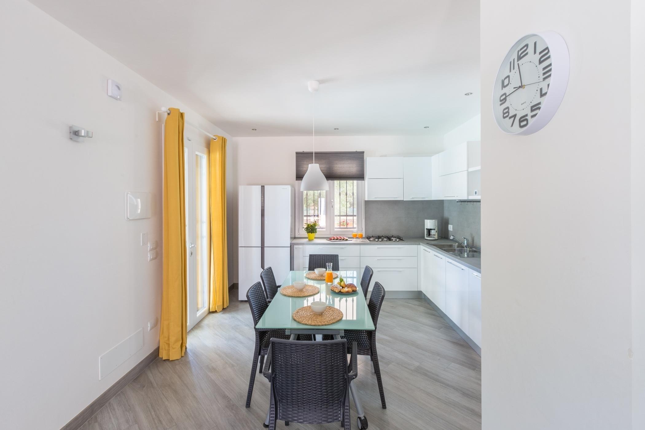 Die Wohnküche hat direkten Zugang zum Schwimmbad.