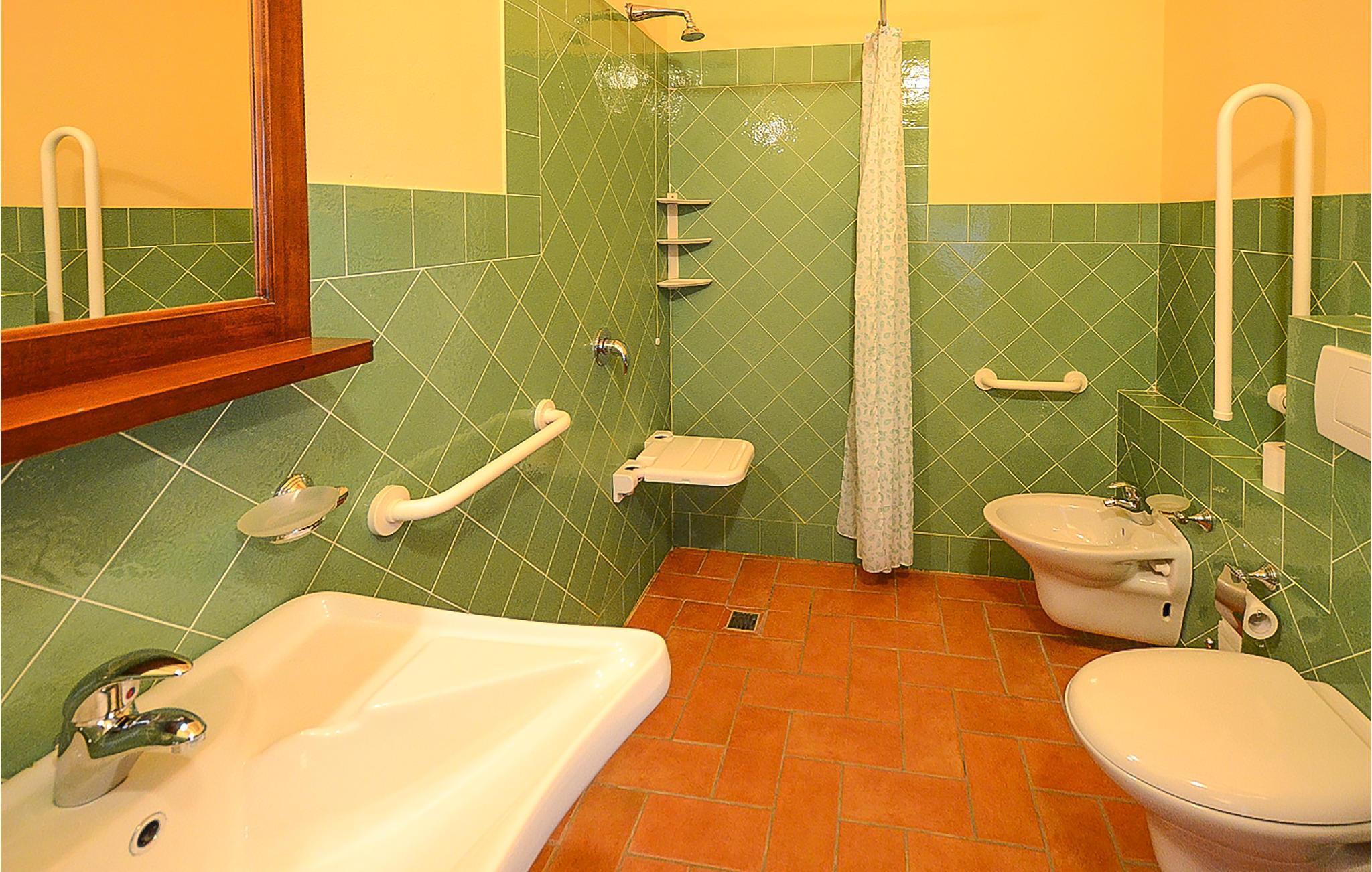Das Haus ist auf zwei Etagen. Vom Loggia-Eingang im ersten Stock, wo Sie ein herrliches, suggestives Panorama genießen können, haben Sie Zugang zum Wohnzimmer und zur Küche, zu zwei Doppelzimmern, eines mit Balkon mit Blick auf das Tal. Im Erdgeschoss befinden sich die anderen Schlafzimmer mit ihren Badezimmern. Unter der Pergola vor dem Haus sind Tische und Stühle, etwas unterhalb liegt ein Teil des privaten Gartens. Den Gästen stehen auch verschiedene Spiele für Kinder, Tischtennis, Volleyball und Boccia zur Verfügung.