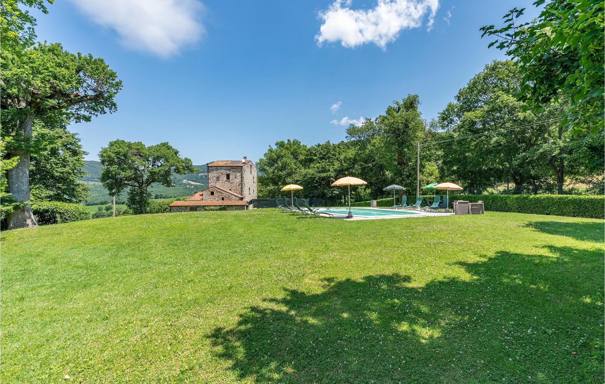 Hier wohnen Sie - sehr individuell - in einem mittelalterlichen, stilvoll restaurierten Wehrturm, ca. 12 km vom mittelalterlichen Sansepolcro entfernt, Herkunftsort des Malers der Frührenaissance Piero della Francesca. Unten die helle Wohnküche und das Esszimmer unter den Rundbögen; darüber das gemütliche Kaminzimmer; die Schlafzimmer in den oberen Stöcken, jeweils mit weitem Blick aus den dicken Mauern in die romantische Berglandschaft. Die vier Etagen sind über Außen- und/oder Wendeltreppen miteinander verbunden (Für kleine Kinder nicht geeignet). Auf dem großen Grundstück befinden sich der eingezäunte Poolbereich sowie verschiedene Terrassen mit Pizzaofen und Barbecue. Ideal zum Wandern und für Besichtigungen der schönen Städte des Tibertals: Caprese Michelangelo, Sansepolcro, Anghiari; das Franziskanerkloster von La Verna (20km). Pieve S.Stefano 4km. Nur unter strenger Aufsicht ist dieses Turmhaus für Kinder geeignet. Unasphaltierte Zufahrt.