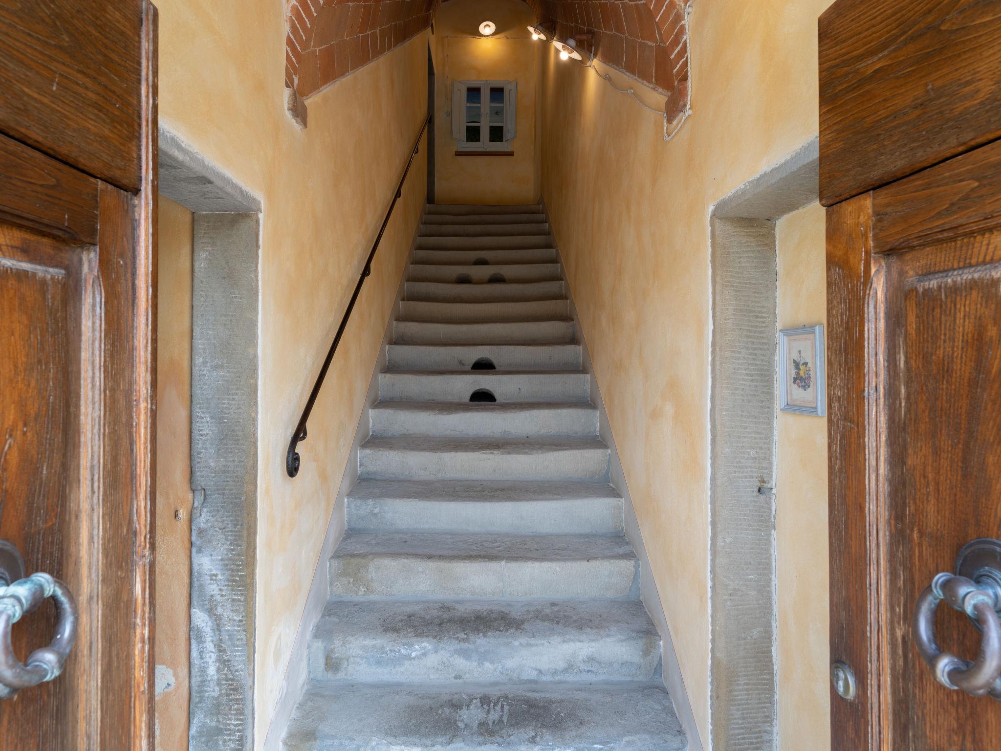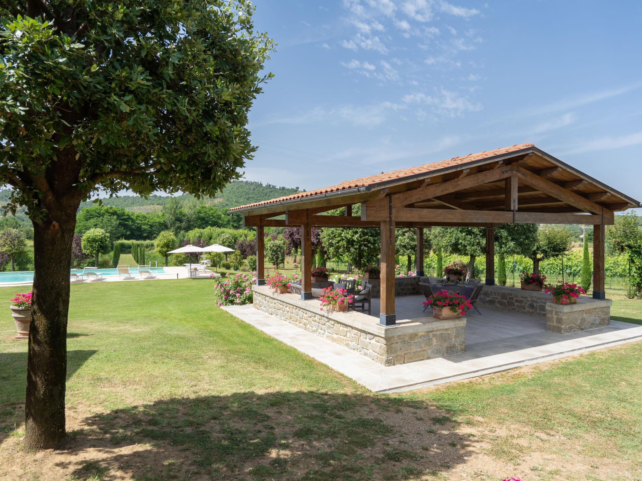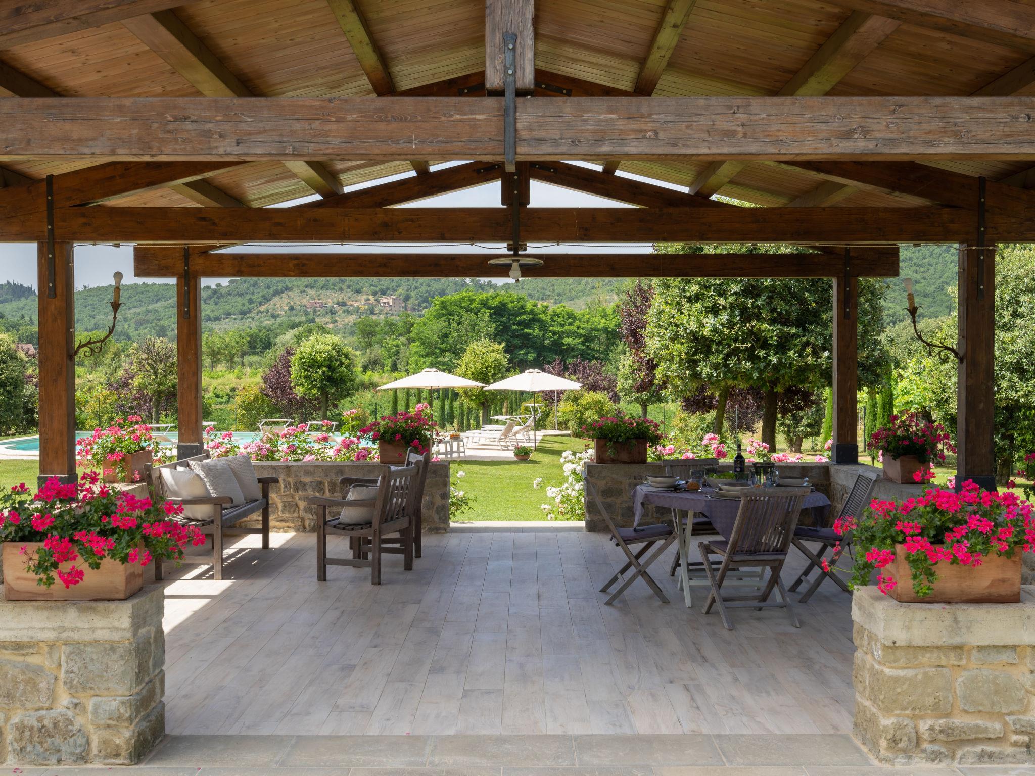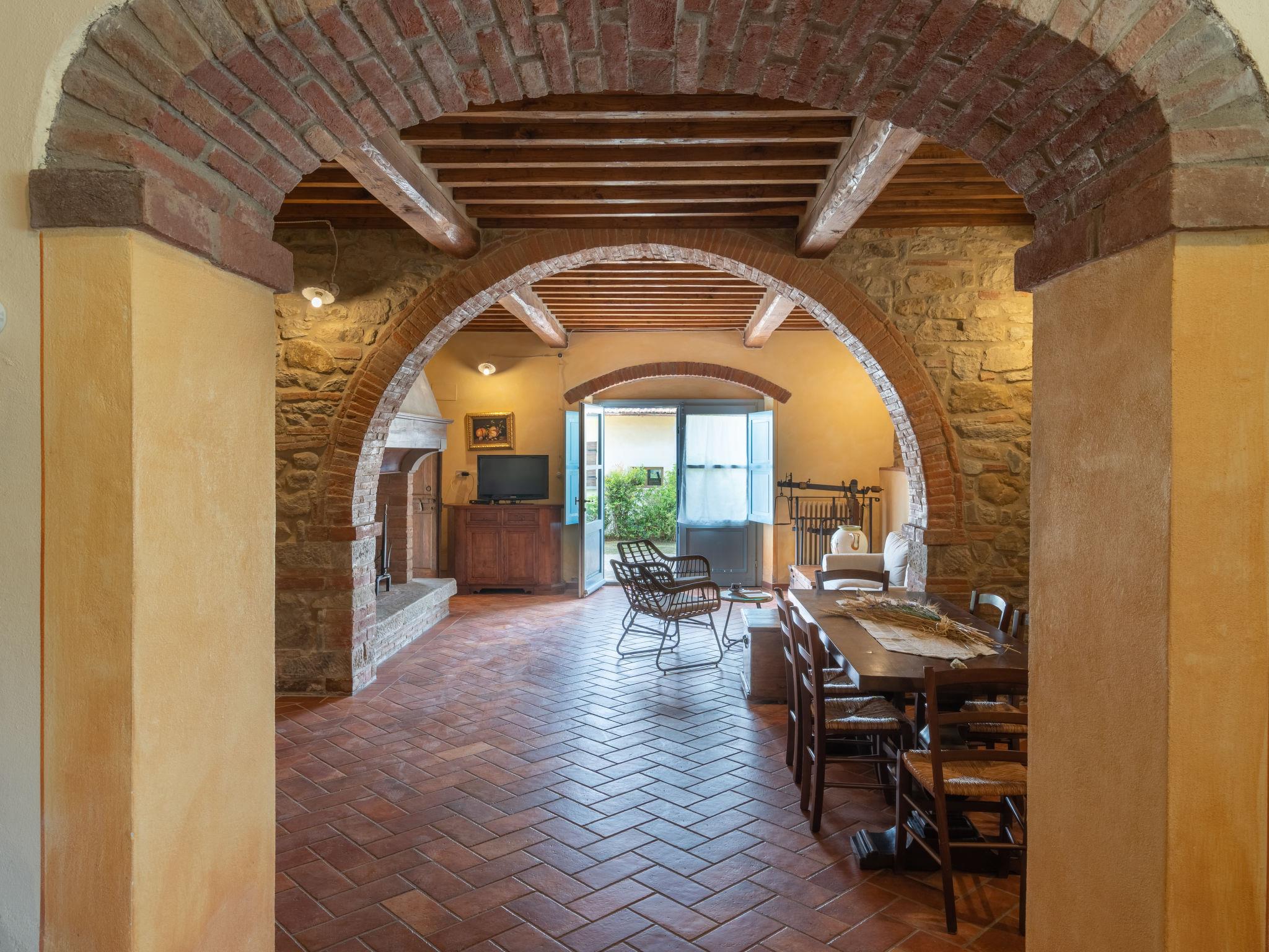 Landhaus "Santa Lucia", einseitig angebaut. 2.5 km vom Zentrum von Castiglion Fiorentino, 20 km vom Zentrum von Arezzo, 12 km vom Zentrum von Cortona, 35 km vom See. Zur Mitbenutzung: Grundstück 3 ha, Obstgarten. Zur Alleinbenutzung: Grundstück 1'500 m2, Garten Rasen und Bäumen, Schwimmbad (12 x 6 m, 140 - 200 cm tief, saisonale Verfügbarkeit: 01.Mai. - 30.Sep.). Aussendusche, Parkplatz auf dem Grundstück. Einkaufsgeschäft 1 km, Supermarkt 2.5 km, Bushaltestelle 1 km, Bahnstation "Castiglion Fiorentino" 2.5 km, Badesee "Trasimeno" 35 km. Golfplatz (9 Loch) 20 km. Nahe gelegene Sehenswürdigkeiten: Valdichiana Outlet Village 25 km.