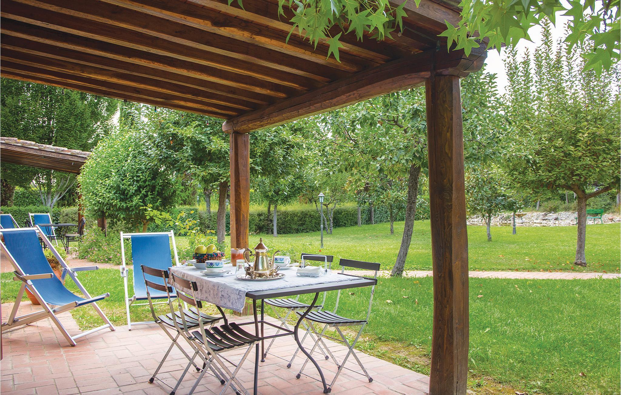 Ein sympatisches Ferienhäuschen mit überdachter Terrasse auf einem parkähnlichen Grundstück. Rustikale, praktische Einrichtung im Landhausstil. Kinderbett auf Anfrage. Auf dem weitläufigen Grundstüc kbefinden sich auch zwei weitere Häuschen IUT223 und IUT224. Der Poolbereich mit Sonnenterrasse, ein Tennisplatz, Barbecue sowie ein Kinderspielplatz stehen gemeinsam zur Verfügung. Frisches Gemüse kann auf dem hauseigenen Gemüsegarten geerntet werden. Und falls Sie einmal nicht kochen mögen, kein Problem: Die Eigentümerin betreibt ein kleines Ristorante im Hauptgebäude des Agriturismo. Verkehrsgünstige Lage am Ortsrand; von hier erreichen Sie in maximal einer Stunde Autofahrt die nahen umbrischen und toskanischen Städte Perugia, Cortona, Arezzo, Siena und viele mehr. Castiglione del Lago und Seeufer mit Badestrand 7 km. Einkaufen im Ortsteil Pineta 300 m.