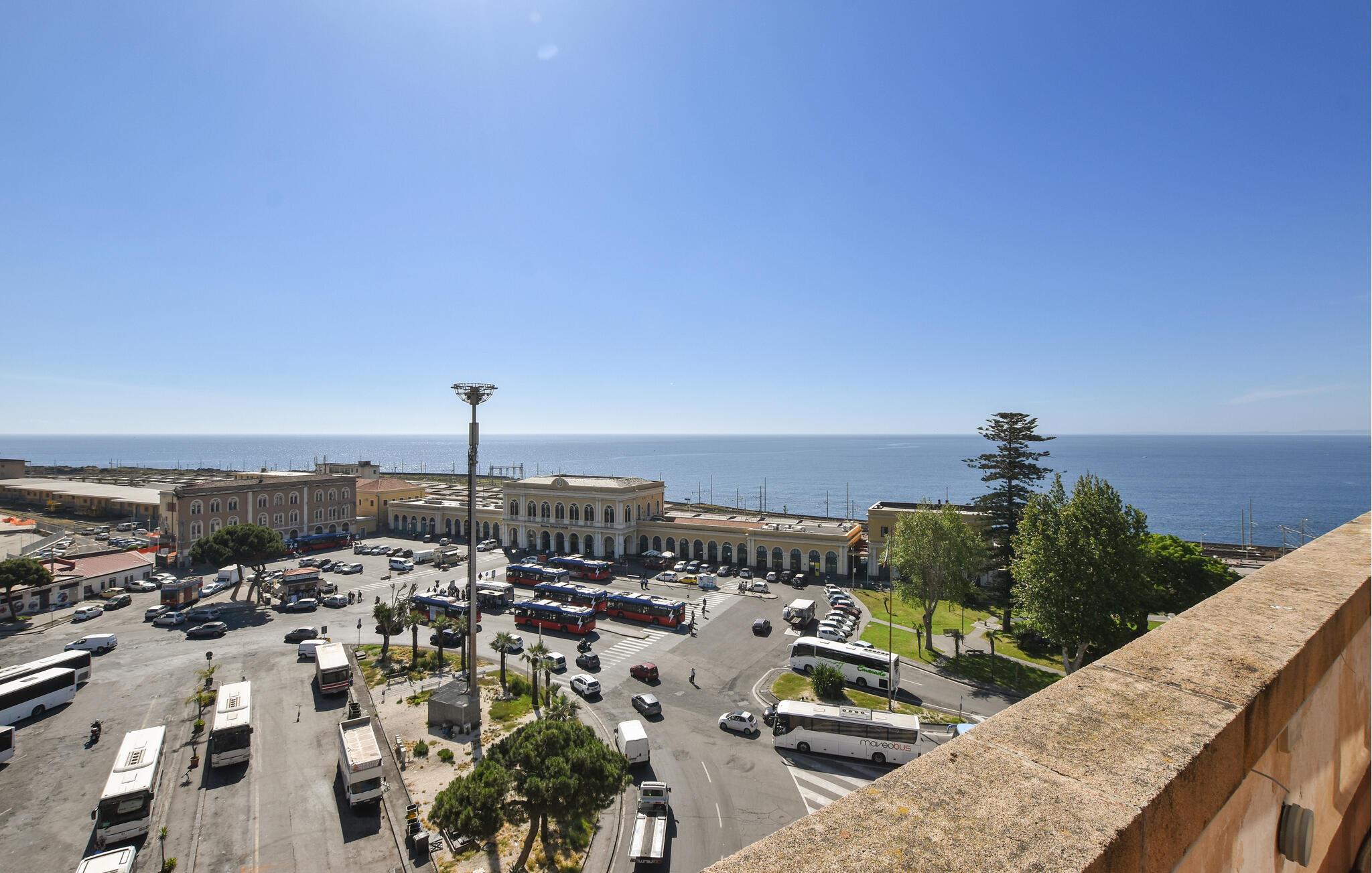 Diese große und helle Ferienwohnung im siebten Stock eines Gebäudes mit Aufzug befindet sich direkt vor dem Hauptbahnhof von Catania und ist ein ausgezeichneter Ausgangspunkt, um die Stadt und ihre Umgebung zu erkunden. Neben dem Bahnhof befinden sich am selben Platz der Busbahnhof und die U-Bahn-Station, so dass Sie mit öffentlichen Verkehrsmitteln alle berühmtesten Orte der Gegend erreichen können, von den Ätna-Dörfern bis zur wunderschönen Küste der Zyklopen, Acireale und Taormina oder die Schönheit des Barock. Die Besonderheit, die dieses Apartment einzigartig macht, ist eine schöne Terrasse von ca. 150 m², die mit einem Pavillon, Pflanzen, Tischen, Stühlen, einer Außenküche und einem Grill sowie einem Holzofen für fröhliche Abendessen und Grillabende mit Freunden im Stadtzentrum ausgestattet ist. Bewundern Sie das herrliche Panorama des Meeres, den Sonnenaufgang und den gesamten Golf von Catania. Besuchen Sie hier die Kathedrale von Sant'Agata, den Platz mit dem Elefantenbrunnen, den charakteristischen Fischmarkt, den Palazzo Platamone und viele andere historische Monumente der Stadt. Ihre Wohnung liegt einen kurzen Spaziergang vom Konferenz- und Ausstellungszentrum Le Ciminiere entfernt.