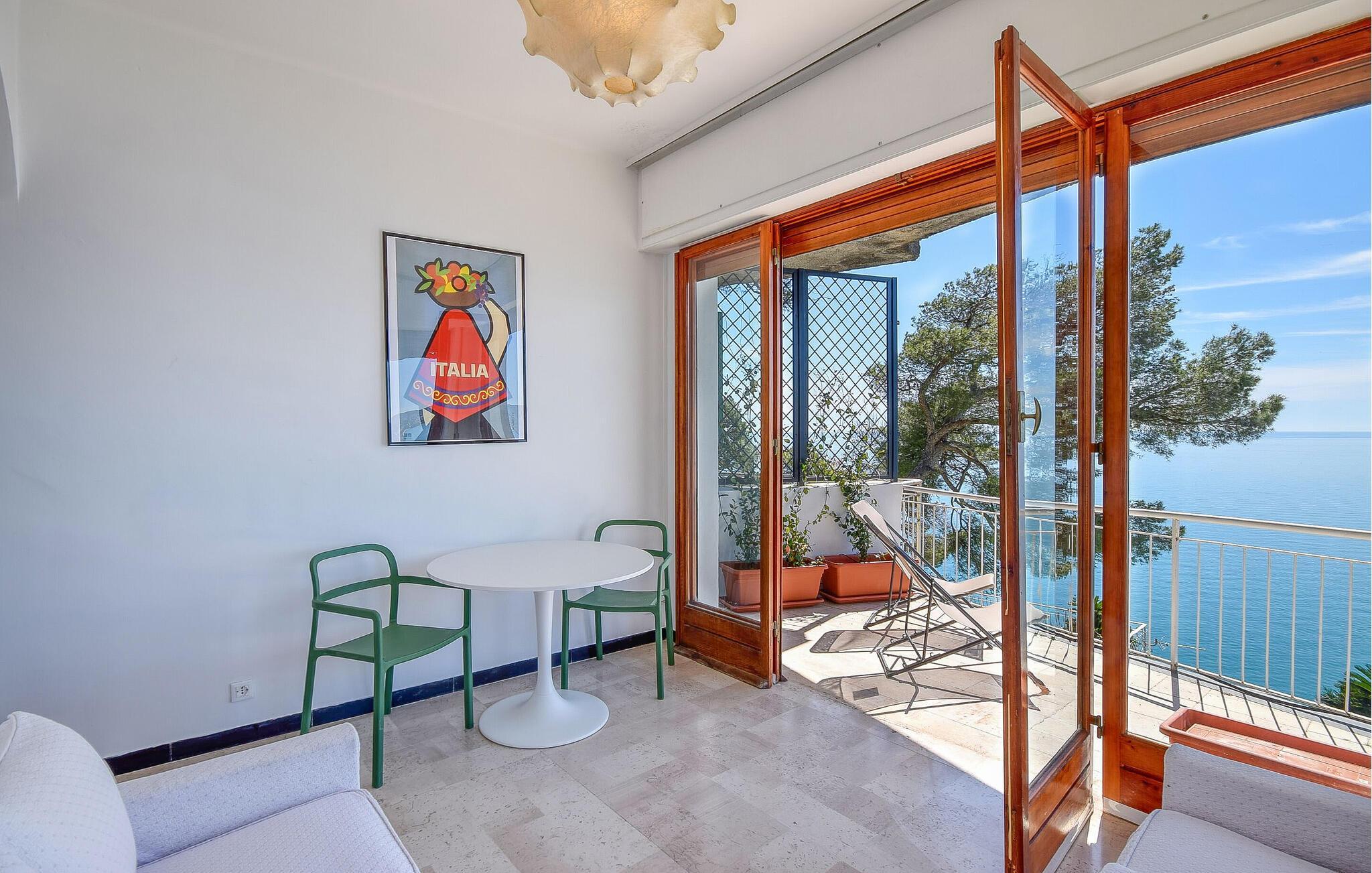 Ihr Urlaub in Ihrer Ferienwohnung direkt an der Küste ist ein unvergessliches Erlebnis. Die atemberaubende Aussicht auf das azurblaue Meer und die grünen Hügel der Ligurischen Küste sind einzigartig. Beginnen Sie Ihren Tag in aller Ruhe auf dem Balkon, genießen Sie die frische Meeresbrise und lassen Sie den Blick über das endlose Blau schweifen. Die lichtdurchflutete Wohnung bietet alles, was Sie für einen komfortablen Aufenthalt benötigen. Das Wohnzimmer ist modern eingerichtet, und die großen Fenster bieten einen spektakulären Panoramablick auf das Meer. Setzen Sie sich auf die bequemen Sofas und genießen Sie die Aussicht und öffnen Sie auch die Türen zum Balkon und lassen Sie die frische Luft herein.