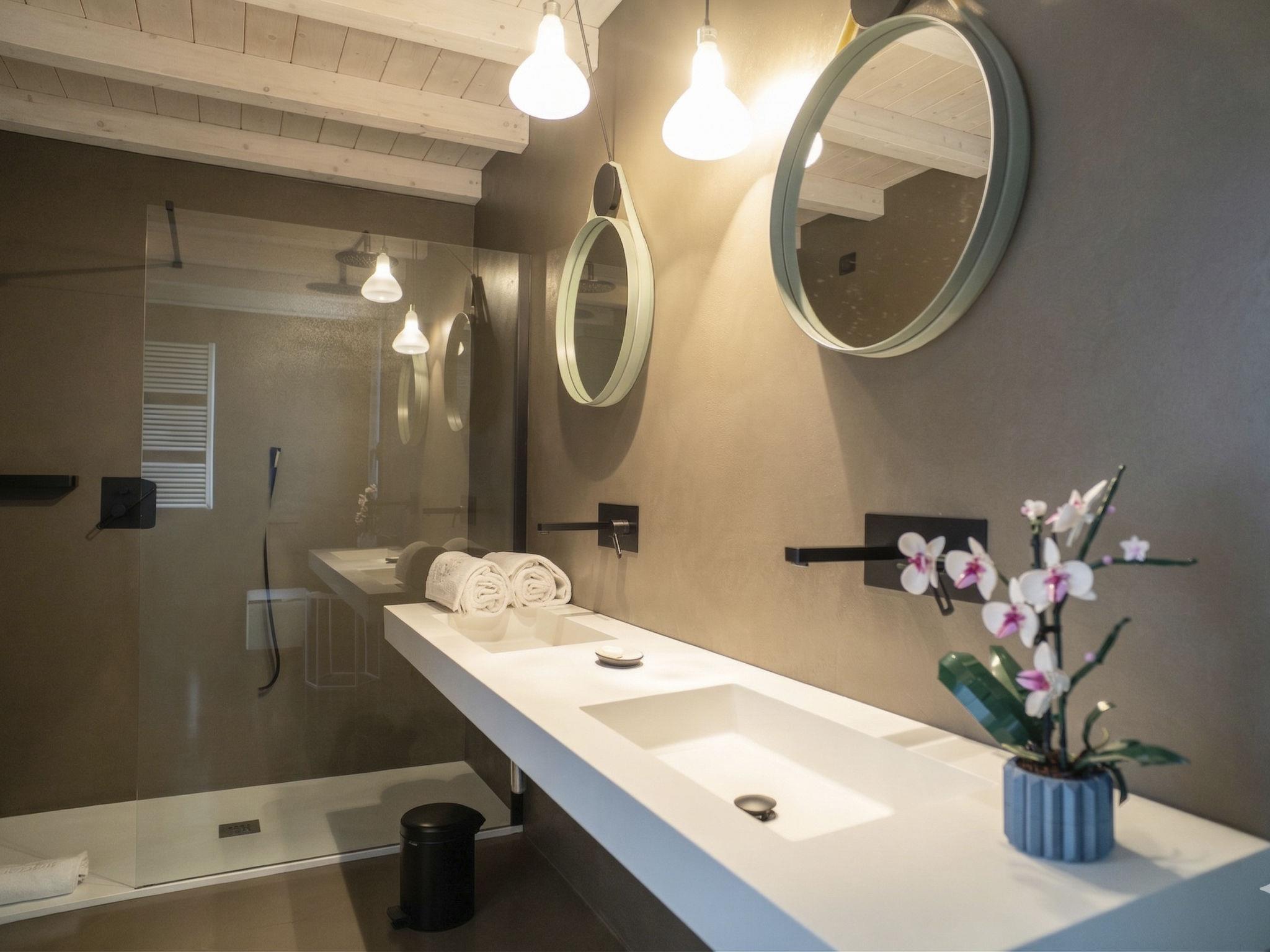 "Idea 18", 6-Zimmer-Villa 300 m2 auf 2 Stockwerken. Geräumig und hell, modern und stilvoll eingerichtet: Wohn-/Esszimmer mit Panoramafenster mit offenem Kamin, Esstisch, TV und Klimaanlage. Ausgang zum Garten, zum Schwimmbad. 3 Zimmer, jedes Zimmer mit 1 Doppelbett und TV. Ausgang zum Garten. Grosse Küche (5 Induktionskochplatten, Wasserkocher, Mikrowelle, Tiefkühler, elektrische Kaffeemaschine, Kapseln für die Kaffeemaschine (6) gratis, Kochinsel). Bad, 3 Duschen/Bidet/WC. Klimaanlage. Obergeschoss: 1 Zimmer mit 1 Doppelbett, offenem Kamin, mit Eckbadewanne und TV. Ausgang zur Terrasse. 1 Zimmer mit Panoramafenster mit 1 Doppelbett, mit Eckbadewanne und TV. 2 Bäder/Bidet/WC. Klimaanlage, Warmluftheizung. Grosse Terrasse überdacht, grosser Garten. Terrassenmöbel, Liegestühle. Sehr schöne Panoramasicht auf das Tal. Zur Verfügung: Kinderhochstuhl, Babybett bis 2 Jahre, Haartrockner. Internet (WLAN, gratis). Parkplatz. Bitte beachten: Maximal 2 Haustiere/Hunde erlaubt. Eigener Eingang, Rauchmelder, Feuerlöscher. IT067020B9MCP8CARV