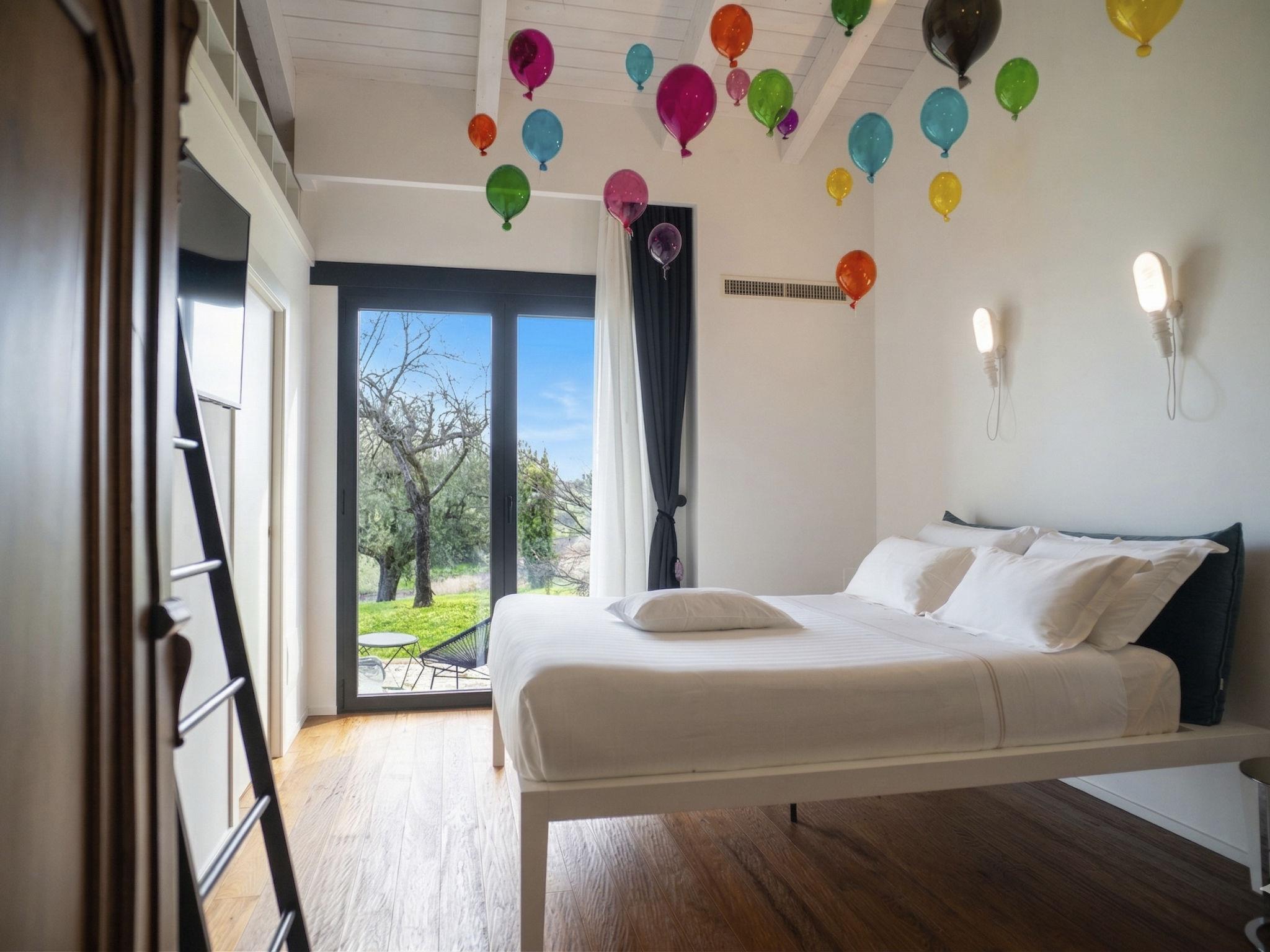 Moderne, freistehende, luxuriöse Villa "Idea 18", auf 2 Stockwerken, umgeben von Wiesen, Feldern und Weinbergen. Im Ortsteil Controguerra, 17 km vom Zentrum von San Benedetto, 11 km vom Zentrum von Martinsicuro, am Hang, exzellente Lage: Absolut zentral und dennoch ruhig, 11 km vom Meer, 11 km vom Strand. Zur Alleinbenutzung: Park, wunderschöner Garten zum Entspannen, Schwimmbad nicht einsehbar (18 x 4 m, 140 - 140 cm tief, saisonale Verfügbarkeit: 01.Mai. - 30.Okt.). Aussendusche, Gartenmöbel, Grill, Poolpflege durch den Besitzer/Gärtner. Im Hause: Klimaanlage, Wäscherei. Wäschewechsel 1 mal wöchentlich. Handtuchwechsel 1 mal wöchentlich. Wohnungsreinigung möglich (extra). Haushaltshilfe täglich möglich. Koch möglich (extra). Einkaufsservice vor Anreise möglich. Parkplatz (für 5 Autos) beim Haus. Supermarkt 1 km, Restaurant 1 km, Bar, Bushaltestelle 300 m, Bahnstation "Porto d'Ascoli" 15 km, Sandstrand 11 km. Sporthafen 15 km. Nahe gelegene Sehenswürdigkeiten: Riserva Naturale Regionale Sentina 14 km, Fortezza Medievale Acquaviva Picena 16 km, Mummie di Monsampolo 10 km. Bitte beachten: Fahrzeug empfohlen. Jugendgruppen nur auf Anfrage. Es ist möglich einen Kochkurs zu buchen.