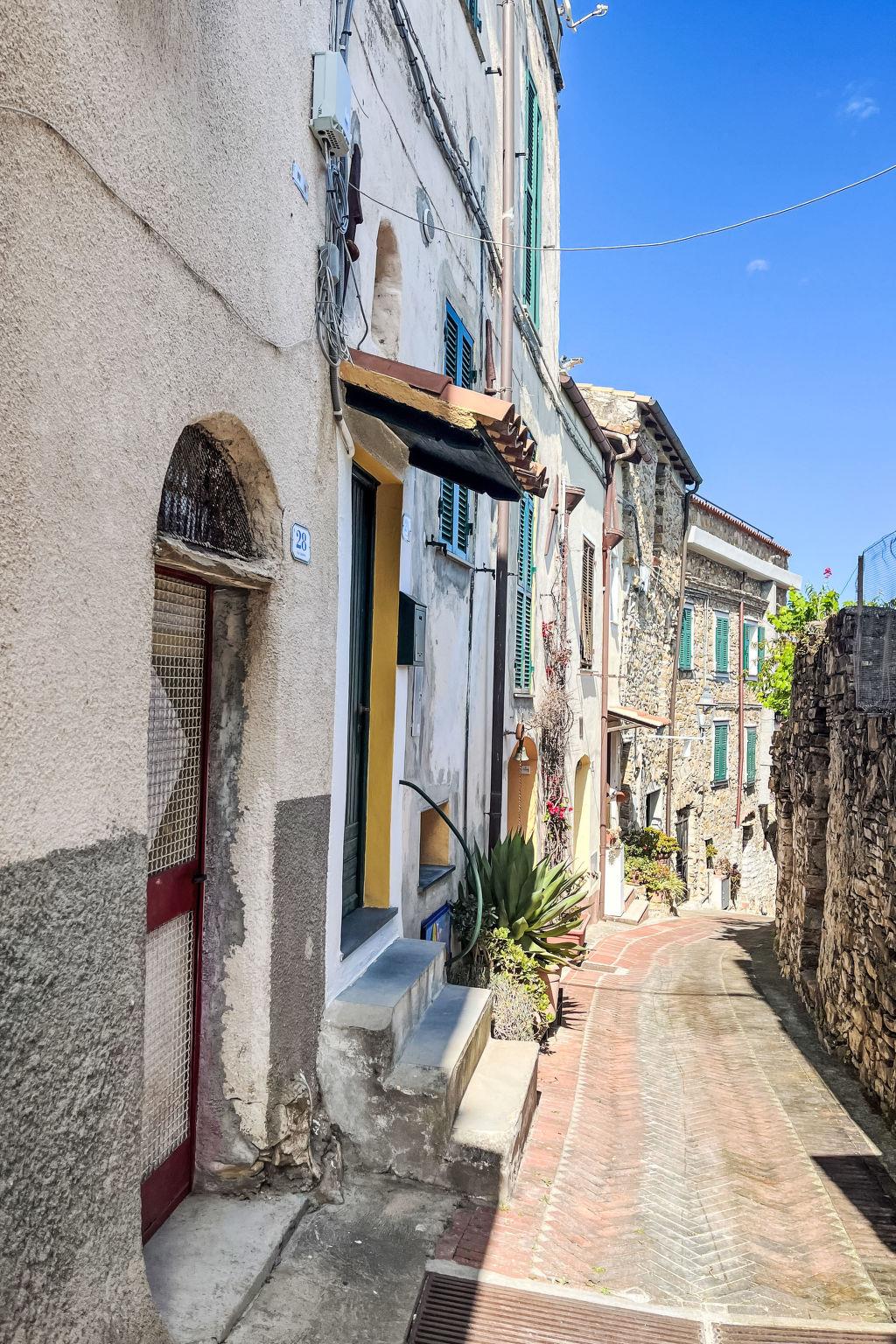 Schönes, historisches Reihenhaus "La casa di Bibi", auf 2 Stockwerken, renoviert im Jahre 2024. Im Ortszentrum von Costarainera, 4 km vom Zentrum von San Lorenzo al Mare, 9 km vom Zentrum von Imperia Porto Maurizio, ruhige, sonnige Lage auf einem Hügel, 4 km vom Meer, in einer Fussgängerzone. Zur Alleinbenutzung: naturbelassenes Grundstück, Garten 300 m2 (eingezäunt), Obstgarten. 200 m lange steile, schmale Zufahrt. 30 m Fussweg bis zum Haus. Öffentliche Parkplätze 150 m. Lebensmittelgeschäft 200 m, Supermarkt 5 km, Einkaufszentrum 5 km, Restaurant, Bar 500 m, Bäckerei 200 m, Café, Fahrradverleih 500 m, Bushaltestelle 200 m, Bahnstation "Imperia Oneglia" 13 km, Sandstrand 5 km, Kieselstrand 5 km, Steinstrand 5 km. Wanderwege ab Haus 100 m, Radweg 5 km. Nahe gelegene Sehenswürdigkeiten: Pista ciclabile lungo mare 5 km, Porto Maurizio Altstadt Parasio 10 km. Wandergebiete: Monte Faudo (1149 m) Mountainbike Trails. Ein Teil des Hauses ist geschlossen und nicht bewohnt.