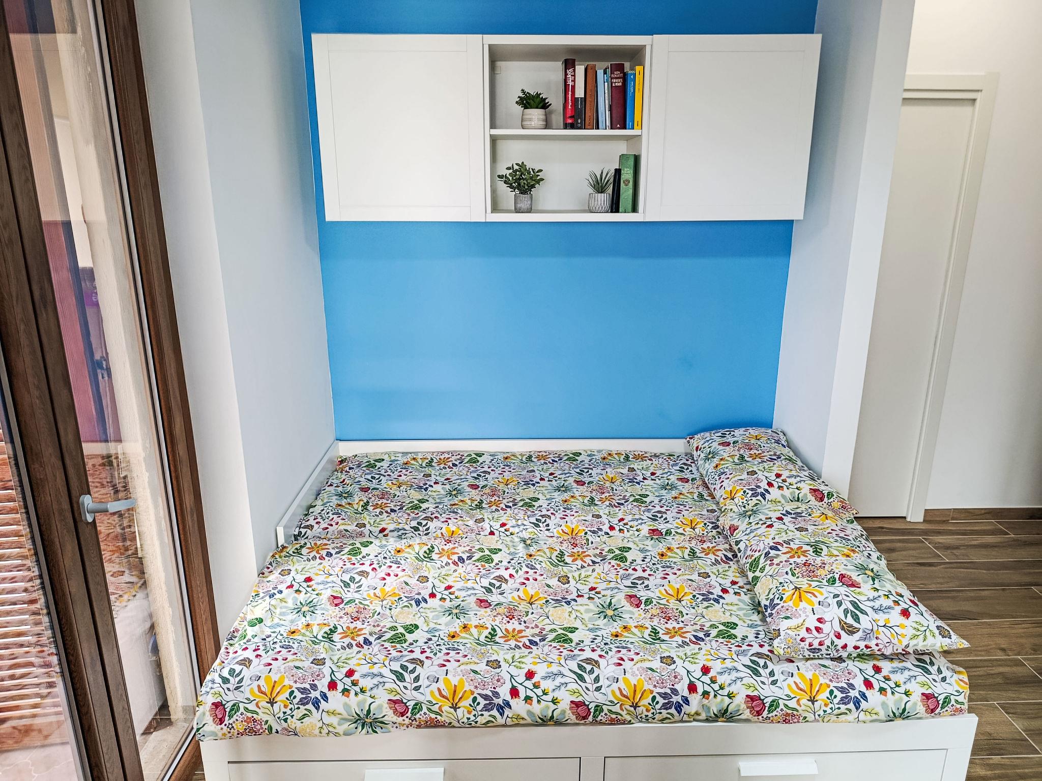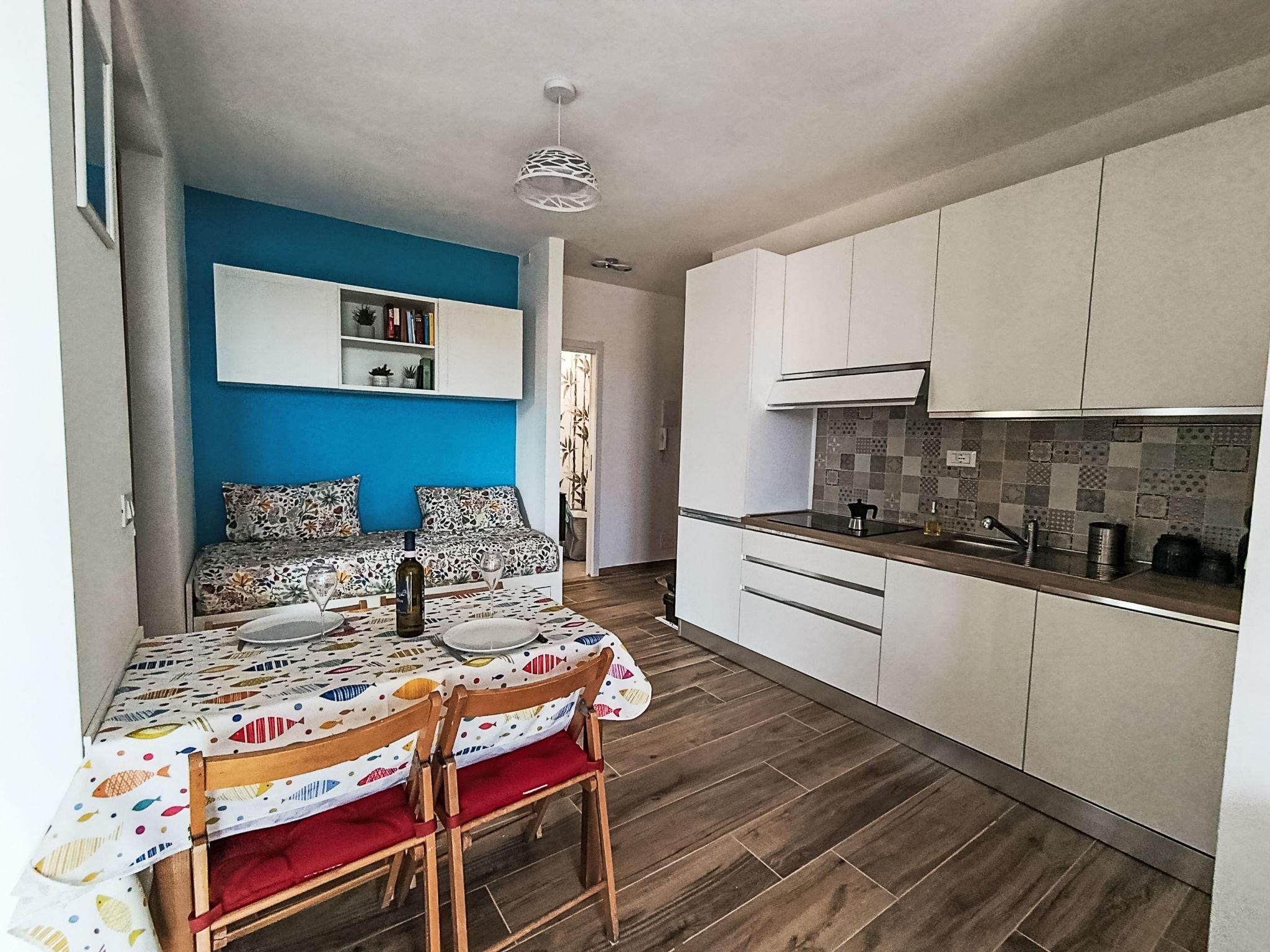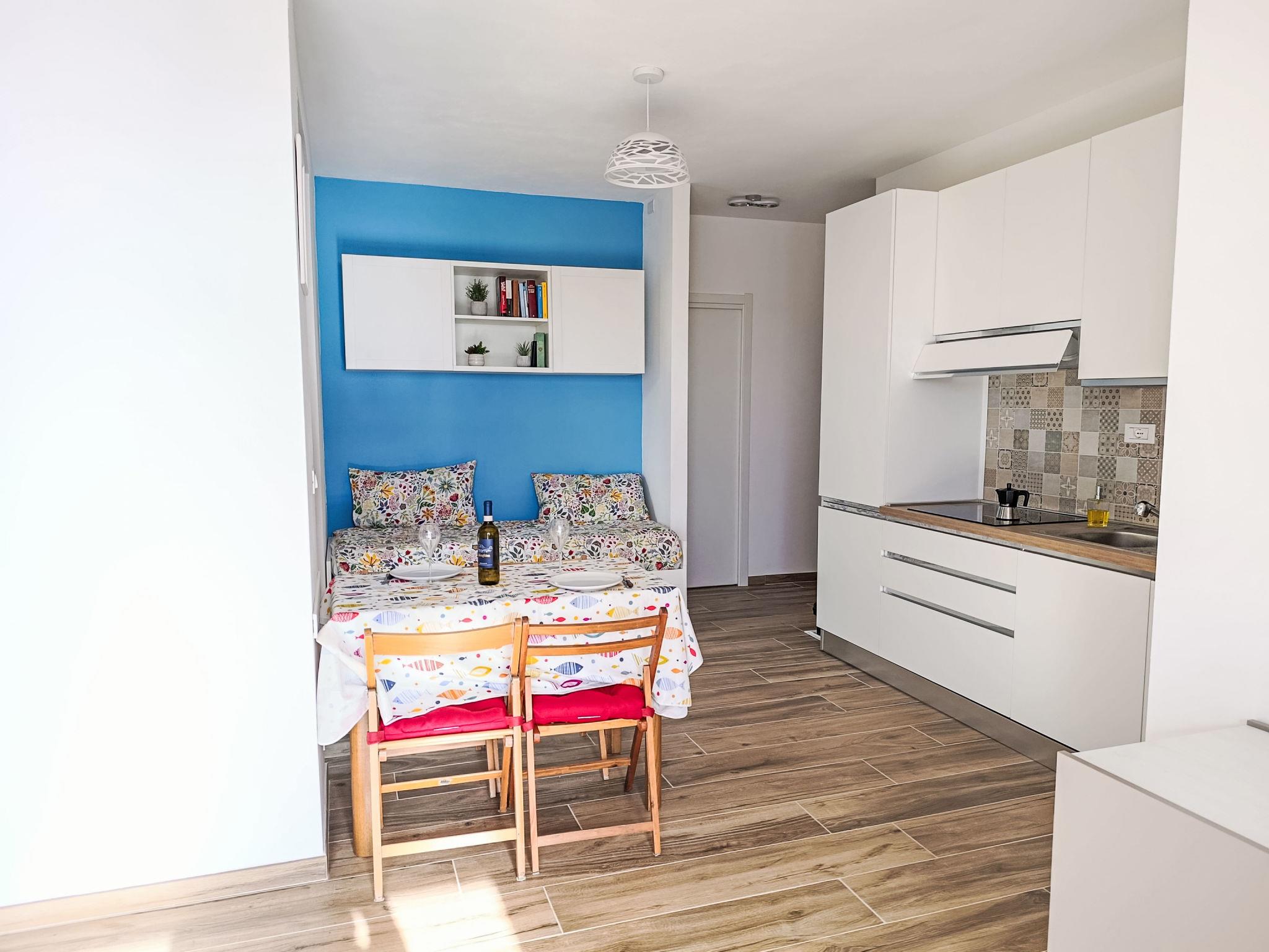 "Titti e Giba", 1-Zimmer-Wohnung 40 m2, im Erdgeschoss. Hell, vollständig renoviert im Jahre 2026, geschmackvoll und gemütlich eingerichtet: Wohn-/Schlafzimmer mit 2 Betten (80 cm, Länge 200 cm), 1 Doppelbett (1 x 160 cm, Länge 200 cm), Esstisch. Ausgang zum Garten, zum Balkon. Kochnische (4 Glaskeramikplatten, Toaster, Wasserkocher, Tiefkühler, elektrische Kaffeemaschine) mit Esstisch. Ausgang zum Balkon. Dusche/Bidet/WC. Klimaanlage. Grosser Balkon 9 m2. Balkonmöbel. Sehr schöne Panoramasicht auf das Meer. Zur Verfügung: Waschmaschine, Kinderhochstuhl, Babybett, Haartrockner. Internet (WLAN, gratis). Bitte beachten: Feuerlöscher. IT008024C2S62YAXOF