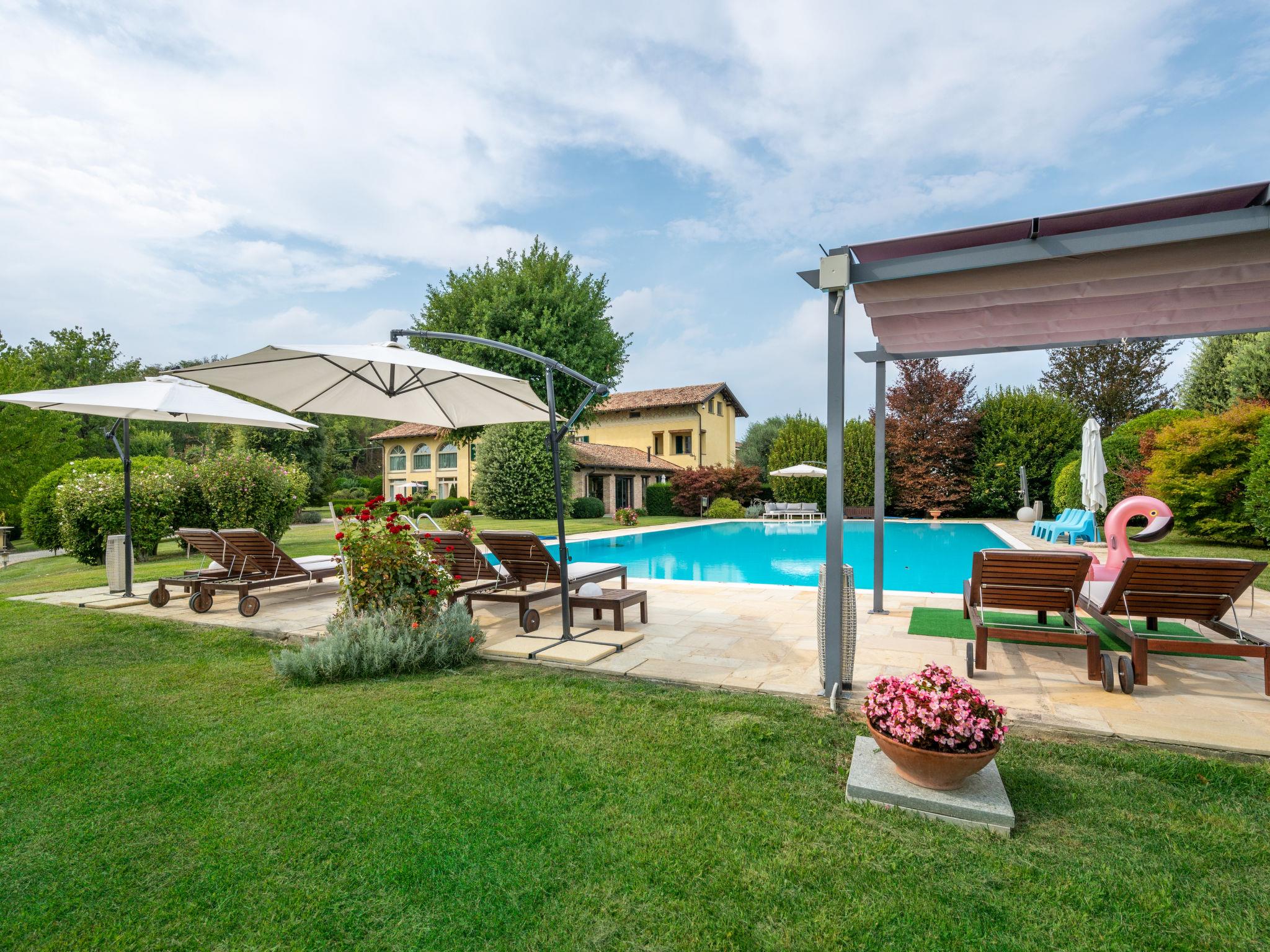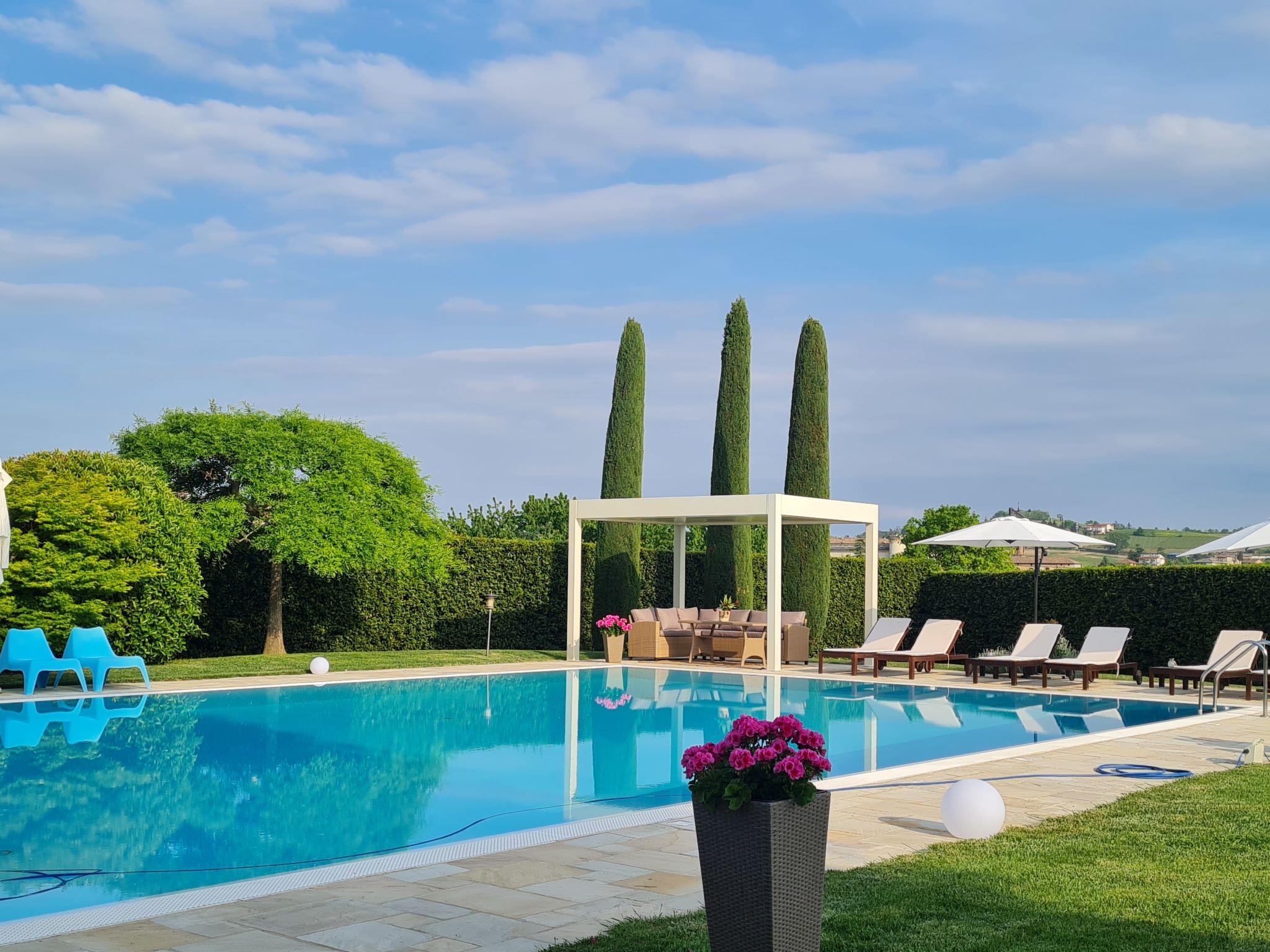 Sehr komfortables Landhaus "Villa Carlotta", auf 3 Stockwerken, einseitig angebaut. 1.4 km vom Zentrum von Costigliole d'Asti, am Ortsrand, 15 km vom Zentrum von Asti, 20 km vom Zentrum von Alba, alleinstehende, sonnige, erhöhte Lage. Zur Mitbenutzung: Grundstück 7'000 m2 (eingezäunt), gepflegter Garten mit Rasen und Bäumen. Zur Alleinbenutzung: Schwimmbad (18 x 9 m, 110 - 220 cm tief, saisonale Verfügbarkeit: 05.Apr. - 15.Okt.) mit Salzelektrolyse-Reinigungssystem. Aussendusche, Poolpflege durch den Besitzer/Gärtner. Im Hause: Fitnessraum. Parkplatz beim Haus auf dem Grundstück. Supermarkt 700 m, Bushaltestelle 3.5 km, Bahnstation "Asti" 15 km. Besitzer wohnt in separatem Hausteil.