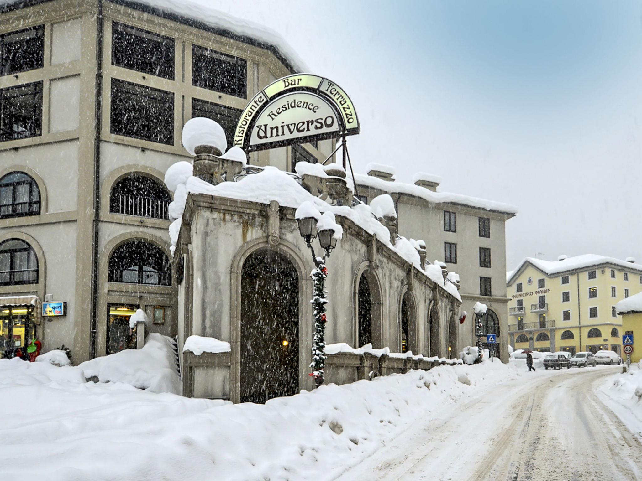 Schöne Residenz "Universo", 1'000 m.ü.M.. Im Ortszentrum von Pre Saint Didier, 6 km vom Zentrum von Courmayeur. Im Hause: Empfang, Wireless LAN, Sauna (extra). Fahrstuhl, Skiraum, Zentralheizung, Heizung nur verfügbar von 15.Okt. - 15.Apr.. Bushaltestelle "Pré Saint Didier" 500 m, Hallenbad 50 m, Thermalbad "QC Terme" 100 m. Luftseilbahn 4.9 km, Gondelbahn 6.3 km, Skibushaltestelle 50 m. Nahe gelegene Sehenswürdigkeiten: Sky Way Monte Bianco 8.3 km. Bekannte Skigebiete sind gut erreichbar: Courmayeur 6 km, La Thuile 10 km. Bitte beachten: Das Foto ist nur ein Hausbeispiel. Weitere Unterkünfte sind buchbar.