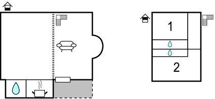 Badezimmer (nr. 2) - WC. Warmes und kaltes Wasser. Dusche