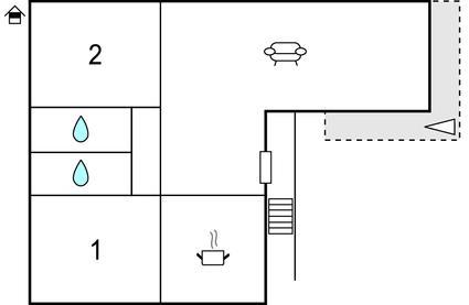 Badezimmer (nr. 2) - WC. Warmes und kaltes Wasser. Dusche