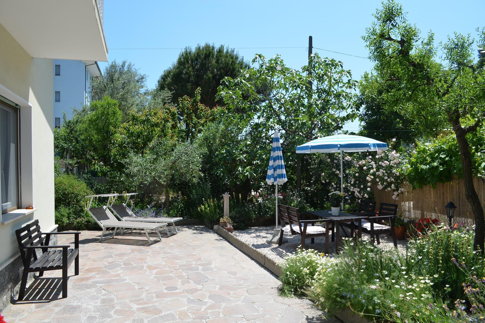 Umgeben von Oliven- und Obstbäumen bietet diese charmante Erdgeschosswohnung in Gatteo Mare die perfekte Mischung aus Entspannung und Komfort. Genießen Sie Ihren Morgenkaffee oder einen Aperitif bei Sonnenuntergang in Ihrem privaten, möblierten Garten oder entspannen Sie sich auf den Sonnenliegen, umgeben von den Geräuschen der Natur. Die Wohnung verfügt über ein gemütliches Wohnzimmer, eine voll ausgestattete offene Küche und ein Badezimmer mit allen notwendigen Annehmlichkeiten. Familien werden den gemeinsamen Grillplatz und die Fahrräder zu schätzen wissen, mit denen sie gemütliche Ausflüge zum Strand oder in die Stadt unternehmen können. Weniger als einen Kilometer von den breiten Sandstränden von Gatteo Mare entfernt, ist dieses Haus ideal für Strandliebhaber. Verbringen Sie Ihre Tage an der Küste mit Beachvolleyball, Bootfahren oder einfach nur mit Entspannen in einem der vielen Strandclubs, die Sonnenschirme, Liegestühle und Strandservice anbieten. Für einen kulturellen Ausflug empfehlen wir Ihnen einen Besuch der nahe gelegenen historischen Städte wie Ravenna mit seinen weltberühmten Mosaiken oder der mittelalterlichen Republik San Marino, die hoch über der umliegenden Landschaft thront. Auch Urbino, UNESCO-Weltkulturerbe und Geburtsort von Raffael, ist für einen Tagesausflug gut erreichbar.