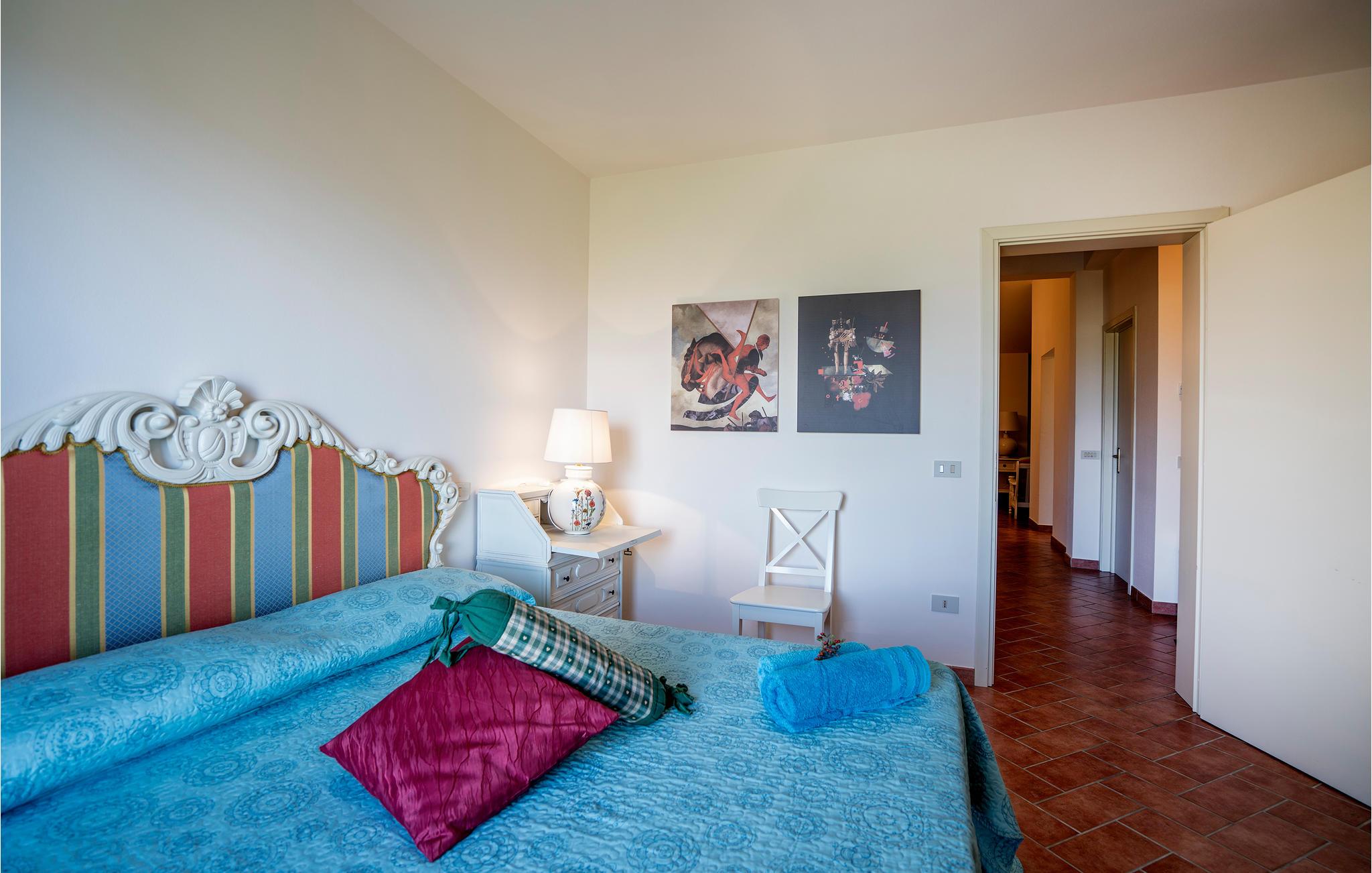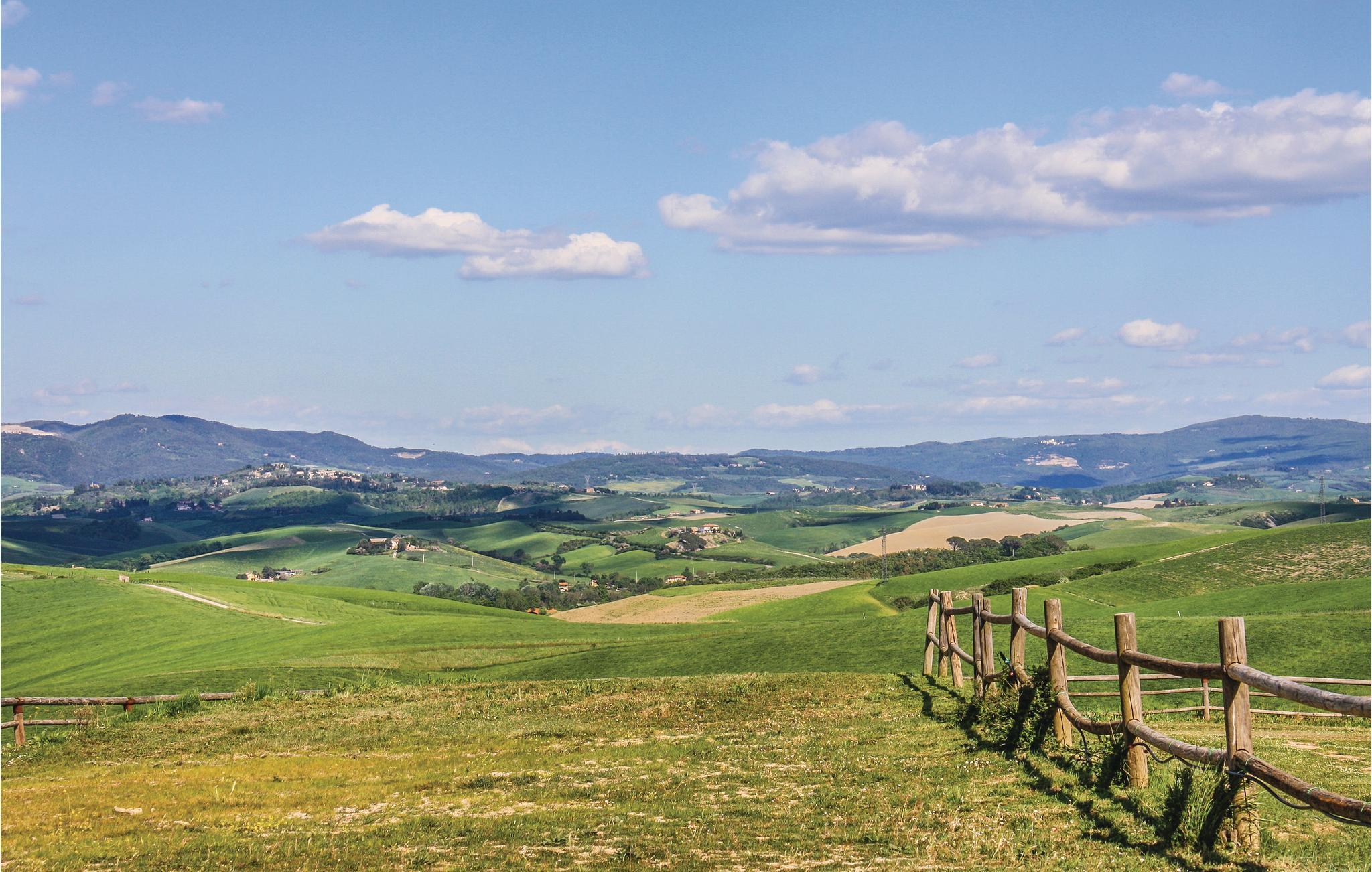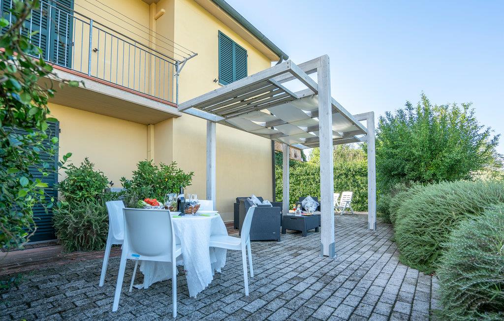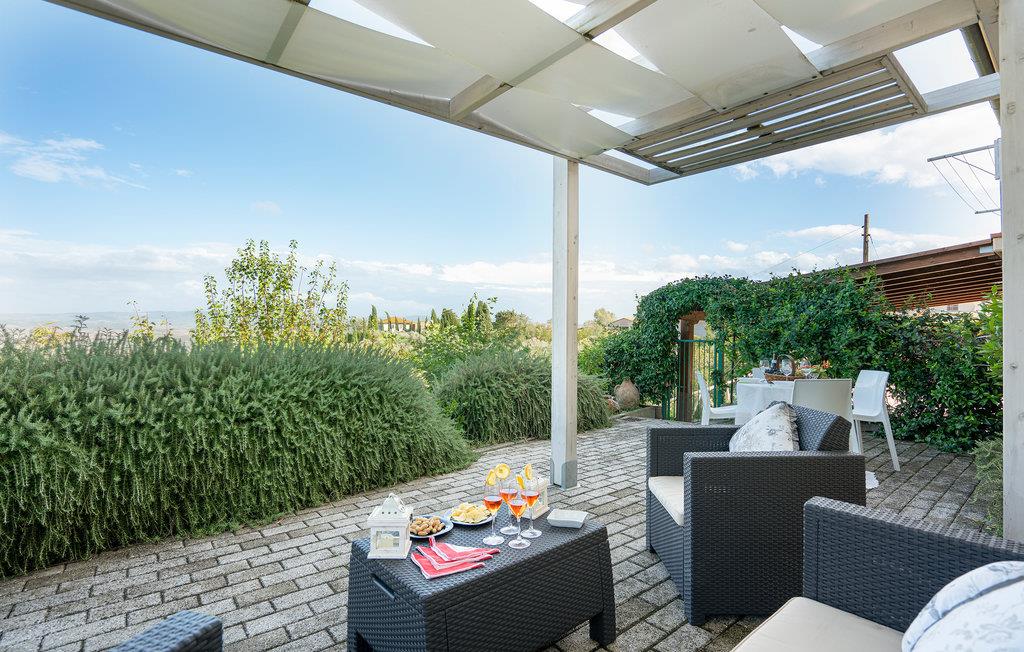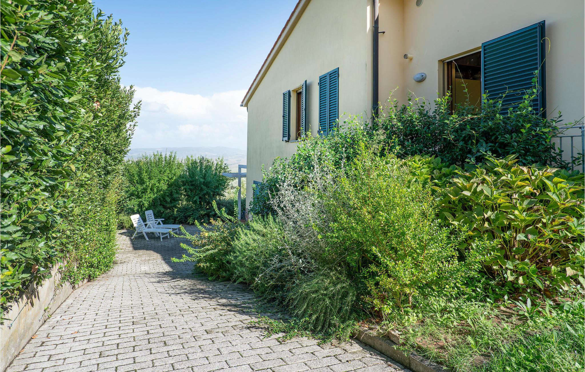 Schöne Ferienwohnung in Zweifamilienhaus in der Nähe von Lajatico, Heimatstadt des Tenors Andrea Bocelli, in der Provinz von Pisa, mit Privatgarten und fantastischem Panoramablick auf das Tal, wo sich das einzigartige Amphitheater im Freien Teatro del Silenzio befindet, 300 m vom Haus entfernt, und wo einmal jährlich im Juli ein Konzert des weltberühmten Tenors gehalten wird. Gepflegte und elegante Einrichtung mit moderner Ausstattung. Schöner, privater und umzäunter Garten, ausgestattet, um entspannende Stunden in grüner Umgebung zu verbringen. Einige der schönsten toskanischen Kunststädte sind leicht erreichbar: 20 km Volterra, die Hügelstadt etruskischen Ursprungs; 32 km San Gimignano, die mittelalterliche Stadt der Türme; 50 km Pisa mit dem berühmten Schiefen Turm; 56 km die lebendige Hafenstadt Livorno Lajatico mit Geschäften aller Art ist 200 m entfernt und auch zu Fuß erreichbar. 40 km die schönen Sandstrände der Etruskerküste.