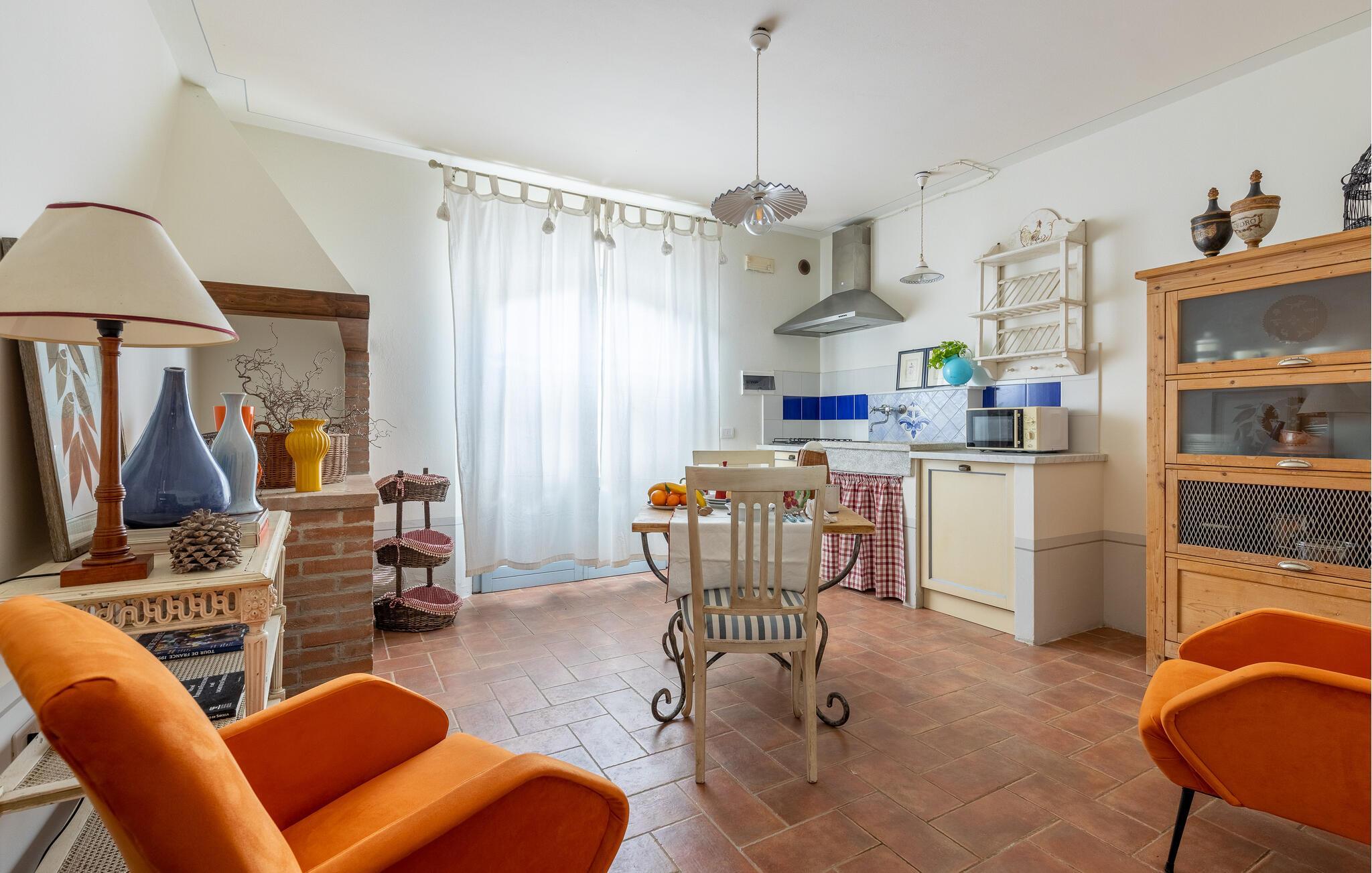 Hübsche Ferienwohnung in einem typischen kleinen Dorf am Fuße der Montalbano Hügel, umgeben von der typischen toskanischen Landschaft von Olivenbäumen und Eichen, 1 km von Lamporecchio entfernt. Im Außenbereich sind ein gemeinschaftliches Schwimmbad und ein großer, gepflegter Garten mit einem kleinen Bach. Dies ist die perfekte Lösung für diejenigen, die einen erholsamen Urlaub verbringen möchten, aber gleichzeitig die nahe gelegenen kleinen Städte von Larciano und Lamporecchio besuchen möchten. Vinci - der Geburtsort von Leonardo da Vinci mit Museum - ist nur 5 km entfernt, die Giusti Höhlen bei Monsummano Terme 10 km, Pistoia 20 km, Florenz 40 km, das Meer und die Strände von Versilia 70 km. Siehe auch ITT329.