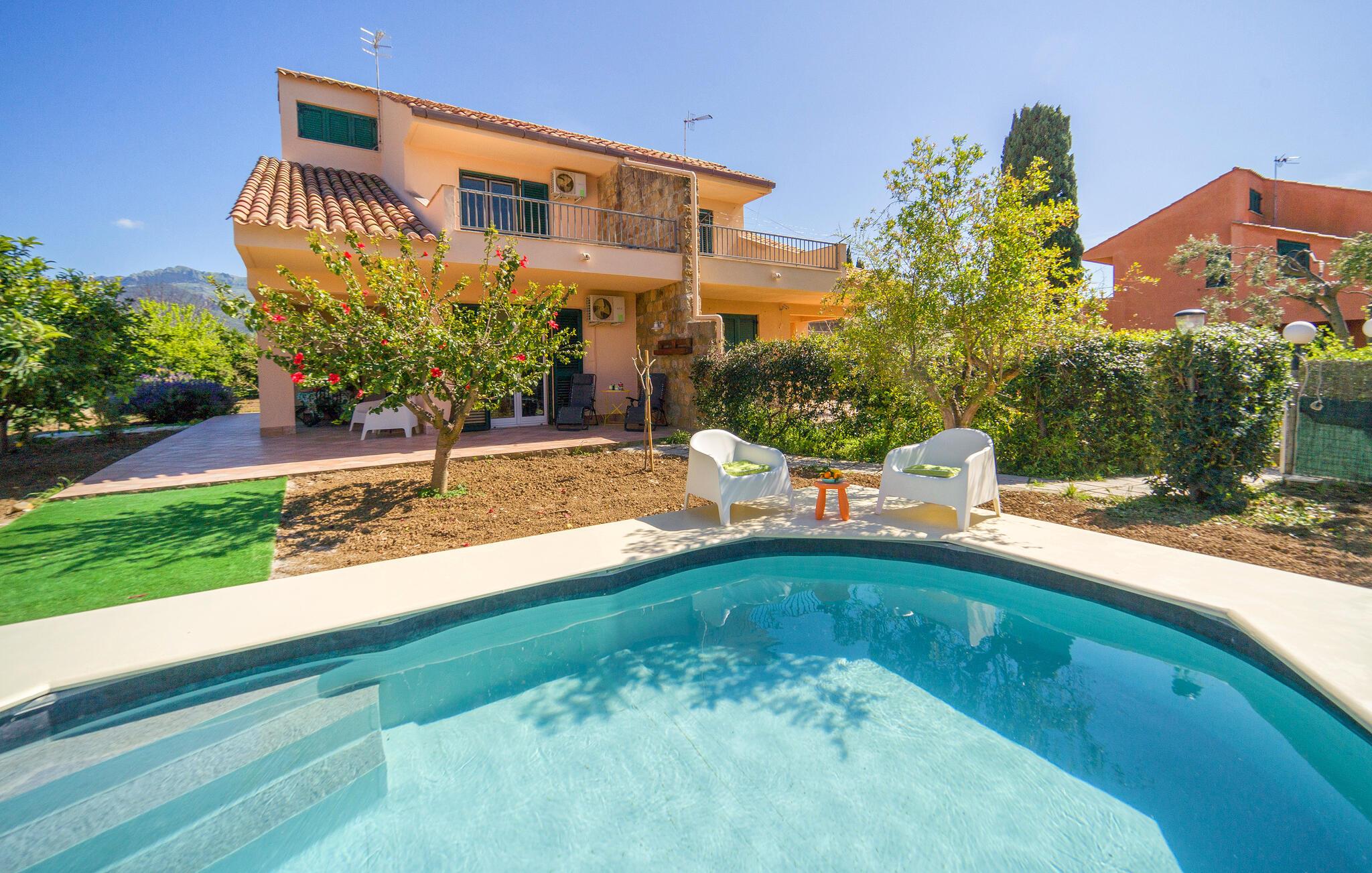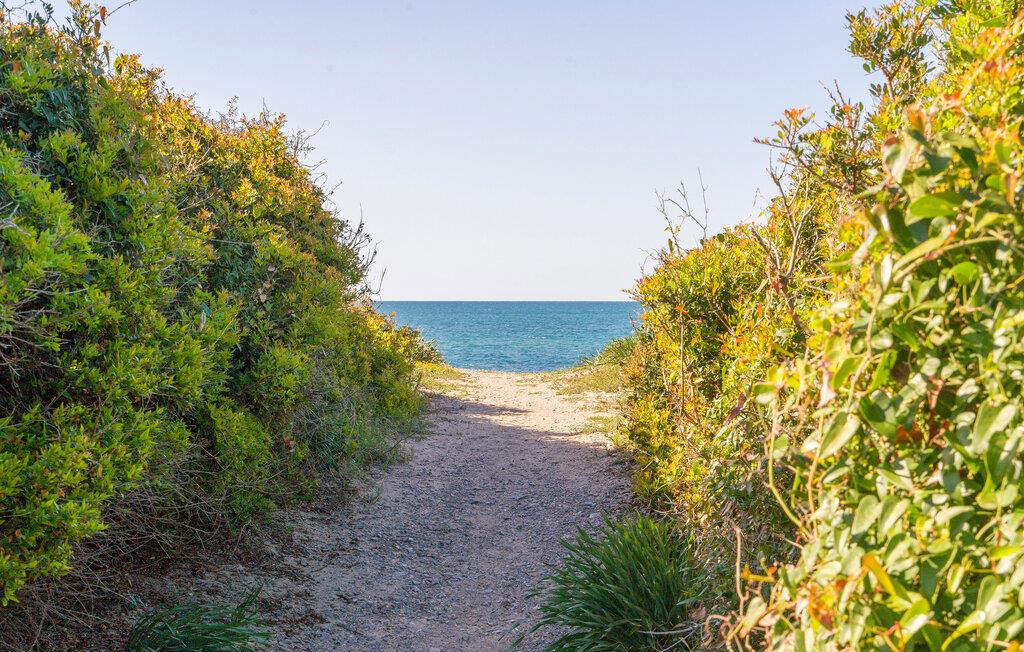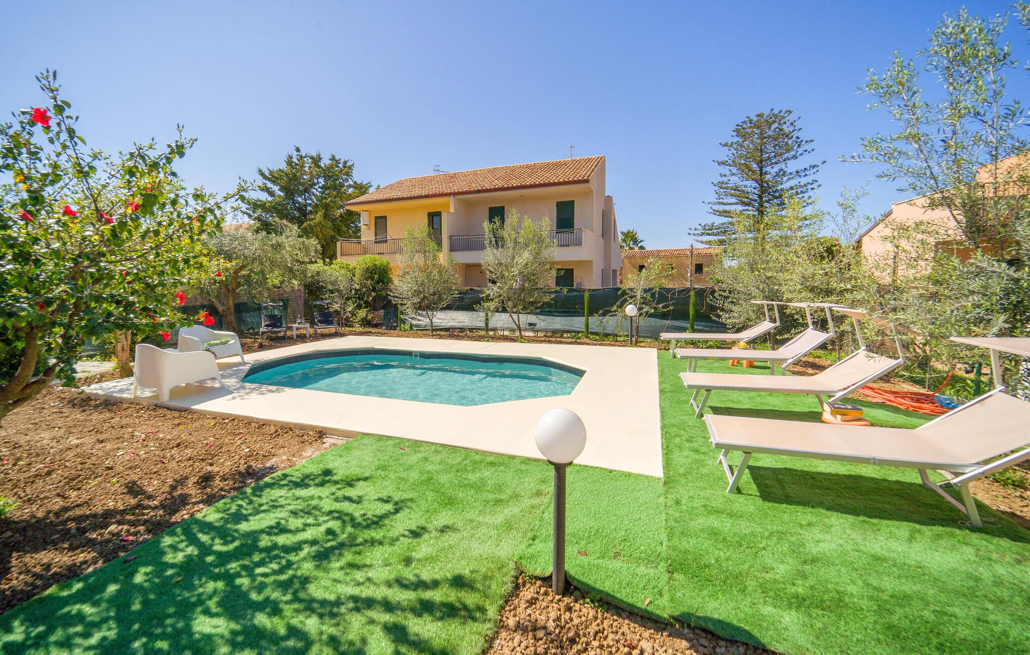 Spazieren Sie von diesem schönen Ferienhaus mit Pool zum Strand.