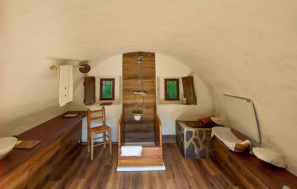 Ihr Ferienhaus ist von der traditionellen lokalen Architektur inspiriert und geht noch einen Schritt weiter, indem es lokale Materialien verwendet, um sich nahtlos in die natürliche Umgebung einzufügen. Wenn Sie ein Faible für historische Gemäuer haben, wird Sie dieses Haus mit den niedrigen Holzdecken und rustikalen Steinwänden vom ersten Augenblick an begeistern. Ursprünglich wurde das Häuschen zur Lagerung von Käse und Butter genutzt, daher befindet sich eine natürliche Quelle im Badezimmer. Das Wasser ist rein und hervorragend zum Trinken geeignet. Die meisten Möbel und Textilien sind antik und aus natürlichen Materialien gefertigt. Sogar der ursprüngliche Schlüssel und das Schloss sind erhalten geblieben.