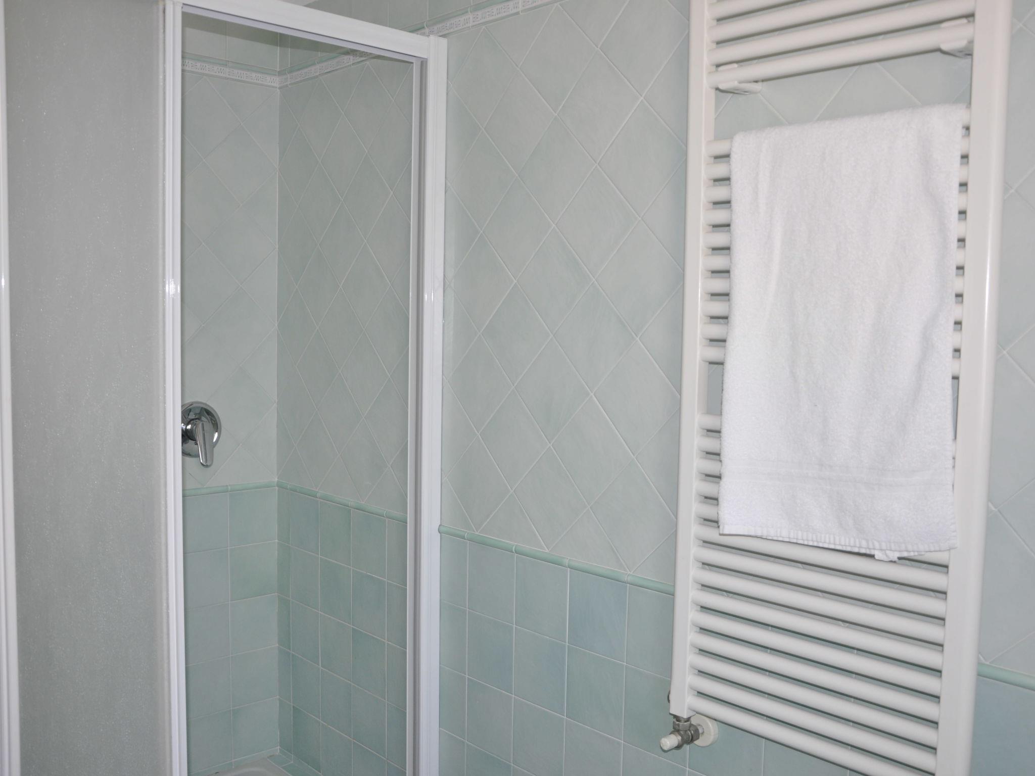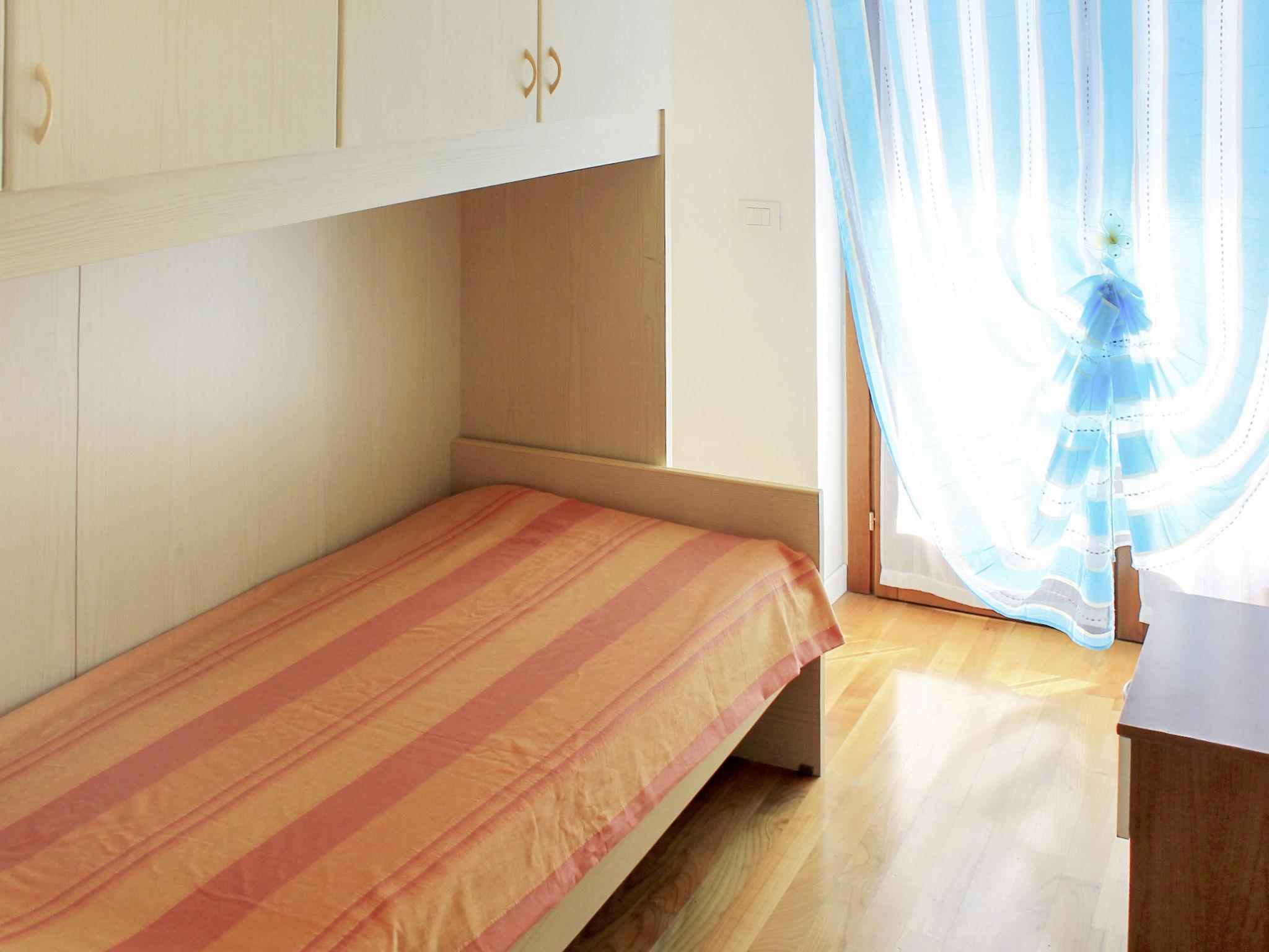 5-Zimmer-Reihenhaus 100 m2 auf 3 Stockwerken. Zweckmässig eingerichtet: Wohn-/Esszimmer mit Esstisch und Sat-TV. Ausgang zur Terrasse. Offene Küche (Backofen, Geschirrspüler, 4 Flammen, Mikrowelle). Dusche/WC. Unteres Geschoss: 1 Doppelzimmer mit Dusche/WC. Obergeschoss: Durchgangszimmer mit Klimaanlage. 1 Doppelzimmer. Ausgang zum Balkon. 1 Zimmer mit 1 x 2 Etagenbetten. Ausgang zum Balkon. 1 Zimmer mit 1 Bett. Ausgang zum Balkon. Bad/Bidet/WC. G-Heizung (extra), Klimaanlage (extra). Parkettboden. Balkon, Terrasse überdacht, Garten. Terrassenmöbel, Balkonmöbel, Liegestühle (3). Zur Verfügung: Waschmaschine, Safe, Babybett. Internet (Wireless LAN, gratis). Garage (1 Auto). Bitte beachten: Nichtraucher-Unterkunft. Maximal 1 Haustier/Hund erlaubt. IT023043B4IQQEB6V3