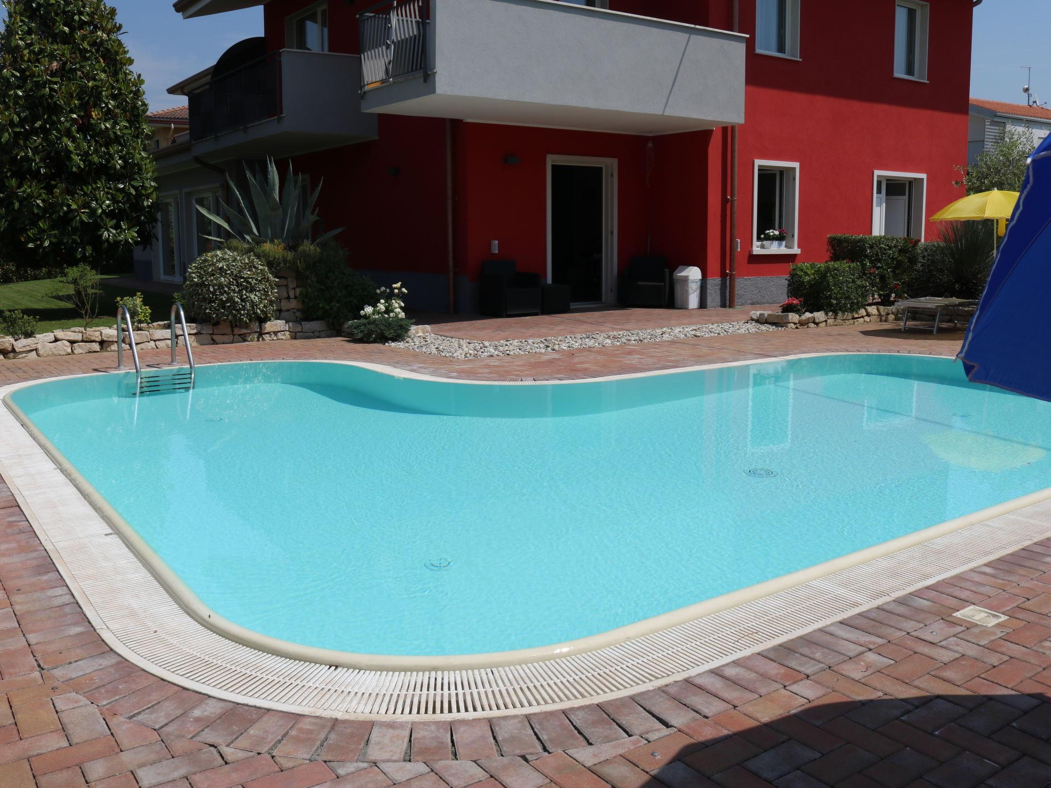Mehrfamilienhaus "Corte Chiara", auf 2 Stockwerken. 4 Wohnungen im Ferienhaus. Im Ortsteil Paiari, 1 km vom Zentrum von Lazise, in einem Wohnquartier, 1 km vom See, 1 km vom Strand. Zur Mitbenutzung: Schwimmbad (40 m2, 150 cm tief, saisonale Verfügbarkeit: 01.Jun. - 30.Sep.). Ungleichmässige Schwimmbadform, Aussendusche, Gartenmöbel. Einkaufsgeschäft 1 km, Bushaltestelle 150 m, Kieselstrand 1 km. Golfplatz (18 Loch) 20 km. Nahe gelegene Sehenswürdigkeiten: Peschiera del Garda 11 km, Verona 26 km.