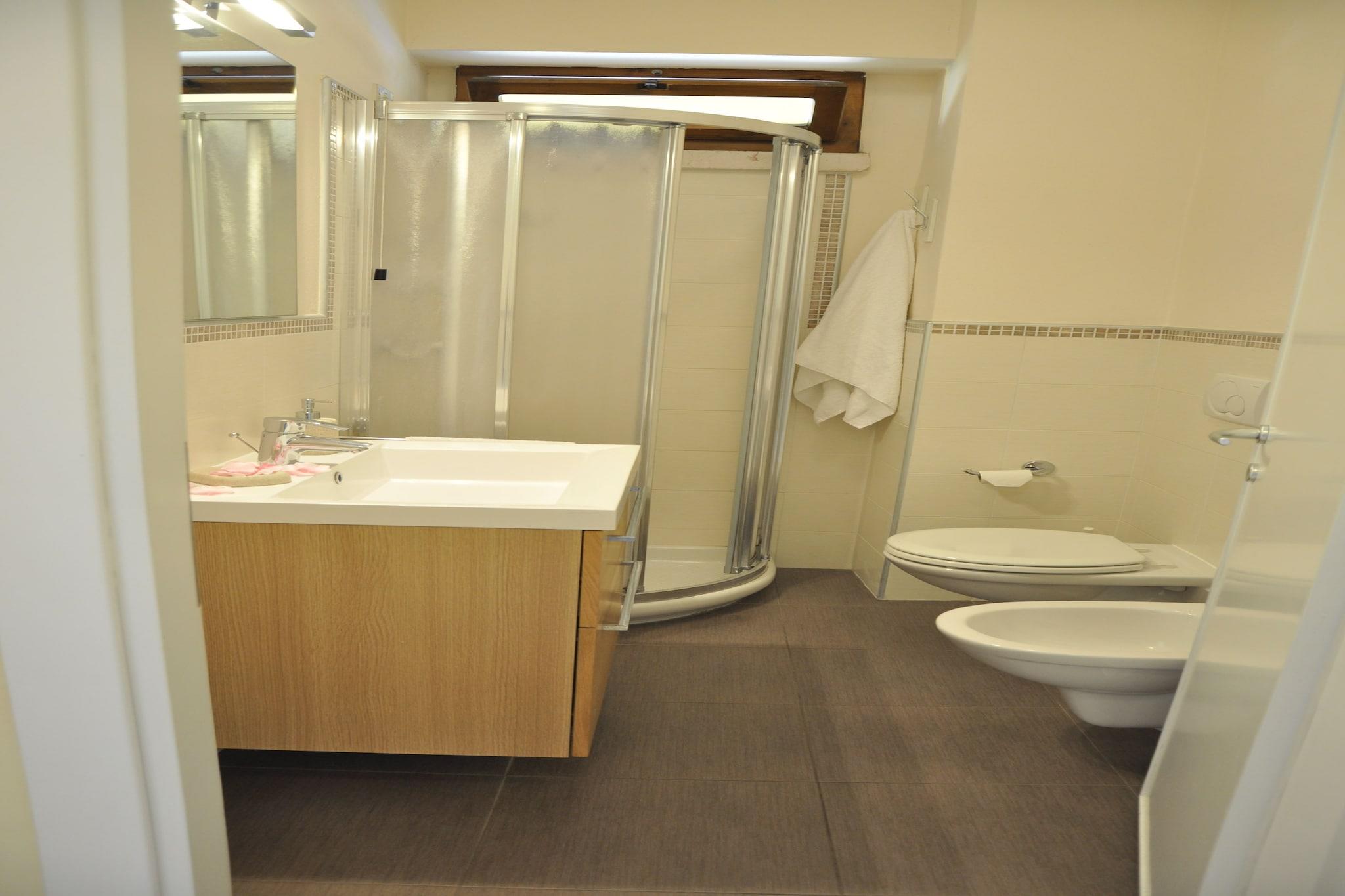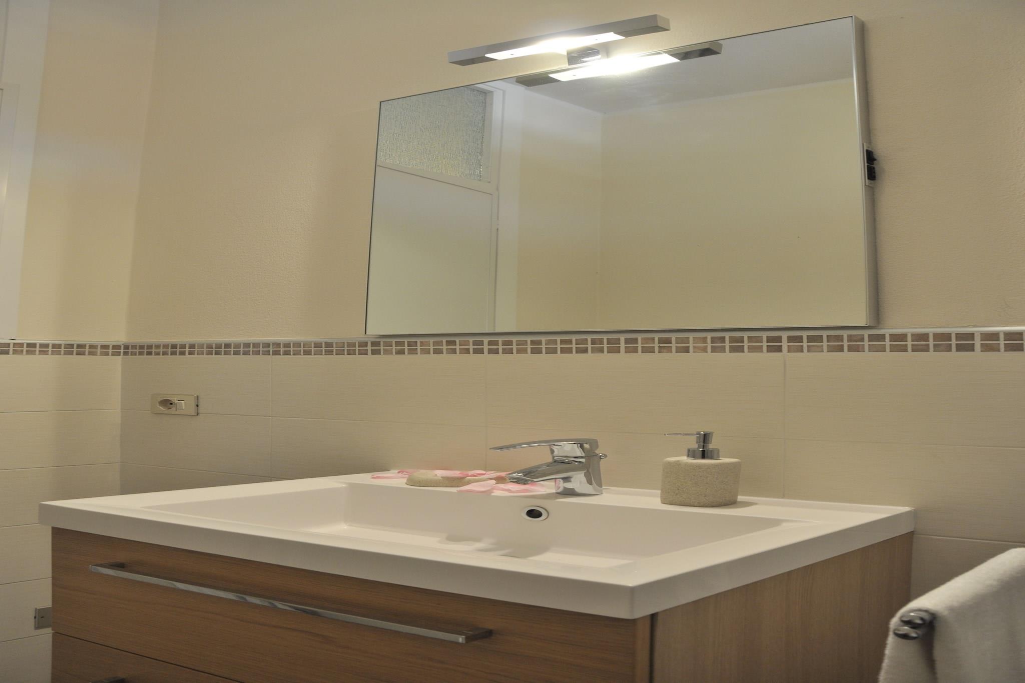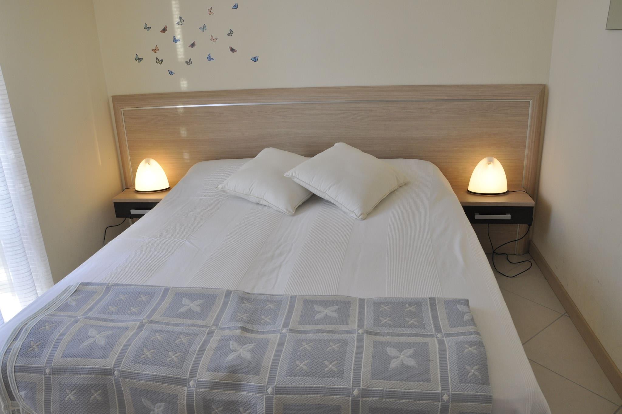 In der 1. Etage: (Wohnzimmer(Doppelschlafcouch, TV(Satellit)), offene Küche(Backofen), Schlafzimmer(Etagenbett), Schlafzimmer(2x Einzelbett), Badezimmer(Dusche, Waschbecken, Toilette, Bidet, Waschmaschine), Balkon, Heizung(Zentral), Klimaanlage) Terrasse(Gemeinschaftliche Nutzung mit anderen Gästen), Garten(Gemeinschaftliche Nutzung mit anderen Gästen), Gartenmöbel, Grill, Parkplatz, Pool(Gemeinschaftliche Nutzung mit anderen Gästen, 8 x 5 m., geöffnet von 1/2 Mai bis einschließlich 1/2 Sep)