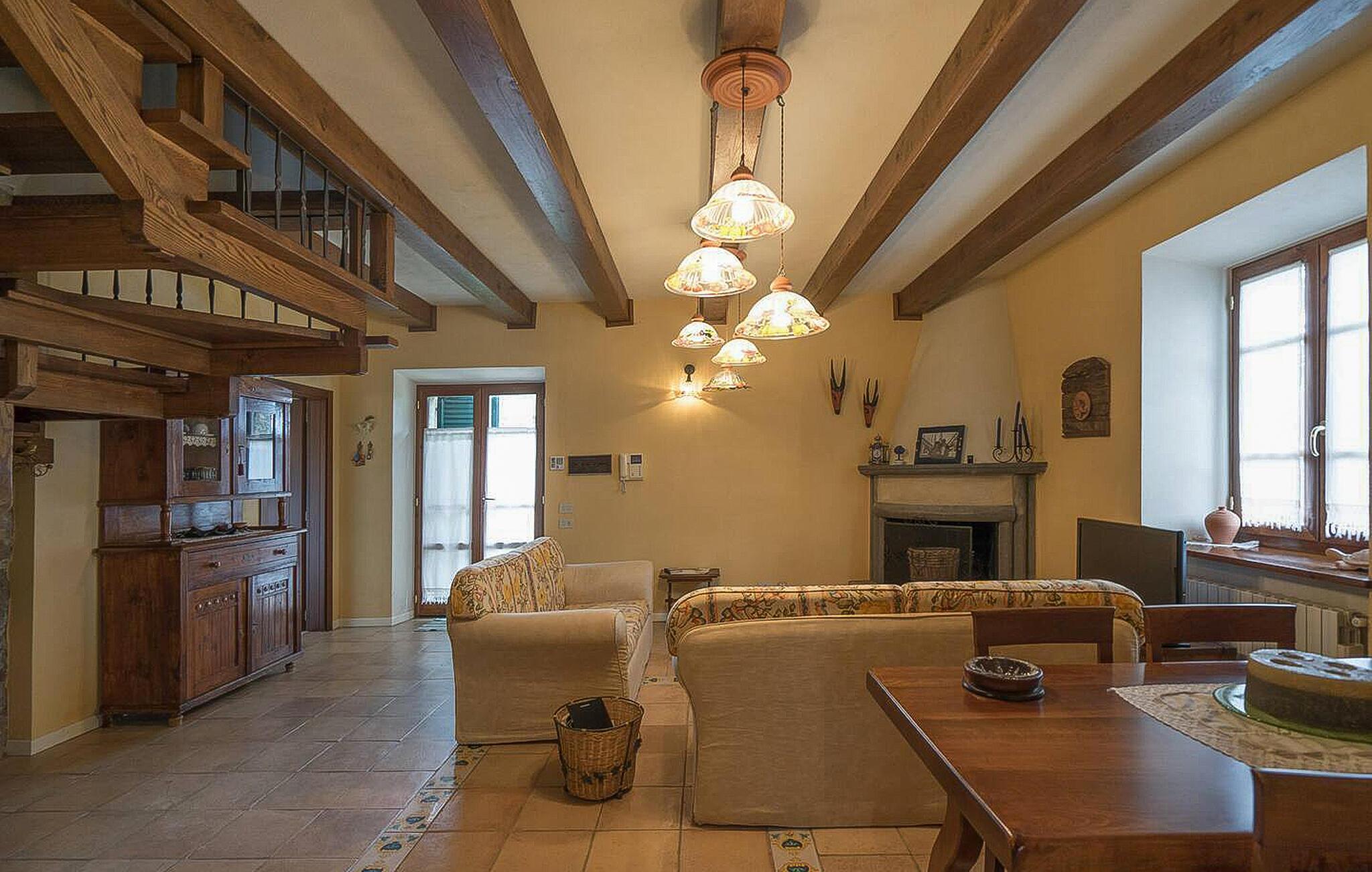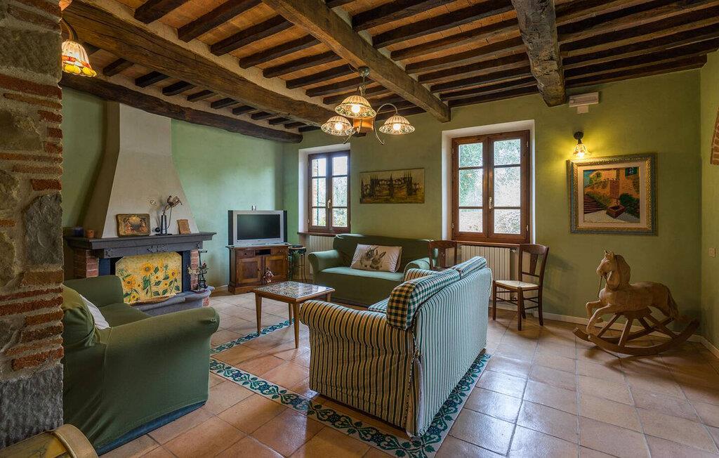Diese Haus besticht durch eine besonders charmante Einrichtung mit sichtbaren Holzbalken, Naturstein, warmen Grüntönen und liebevoll ausgewählten Details im traditionellen Stil. Die gemütliche Wohnatmosphäre lädt dazu ein, es sich auf den Sofas bequem zu machen und entspannte Stunden zu verbringen. Hören Sie Ihre Lieblingsmusik oder streamen Sie gemeinsam Serien und genießen Sie dabei das behagliche Ambiente.