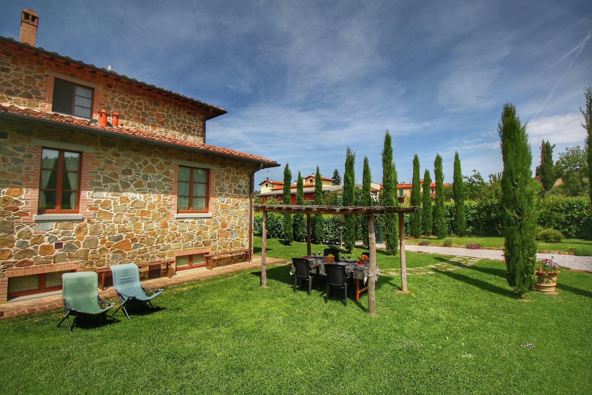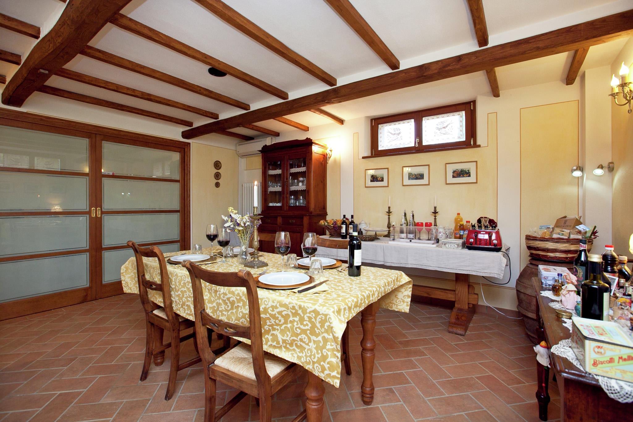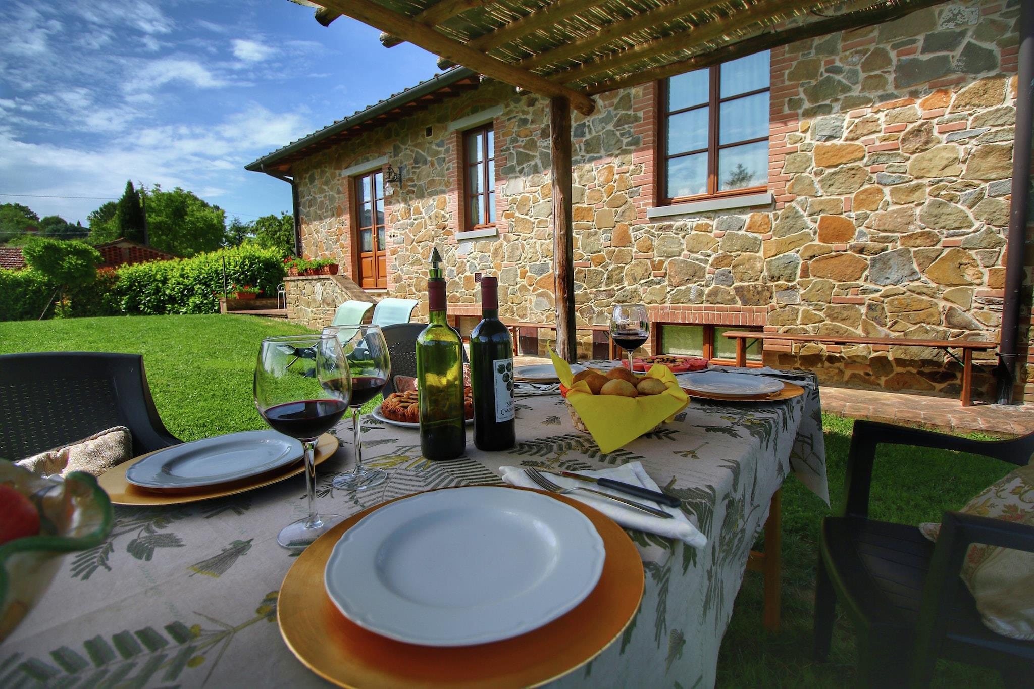 Dieses Landhausapartment in Lucignano bietet ein stilvolles Ambiente für einen entspannten Familienurlaub und ist der ideale Ausgangspunkt, um die Kunst und Natur der Toskana zu entdecken. Nur 1 km vom Stadtzentrum mit seinen eleganten Restaurants entfernt, eignet sich die Unterkunft hervorragend für Tagesausflüge nach Florenz, Siena und Perugia. Die Residenz wurde mit dem -Preis für exzellente Gastfreundschaft und konstant hohe Gästebewertungen ausgezeichnet und garantiert so einen erstklassigen Service für alle Gäste. Das Apartment ist von einem weitläufigen Garten mit Obstbäumen umgeben und verfügt über einen privaten, teilweise umzäunten Außenbereich mit einem Grillplatz, der täglich von den Gastgebern gereinigt wird. Gäste können die ruhige Atmosphäre im Pavillon genießen oder es sich im Wohnzimmer am stimmungsvollen Kamin gemütlich machen. Die Küche ist komplett ausgestattet mit modernen Annehmlichkeiten wie Backofen und Geschirrspüler. Für Familien mit Kindern stehen ein Kinderbett und ein Hochstuhl bereit. Ab dem 1. Juni haben Gäste aller vier Unterkünfte Zugang zum gemeinsamen Salzwasserpool, der an warmen Sommertagen eine willkommene Erfrischung bietet. Um den Aufenthalt noch angenehmer zu gestalten, bietet der Hausbesitzer personalisierte Kochkurse von drei bis vier Stunden an, in denen Gäste klassische italienische Rezepte wie handgemachte Pizza oder traditionelle Lasagne erlernen können. Diese intensiven Erlebnisse hinterlassen einen bleibenden Eindruck, und viele Gäste teilen noch lange nach ihrer Rückkehr Fotos ihrer gelungenen Kochkünste. Ob Sie nun eine Partie Tischfußball spielen oder die nahegelegene mittelalterliche Geschichte erkunden – dieses preisgekrönte Refugium bietet einen authentischen und unvergesslichen Einblick in die toskanische Lebensart.